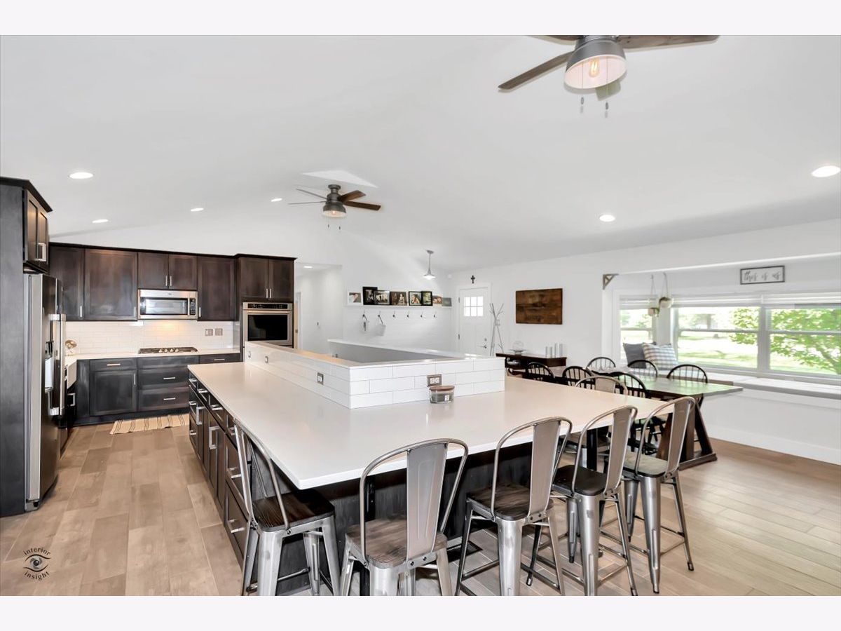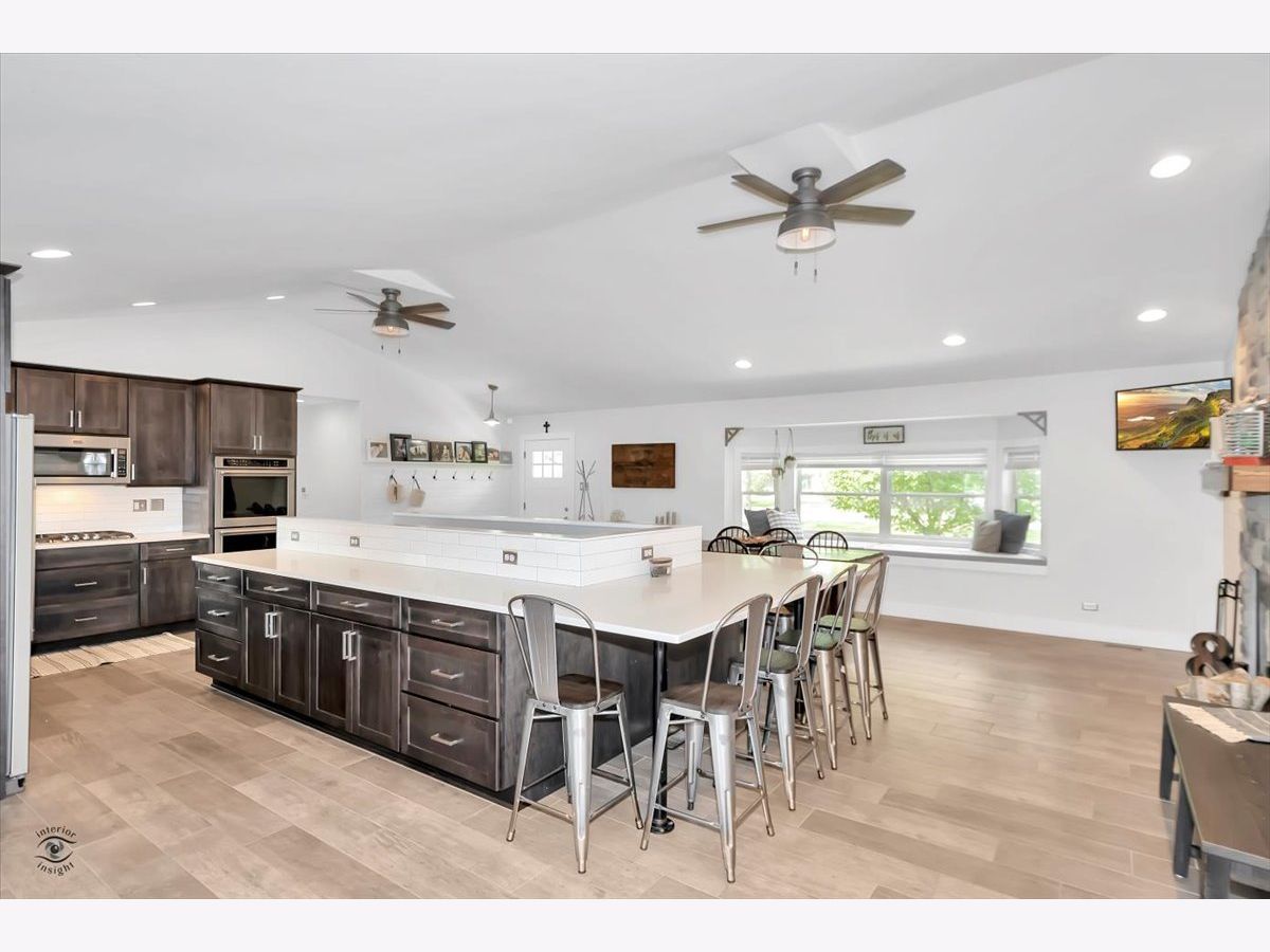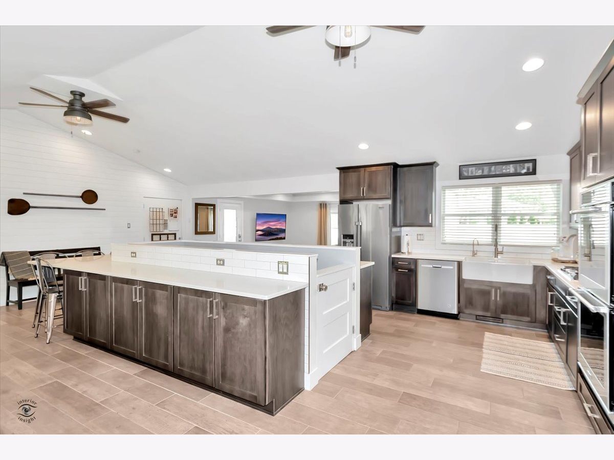 This incredibly stunning and completely remodeled home features open concept layout, vaulted and tray ceilings and the latest and best in rustic decor and farmhouse finishes. 3 bedroom, 3 bath. Living and dining rooms feature porcelain wood tile, shiplap walls, new wood-burning fireplace, window bench, new trim, new recessed lighting and industrial-styled ceiling fans. New custom kitchen features huge wraparound breakfast bar, quartz countertops, stainless steel appliances and subway tile backsplash. Master suite with double closet and new full bath featuring subway tile stand up shower and exposed shelving, 2nd new bath with herringbone tile shower and custom wood vanity. Full basement finished in 2020 nearly doubles the finished space of the home featuring recreation room, playroom and full 3rd ceramic bath, plus tons of storage space. New Marvin windows throughout, new floors, new interior 5-panel doors, new exterior doors, new furnace, new air conditioning unit, new water heater, all new plumbing, all new electric, new spray foam insulation, new front concrete, new Hardie board exterior siding, new trim throughout, new light fixtures & ceiling fans. The list goes on. Exterior space is unmatched - huge deck off kitchen leads to incredible, appx 189 x 108 lot with back yard fully fenced with new Cedar Rustic vinyl fencing. 2-car attached garage, huge front driveway and fantastic curb appeal and landscaping. This is a rare opportunity to own a turnkey home styled to perfection and completely remodeled from top to bottom.