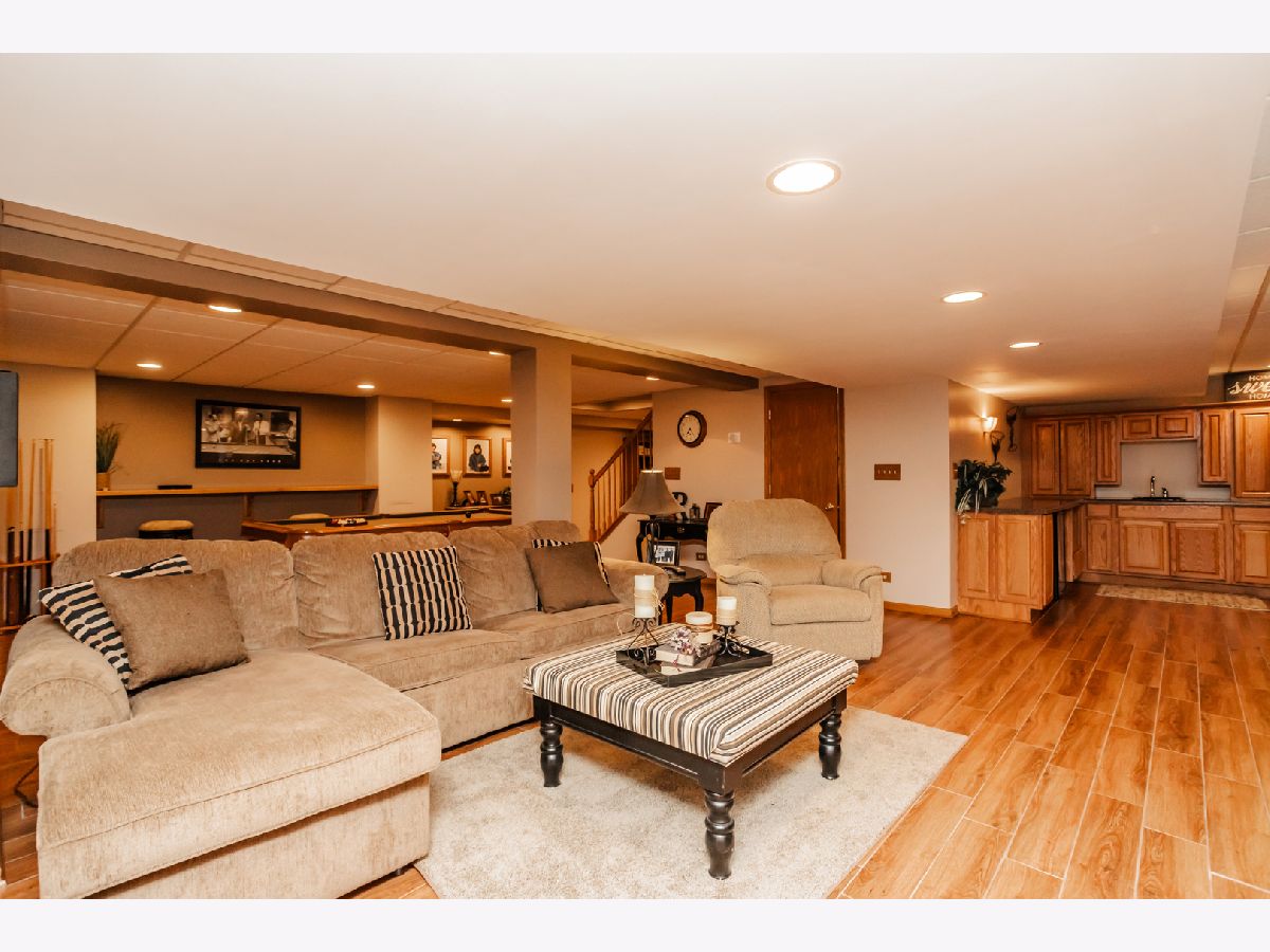 Experience living in the sought-after Woodbine East subdivision of Homer Glen! This spacious home with brand new siding and a roof that's less than 5 years old has been immaculately maintained and provides plenty of room for hosting and entertaining. Brand new windows throughout flood this home with natural light. Beautifully maintained hardwood flooring, an open concept kitchen equipped with updated appliances opens up to the cozy family room with gas fireplace. A formal dining and living room along with a powder room, renovated laundry room, and versatile fifth bedroom are all conveniently located on the main level. Upstairs, the spacious primary bedroom features a unique tray ceiling, a walk-in closet, and a remodeled en-suite bathroom. Three additional bedrooms with generous closet space and a large, light-filled landing complete the upper level. Downstairs in the finished basement is a large lounge and game area, a full bathroom and bedroom and a full bar area with a fridge and pool table that will stay with the home. Ample storage throughout including in the furnace room and underneath the stairs. Walk out to your own outdoor oasis featuring an above-ground pool, a propane fire pit and a swing set in the backyard. Generous 2-car garage with brand new epoxy flooring and new garage door. Find additional storage in the attic as well as a drink fridge. Walking distance to parks, bike trails, and close to all Homer Glen has to offer. Take advantage of the opportunity to own this spacious home with key upgrades in a prime location!