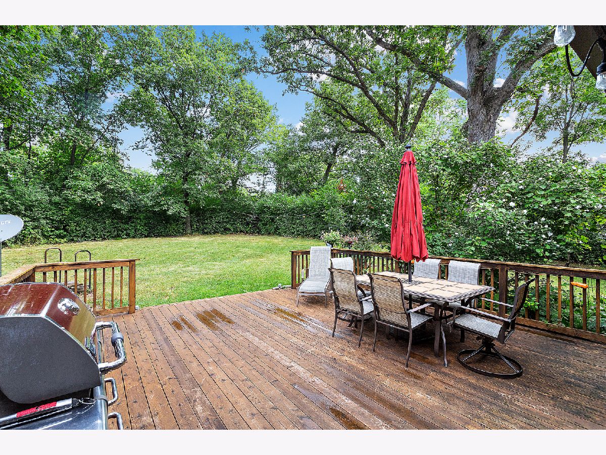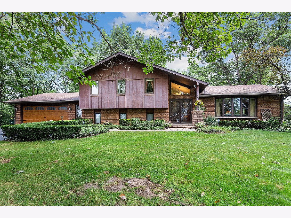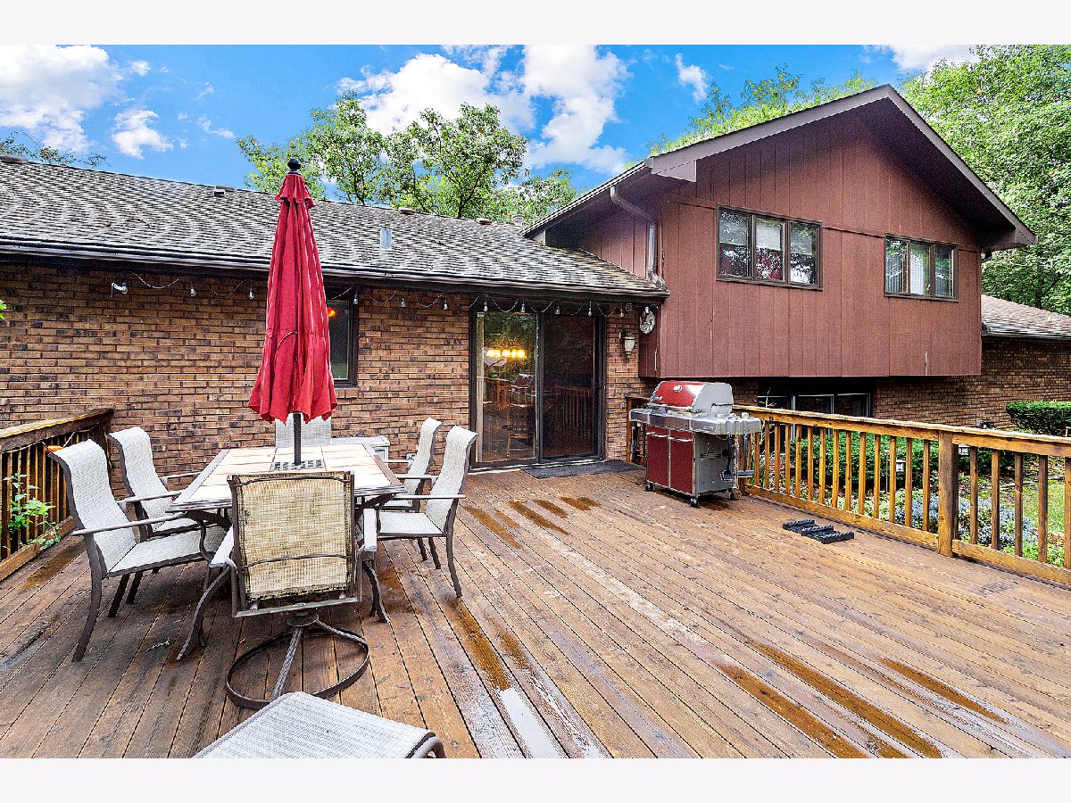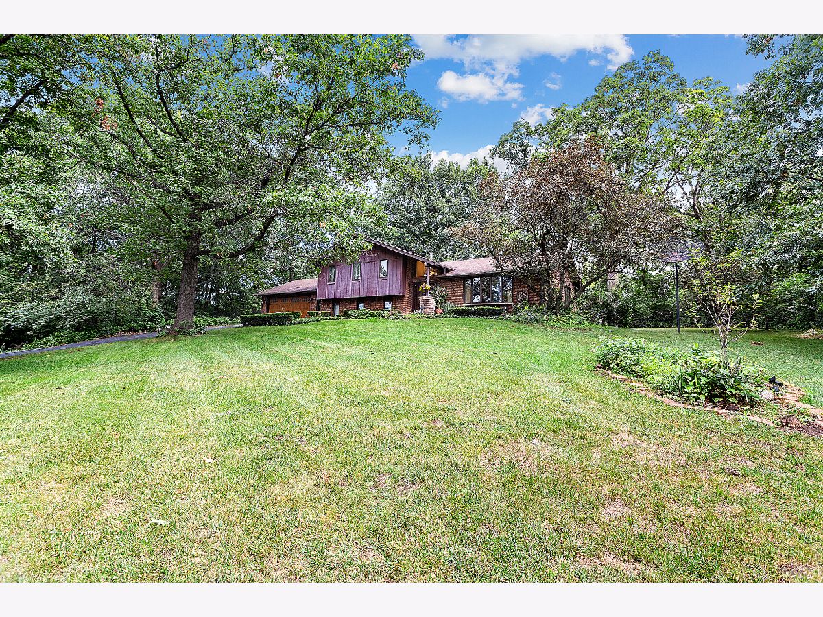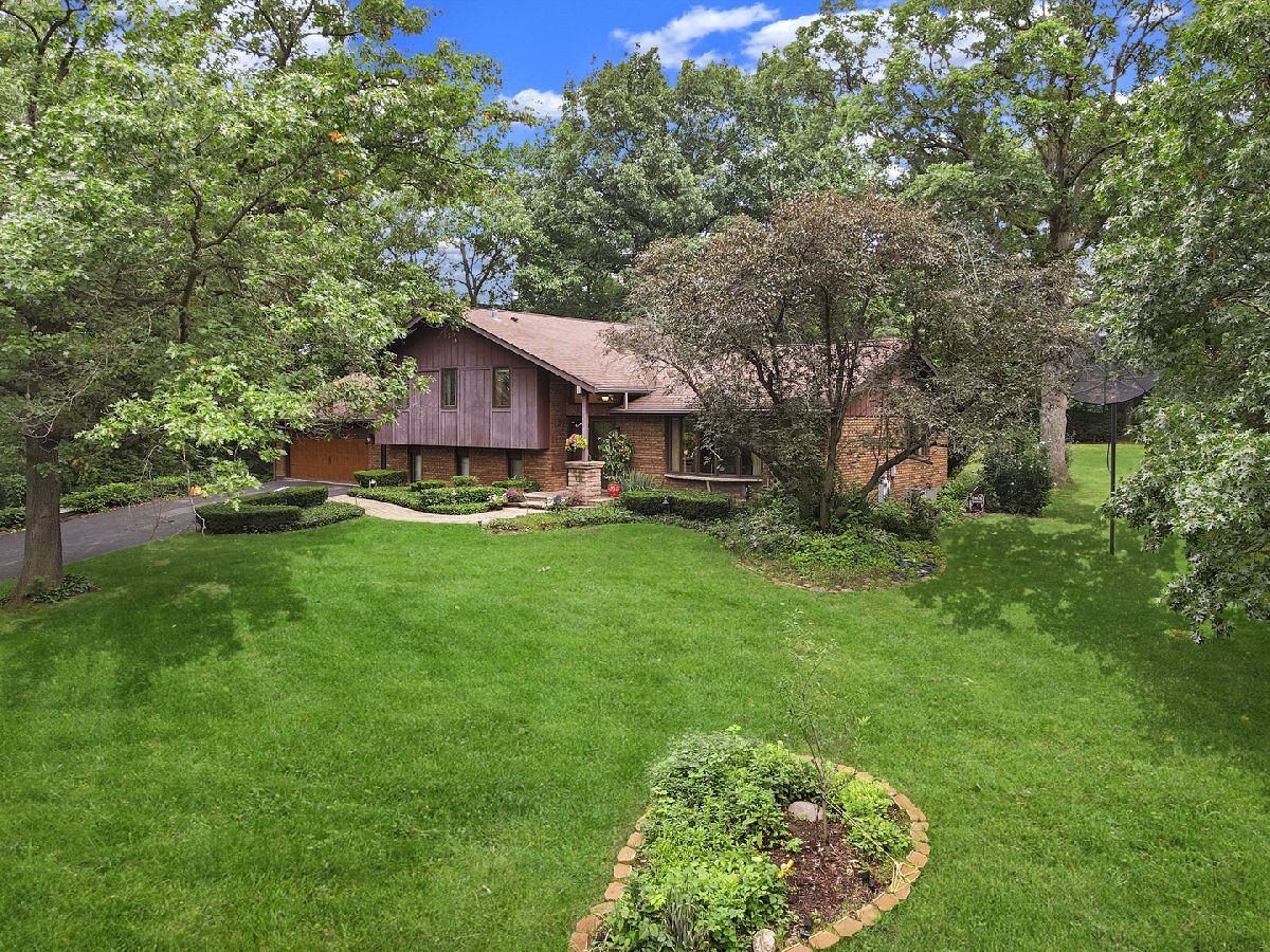 Beautiful residence nestled on a picturesque, approximately 1 acre lot with mature trees for privacy. Inviting foyer with vaulted ceilings and a sizable closet for added storage. Formal living room features gleaming hardwood flooring and a large bay window for tons of natural sunlight. Formal dining room perfect for additional seating or entertaining. Lovely kitchen with ample cabinetry, plenty of counter space, a pantry closet and a quaint eat in area with access to the massive expansive deck. Incredibly spacious family room with a beautiful floor to ceiling stone fireplace and plush wall to wall carpeting. Lower level features a 4th bedroom or can be used as an office with access to the garage and adjacent bathroom. Charming master bedroom with stunning hardwoods, elegant bedside pendant lighting and a great closet space. Two additional bedrooms on the second level with a private, shared, bathroom. Finished lower level offers a gaming area, recreation storage, laundry area and more. Picturesque, scenic grounds with an extended deck is the ultimate space for relaxation. Conveniently located near shopping, dining, Metra, expressway access and schools. Updates include; NEW garage door, leaf guard gutters, fridge, stove, water heater, well pump, humidifier, sump pump, back up sump pump and water softener. For any discerning buyer looking for privacy and acreage. Call for your private showing today.