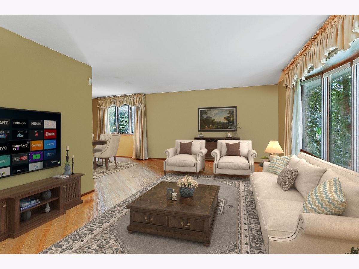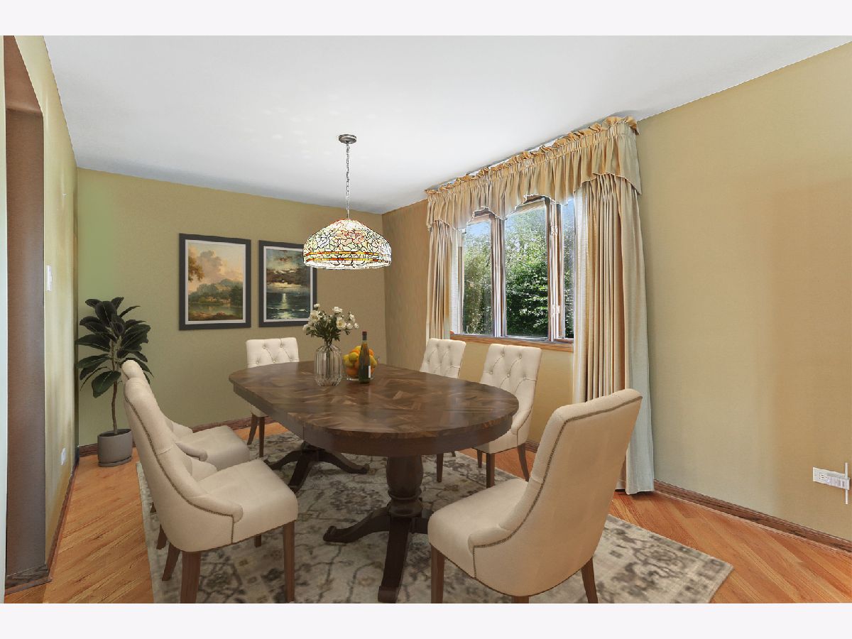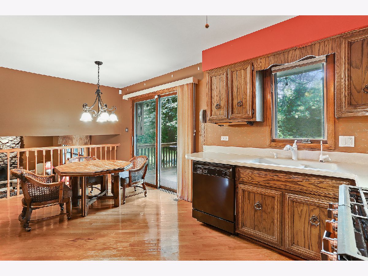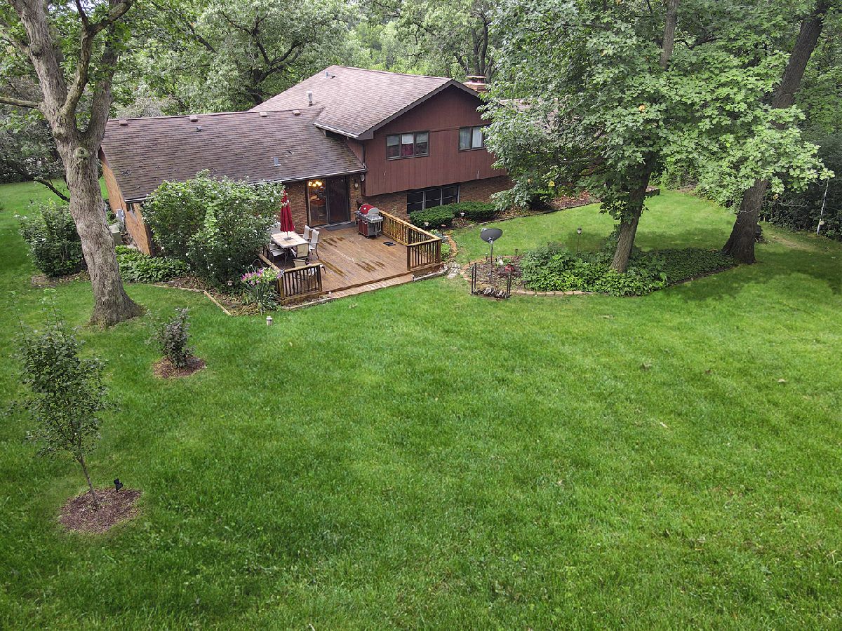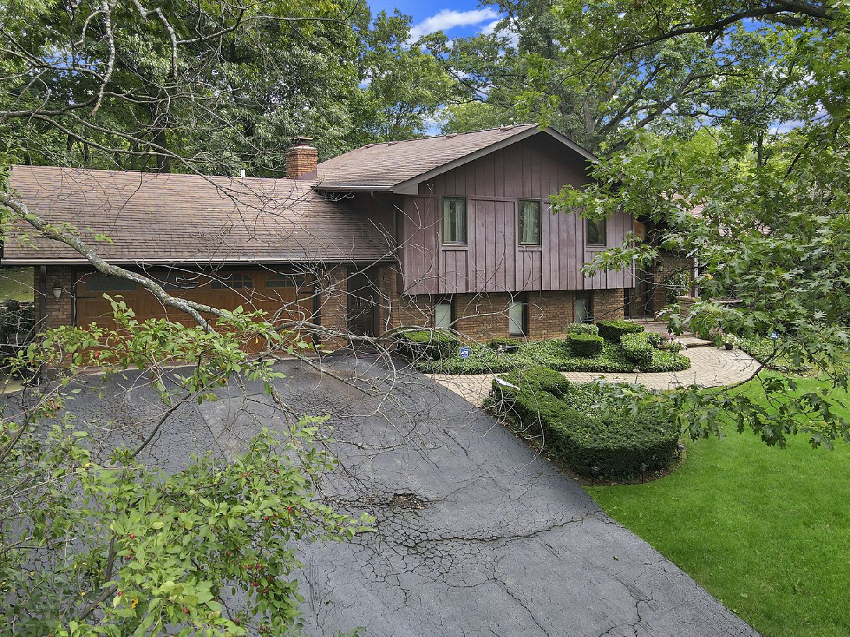 Beautiful residence nestled on a picturesque, approximately 1 acre lot with mature trees for privacy. Inviting foyer with vaulted ceilings and a sizable closet for added storage. Formal living room features gleaming hardwood flooring and a large bay window for tons of natural sunlight. Formal dining room perfect for additional seating or entertaining. Lovely kitchen with ample cabinetry, plenty of counter space, a pantry closet and a quaint eat in area with access to the massive expansive deck. Incredibly spacious family room with a beautiful floor to ceiling stone fireplace and plush wall to wall carpeting. Lower level features a 4th bedroom or can be used as an office with access to the garage and adjacent bathroom. Charming master bedroom with stunning hardwoods, elegant bedside pendant lighting and a great closet space. Two additional bedrooms on the second level with a private, shared, bathroom. Finished lower level offers a gaming area, recreation storage, laundry area and more. Picturesque, scenic grounds with an extended deck is the ultimate space for relaxation. Conveniently located near shopping, dining, Metra, expressway access and schools. Updates include; NEW garage door, leaf guard gutters, fridge, stove, water heater, well pump, humidifier, sump pump, back up sump pump and water softener. For any discerning buyer looking for privacy and acreage. Call for your private showing today.