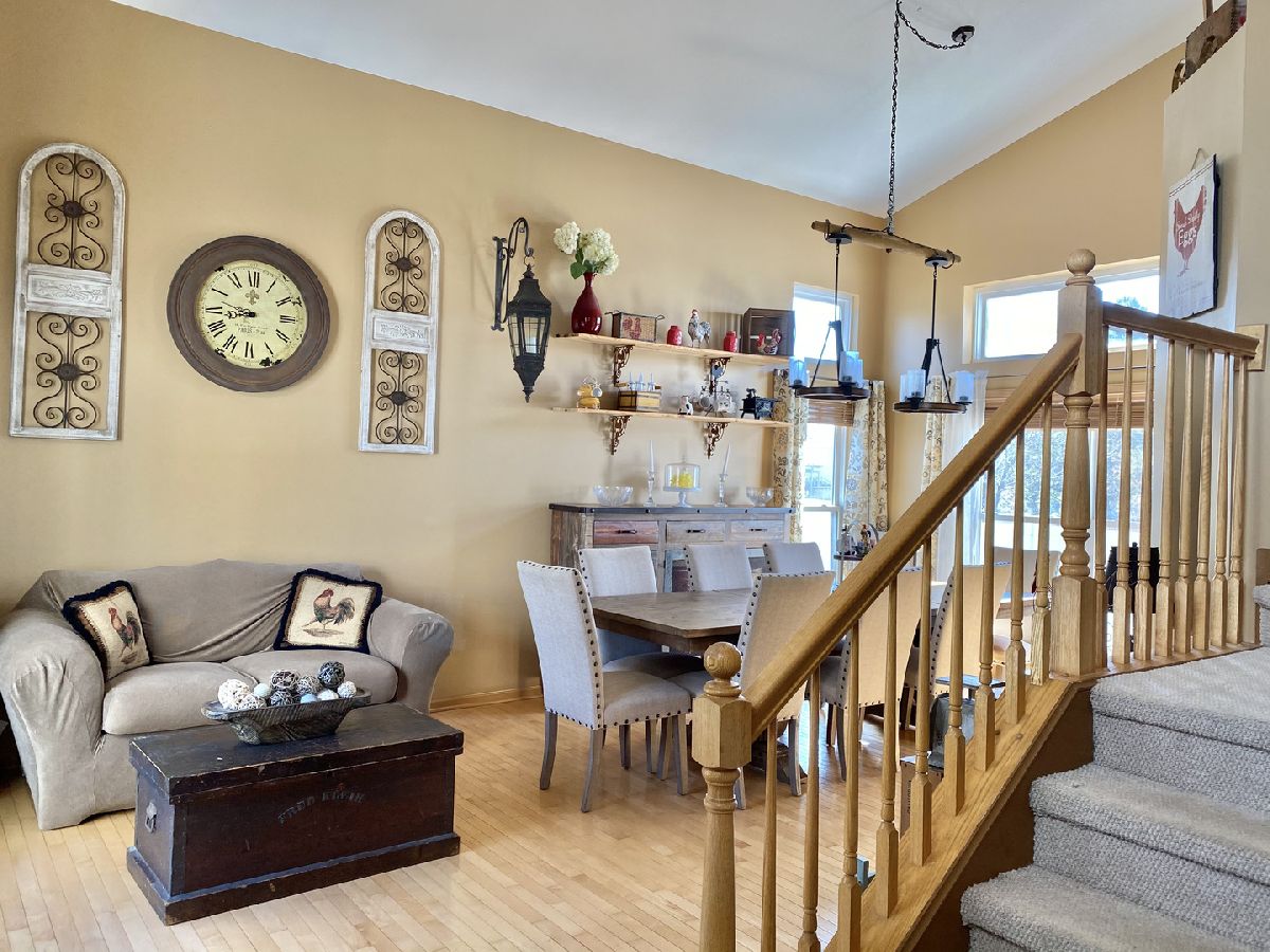 AMAZING 4 BEDRM 2-STORY-GLEAMING HARDWOOD FLRS THROUGHOUT THE MAIN LEVEL-FORMAL LIVING & DINING ROOM-IMPRESSIVE FOYER TO GREET YOUR GUESTS WITH CATHEDRAL CEILINGS-MODERN EAT-IN KITCHEN-OAK CABINETS-CENTER ISLAND-GRANITE COUNTERS, SNACK BAR-HUGE PANTRY CLOSET W BARN DOORS-SPACIOUS FAMILY RM W HEATILATOR STACKED ROCK FIREPLACE-HUGE MASTER BEDRM W CATHEDRAL CEILING W/PRIVATE GLAMOUR BATH W 2 WALK IN CLOSETS -MAIN LEVEL LAUNDRY-FULL BASEMENT WAITING FOR YOUR FINISHING TOUCHES-3 CAR GAR-BEAUTIFUL YARD IS 3/4 FENCED SUPER LARGE CONCRETE PATIO WITH BUILD IN FIRE-PIT WITH PLENTY OF ROOM FOR ACTIVITIES. MOST ROOMS HAVE TRANSOM WINDOWS TO BRING IN THE EXTRA LIGHT. FULL MAIN BATH HAS PRIVATE TOILET AREA.