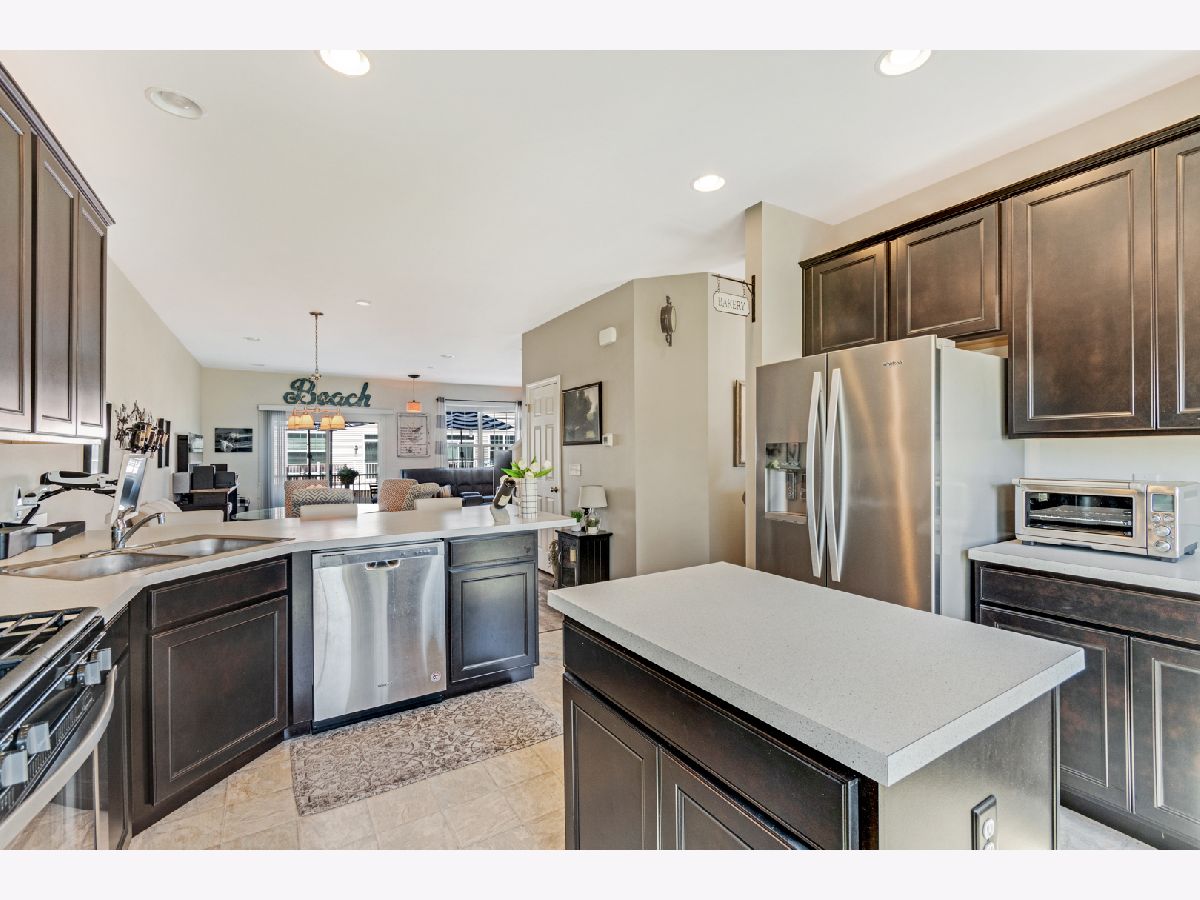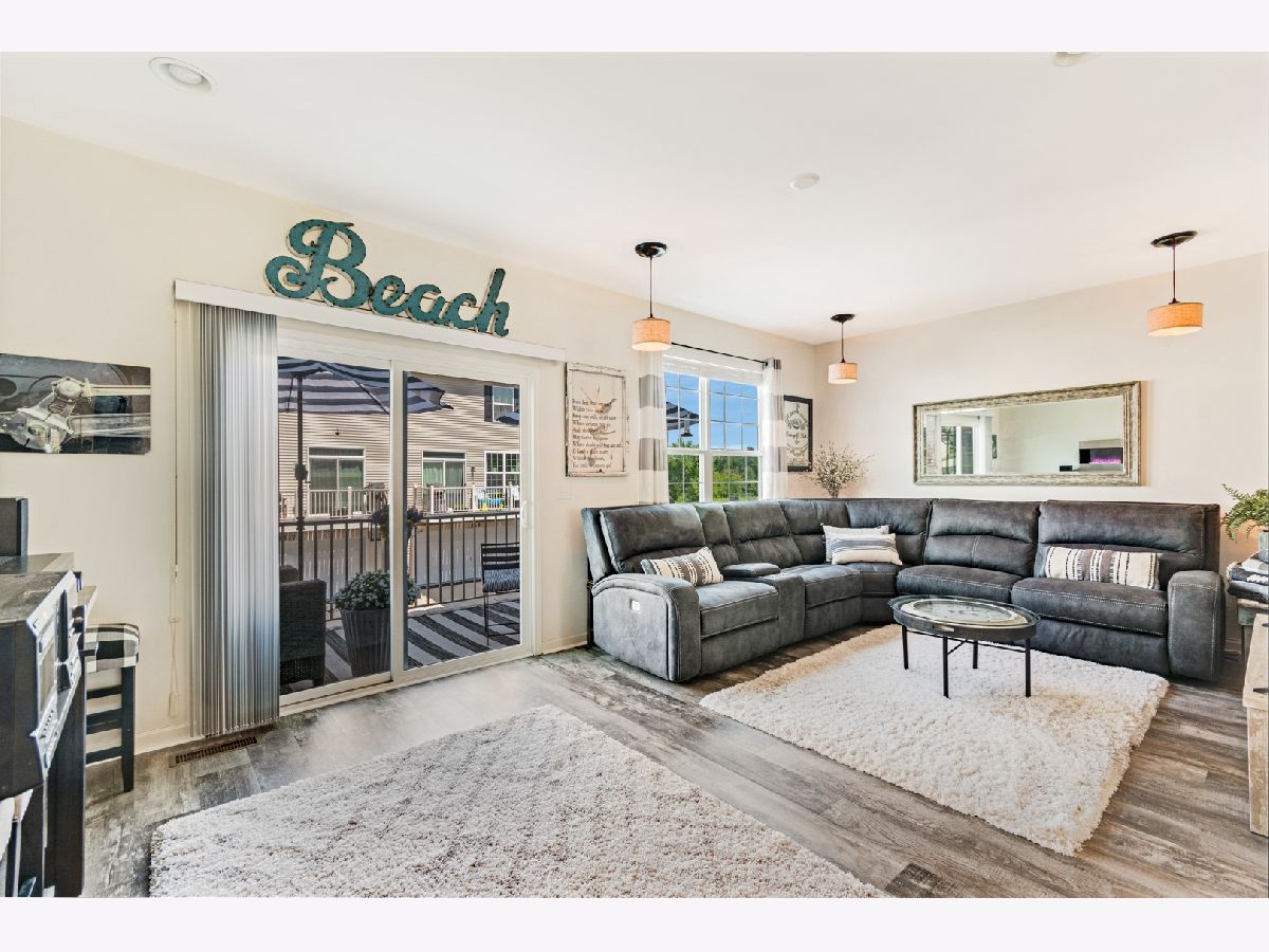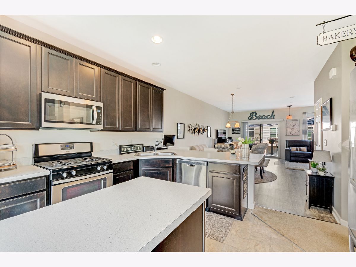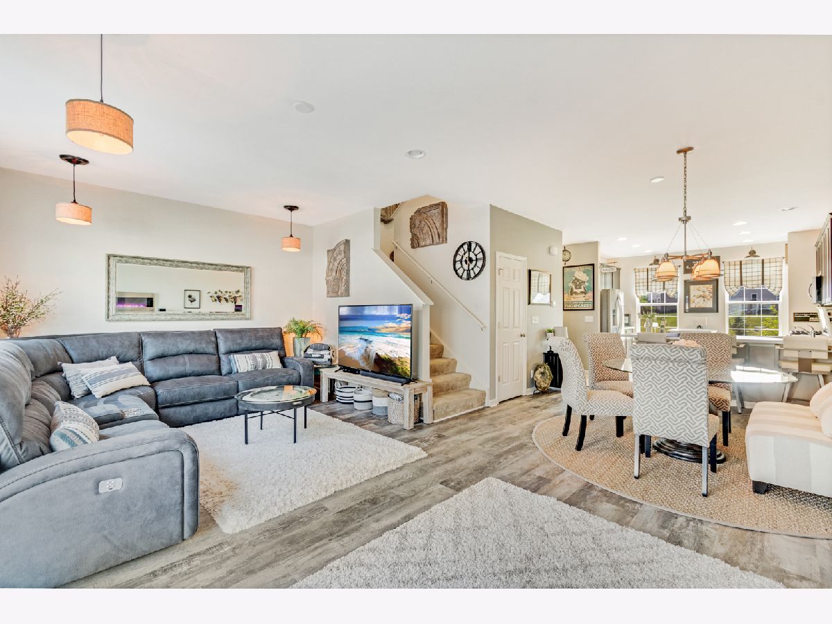 Look no further! JUST LIKE NEW -- 3 bedroom, 2.5 bathroom + bonus room townhouse is ready for you to move right in. Light, bright, and spacious, the first floor boasts soaring 9 foot ceilings, recessed lighting, and plank flooring in shades of grey and earth tones. Here you will find yourself cooking on the island in your cozy kitchen, surrounded by 42 inch cabinets and stainless appliances. Imagine sitting down with coffee at your breakfast bar, which looks out into the open-concept dining and family room. Spend your evenings sipping drinks under the stars on your extended deck, which has room for both seating and dining! Upstairs, you will find 3 roomy bedrooms & 2 full baths. Master upgrades include dual sinks, and sizable closet. Finished lower level is perfect for an additional family room, gym, craft room, or man cave. Lower level also has laundry room with laundry tub. Park your vehicles and still have room for storage in the 2 car garage. Easy access to the Prarie Path, and stunning views round out this perfect gem of a home. Schedule your showing today!