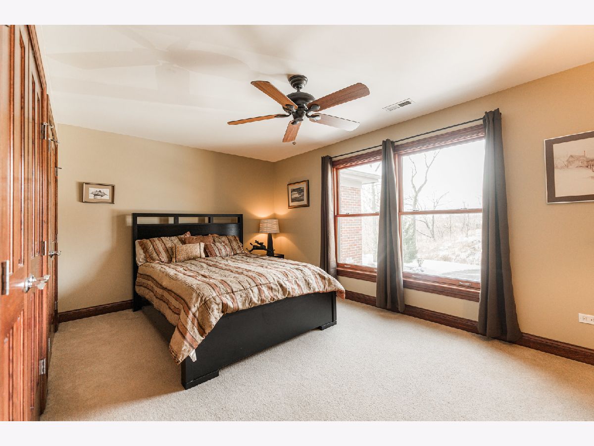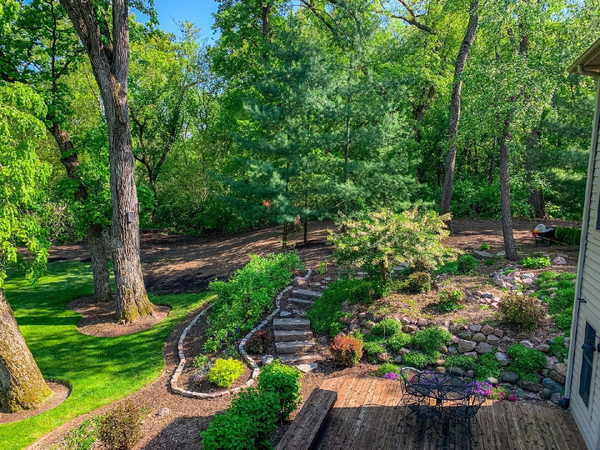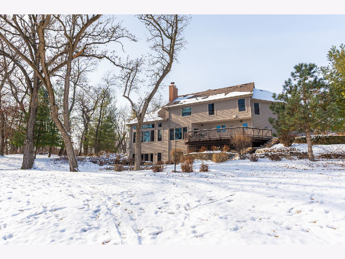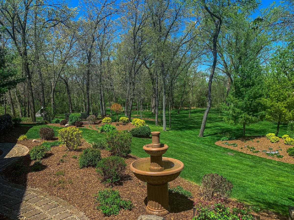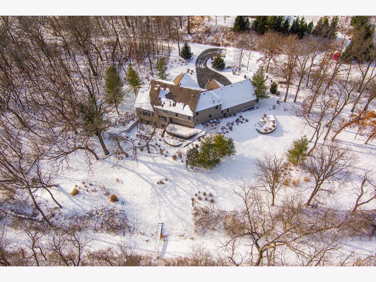 A truly exquisite masterpiece, this meticulously maintained, one-owner custom home is a flawless example of perfection. It exudes a multi-generational vibe, offering limitless possibilities for any lifestyle or need. This 3-story home with a walkout basement is tucked away on a private lane, set on 2.5 acres of wooded property with a serene creek and abundant natural beauty. With almost 6800 square feet of luxurious living space, this home features a spacious, heated 4+ car, extra-deep and wide garage (45' x 25'), a brick paver walkway, flagstone steps, 3 cedar decks, and a cozy fire pit-perfect for grabbing your glass and watching the exceptional sunrises and sunsets. The gourmet kitchen is a chef's ultimate dream, featuring top-of-the-line GE Monogram stainless steel appliances, including three ovens, a 48" stove, and a wine bar with beverage drawers built in. It also features a spacious pantry, a large island with a breakfast bar, and a breathtaking stone see-through fireplace that seamlessly connects to the vaulted family room. All of this is framed by stunning, picturesque views that enhance the entire space. The main level also showcases an elegant formal dining room, a bright and airy office with built-in shelves, and an abundance of natural light. A convenient mudroom off the garage is equipped with custom built-ins, perfect for storing coats and backpacks. The laundry room offers direct deck access, and a full bathroom completes the space. The master suite is an extraordinary retreat, showcasing dramatic vaulted ceilings, an expansive 21' walk-in closet with natural light, and a lavish spa-inspired bath with a Kohler corner tub and a separate, rejuvenating shower. Bedrooms 1-4 are all located on the second floor, with Bedrooms 1 and 2 seamlessly adjacent to Bedrooms 3 and 4, which share a beautifully designed Jack-and-Jill bath. The fourth bedroom is exceptionally spacious, offering a second master suite-like experience, complete with a generously sized walk-in closet and easy attic access. Climb the next staircase to the expansive third floor, where you'll find a fifth bedroom with a large walk-in closet and additional attic storage, offering endless possibilities for customization and use. The walk-out basement is a true entertainment hub, offering a game room, recreation area, exercise room, built in sound speakers, a two-sided stone fireplace with gas logs, a full bath, workshop with plenty of storage space, and a huge home bar built to impress and entertain on a grand scale. This home is filled with exceptional details, including dual staircases, extensive lighting and dimmer switches to set the perfect ambiance, under-cabinet lighting, and elegant tray ceilings. Every closet is thoughtfully organized, and five luxurious full bathrooms are equipped with heat lamps for added comfort. Two HVAC systems with humidifiers ensure year-round climate control, while two attic fans provide enhanced ventilation. Enjoy peace of mind with two 75-gallon water heaters, a brand-new water softener, and a 386' deep well. The home also features an advanced RO water system, 400-amp electrical service with conduit, and energy-efficient Pella Architect Series windows, adding both functionality and style throughout. Located just 5 minutes from I-90, US-20, IL-72, the train station, restaurants, hospital, and an 840-acre forest preserve, this home offers unparalleled convenience, yet tucked away in a tranquil, one-of-a-kind setting, this masterfully constructed home is the perfect place for you. Step inside and experience the ultimate in luxury and comfort. Welcome to your dream home!
