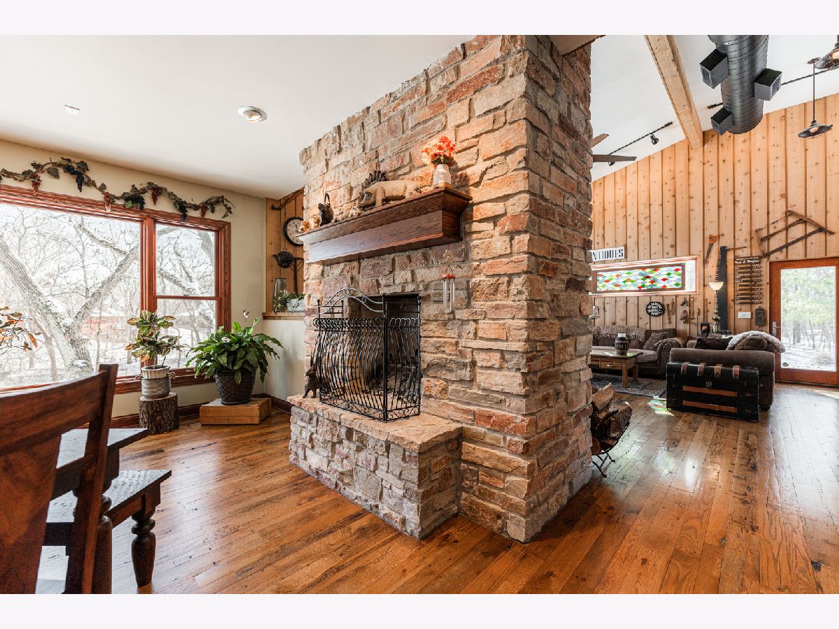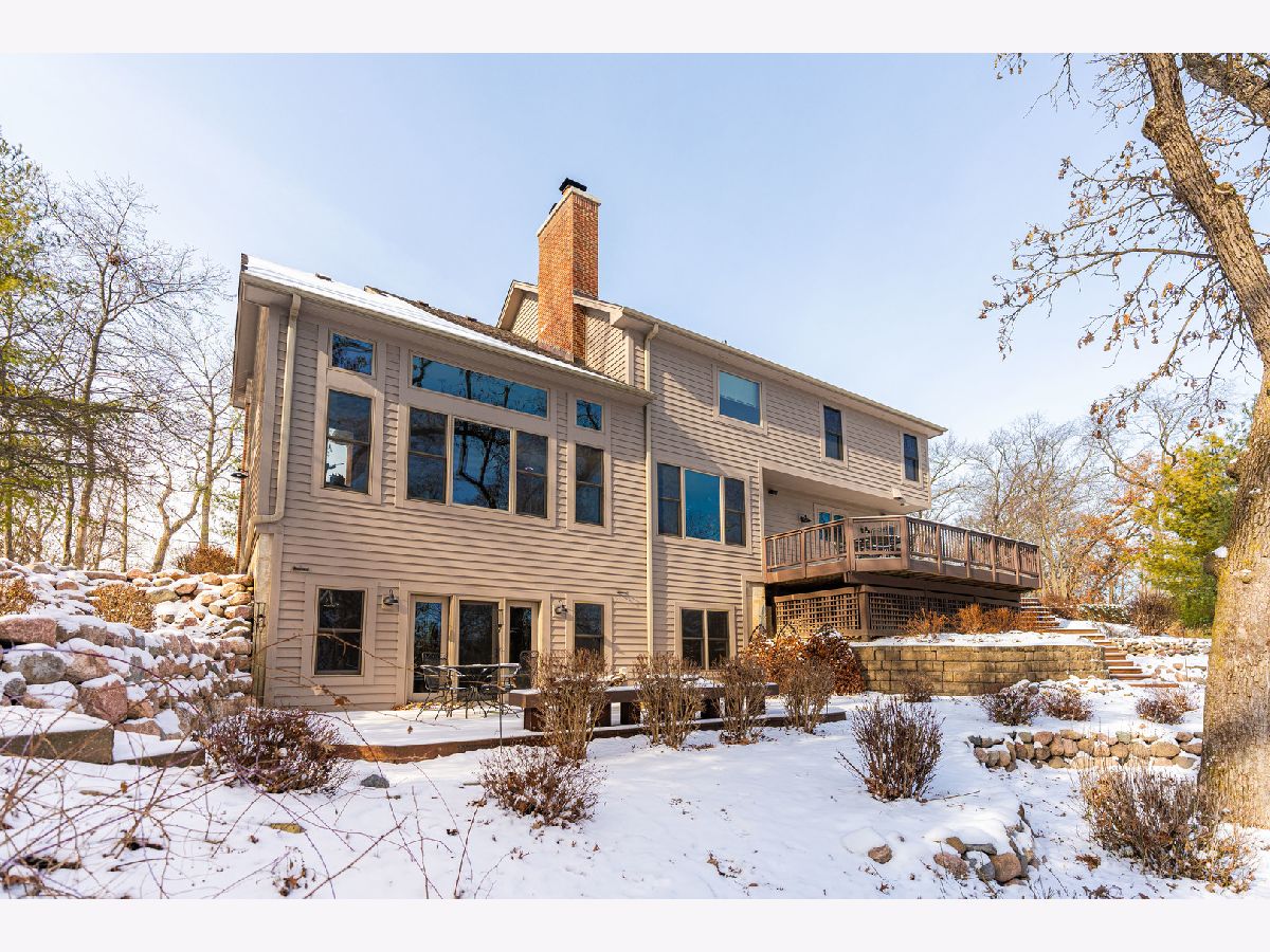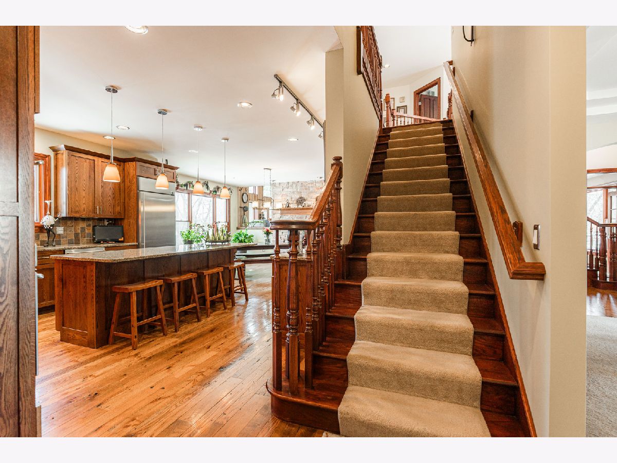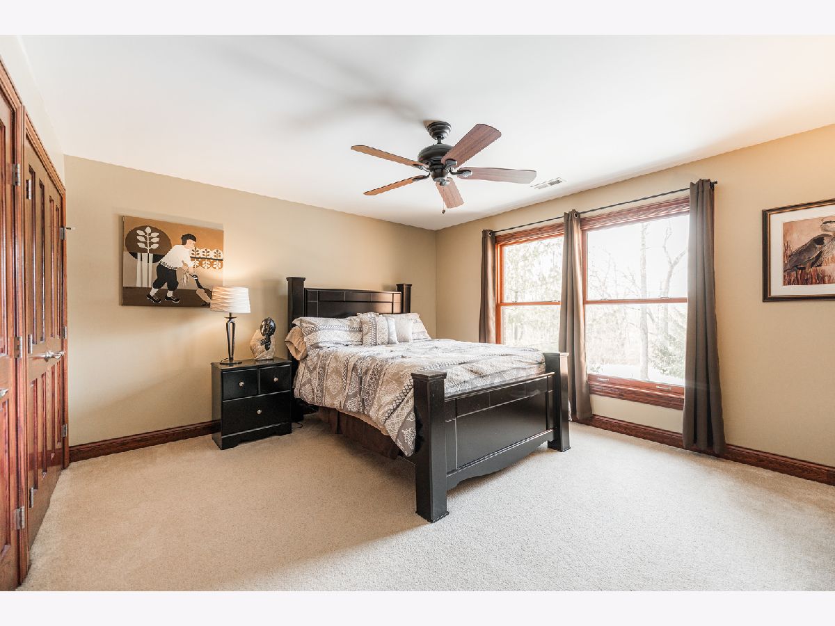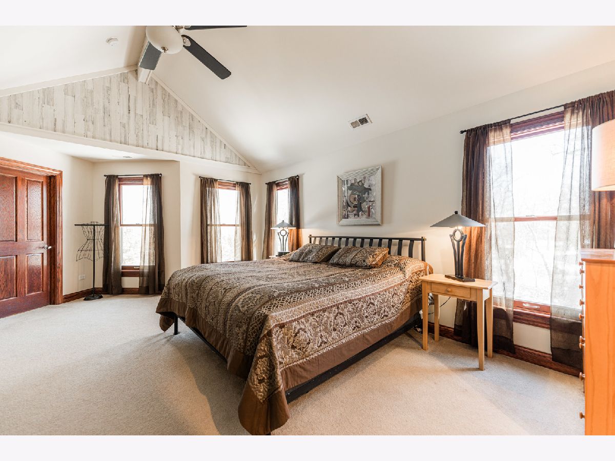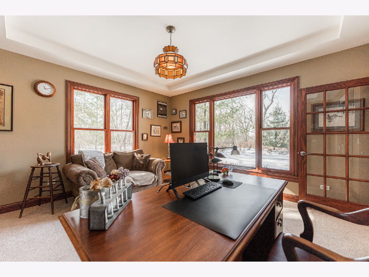 A truly exquisite masterpiece, this meticulously maintained, one-owner custom home is a flawless example of perfection. It exudes a multi-generational vibe, offering limitless possibilities for any lifestyle or need. This 3-story home with a walkout basement is tucked away on a private lane, set on 2.5 acres of wooded property with a serene creek and abundant natural beauty. With almost 6800 square feet of luxurious living space, this home features a spacious, heated 4+ car, extra-deep and wide garage (45' x 25'), a brick paver walkway, flagstone steps, 3 cedar decks, and a cozy fire pit-perfect for grabbing your glass and watching the exceptional sunrises and sunsets. The gourmet kitchen is a chef's ultimate dream, featuring top-of-the-line GE Monogram stainless steel appliances, including three ovens, a 48" stove, and a wine bar with beverage drawers built in. It also features a spacious pantry, a large island with a breakfast bar, and a breathtaking stone see-through fireplace that seamlessly connects to the vaulted family room. All of this is framed by stunning, picturesque views that enhance the entire space. The main level also showcases an elegant formal dining room, a bright and airy office with built-in shelves, and an abundance of natural light. A convenient mudroom off the garage is equipped with custom built-ins, perfect for storing coats and backpacks. The laundry room offers direct deck access, and a full bathroom completes the space. The master suite is an extraordinary retreat, showcasing dramatic vaulted ceilings, an expansive 21' walk-in closet with natural light, and a lavish spa-inspired bath with a Kohler corner tub and a separate, rejuvenating shower. Bedrooms 1-4 are all located on the second floor, with Bedrooms 1 and 2 seamlessly adjacent to Bedrooms 3 and 4, which share a beautifully designed Jack-and-Jill bath. The fourth bedroom is exceptionally spacious, offering a second master suite-like experience, complete with a generously sized walk-in closet and easy attic access. Climb the next staircase to the expansive third floor, where you'll find a fifth bedroom with a large walk-in closet and additional attic storage, offering endless possibilities for customization and use. The walk-out basement is a true entertainment hub, offering a game room, recreation area, exercise room, built in sound speakers, a two-sided stone fireplace with gas logs, a full bath, workshop with plenty of storage space, and a huge home bar built to impress and entertain on a grand scale. This home is filled with exceptional details, including dual staircases, extensive lighting and dimmer switches to set the perfect ambiance, under-cabinet lighting, and elegant tray ceilings. Every closet is thoughtfully organized, and five luxurious full bathrooms are equipped with heat lamps for added comfort. Two HVAC systems with humidifiers ensure year-round climate control, while two attic fans provide enhanced ventilation. Enjoy peace of mind with two 75-gallon water heaters, a brand-new water softener, and a 386' deep well. The home also features an advanced RO water system, 400-amp electrical service with conduit, and energy-efficient Pella Architect Series windows, adding both functionality and style throughout. Located just 5 minutes from I-90, US-20, IL-72, the train station, restaurants, hospital, and an 840-acre forest preserve, this home offers unparalleled convenience, yet tucked away in a tranquil, one-of-a-kind setting, this masterfully constructed home is the perfect place for you. Step inside and experience the ultimate in luxury and comfort. Welcome to your dream home!