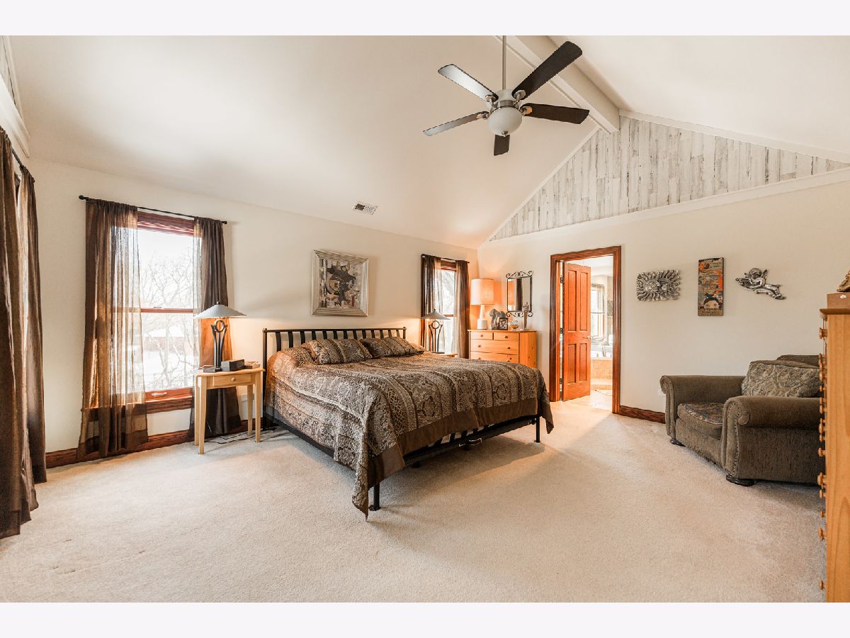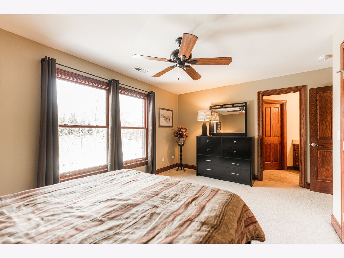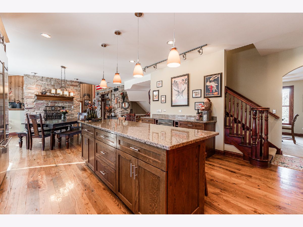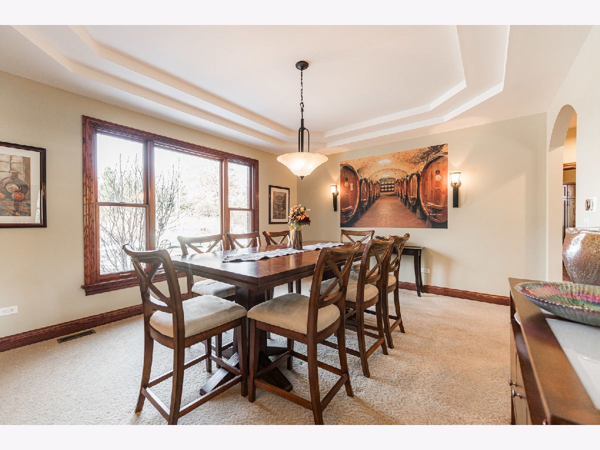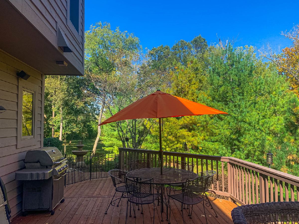 A truly exquisite masterpiece, this meticulously maintained, one-owner custom home is a flawless example of perfection. It exudes a multi-generational vibe, offering limitless possibilities for any lifestyle or need. This 3-story home with a walkout basement is tucked away on a private lane, set on 2.5 acres of wooded property with a serene creek and abundant natural beauty. With almost 6800 square feet of luxurious living space, this home features a spacious, heated 4+ car, extra-deep and wide garage (45' x 25'), a brick paver walkway, flagstone steps, 3 cedar decks, and a cozy fire pit-perfect for grabbing your glass and watching the exceptional sunrises and sunsets. The gourmet kitchen is a chef's ultimate dream, featuring top-of-the-line GE Monogram stainless steel appliances, including three ovens, a 48" stove, and a wine bar with beverage drawers built in. It also features a spacious pantry, a large island with a breakfast bar, and a breathtaking stone see-through fireplace that seamlessly connects to the vaulted family room. All of this is framed by stunning, picturesque views that enhance the entire space. The main level also showcases an elegant formal dining room, a bright and airy office with built-in shelves, and an abundance of natural light. A convenient mudroom off the garage is equipped with custom built-ins, perfect for storing coats and backpacks. The laundry room offers direct deck access, and a full bathroom completes the space. The master suite is an extraordinary retreat, showcasing dramatic vaulted ceilings, an expansive 21' walk-in closet with natural light, and a lavish spa-inspired bath with a Kohler corner tub and a separate, rejuvenating shower. Bedrooms 1-4 are all located on the second floor, with Bedrooms 1 and 2 seamlessly adjacent to Bedrooms 3 and 4, which share a beautifully designed Jack-and-Jill bath. The fourth bedroom is exceptionally spacious, offering a second master suite-like experience, complete with a generously sized walk-in closet and easy attic access. Climb the next staircase to the expansive third floor, where you'll find a fifth bedroom with a large walk-in closet and additional attic storage, offering endless possibilities for customization and use. The walk-out basement is a true entertainment hub, offering a game room, recreation area, exercise room, built in sound speakers, a two-sided stone fireplace with gas logs, a full bath, workshop with plenty of storage space, and a huge home bar built to impress and entertain on a grand scale. This home is filled with exceptional details, including dual staircases, extensive lighting and dimmer switches to set the perfect ambiance, under-cabinet lighting, and elegant tray ceilings. Every closet is thoughtfully organized, and five luxurious full bathrooms are equipped with heat lamps for added comfort. Two HVAC systems with humidifiers ensure year-round climate control, while two attic fans provide enhanced ventilation. Enjoy peace of mind with two 75-gallon water heaters, a brand-new water softener, and a 386' deep well. The home also features an advanced RO water system, 400-amp electrical service with conduit, and energy-efficient Pella Architect Series windows, adding both functionality and style throughout. Located just 5 minutes from I-90, US-20, IL-72, the train station, restaurants, hospital, and an 840-acre forest preserve, this home offers unparalleled convenience, yet tucked away in a tranquil, one-of-a-kind setting, this masterfully constructed home is the perfect place for you. Step inside and experience the ultimate in luxury and comfort. Welcome to your dream home!
