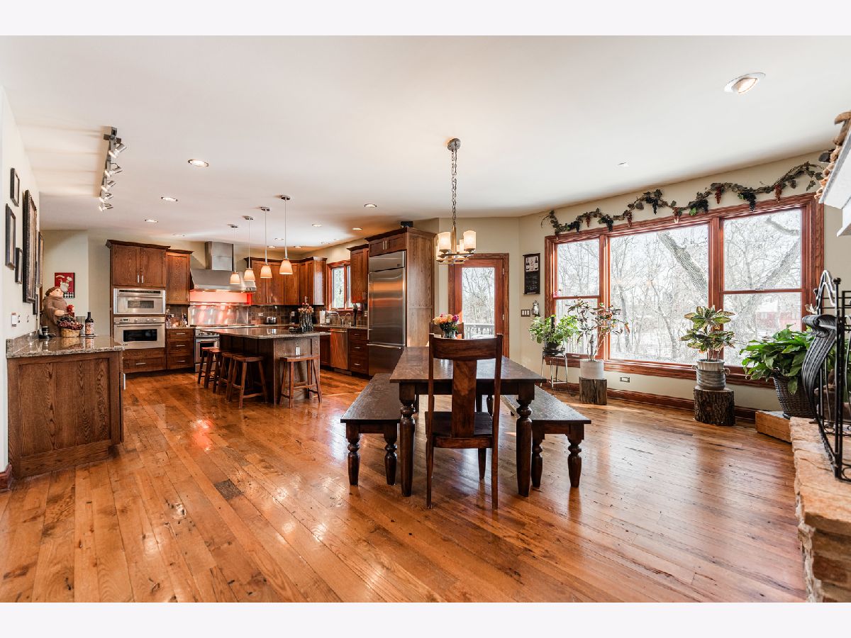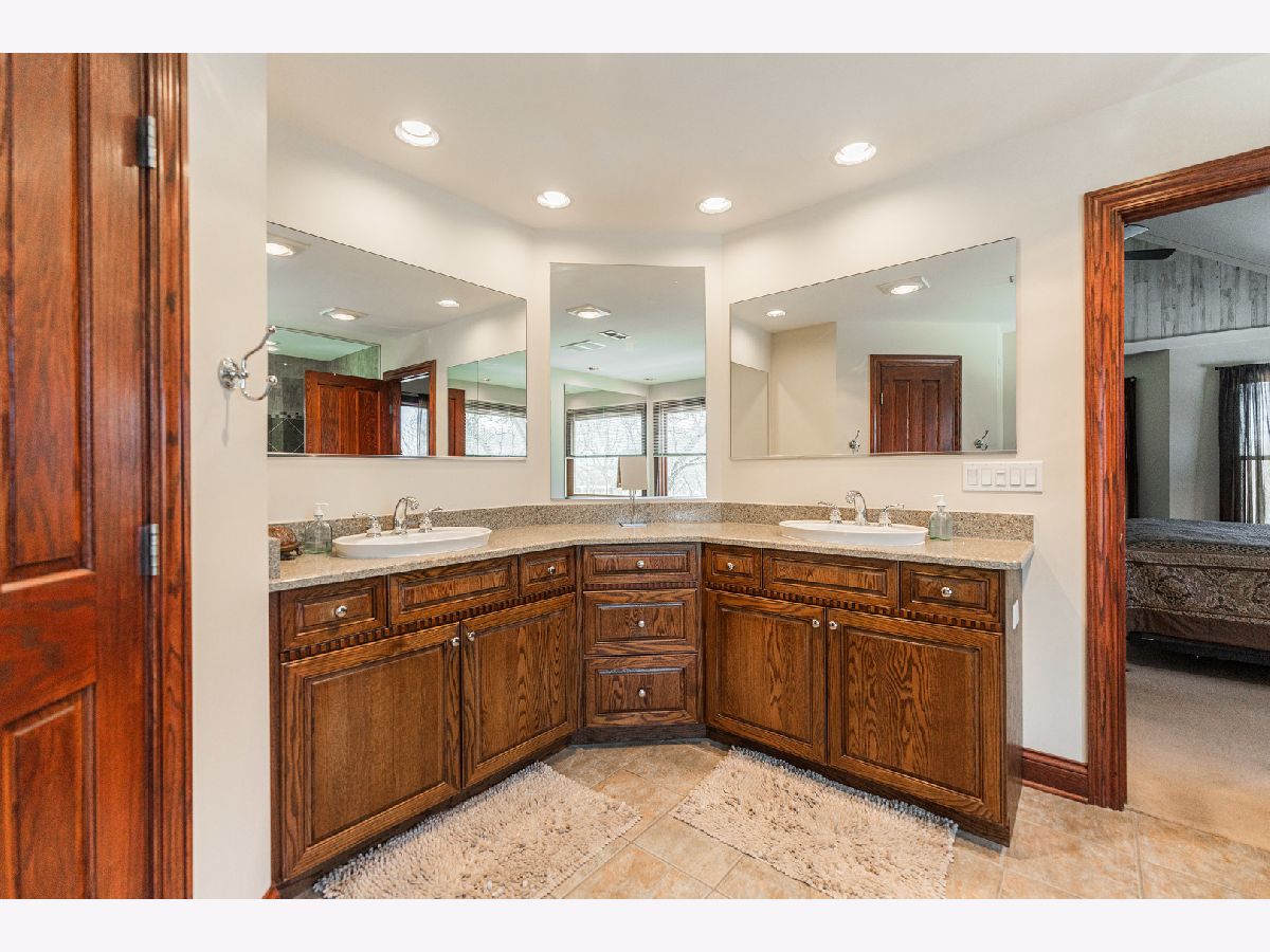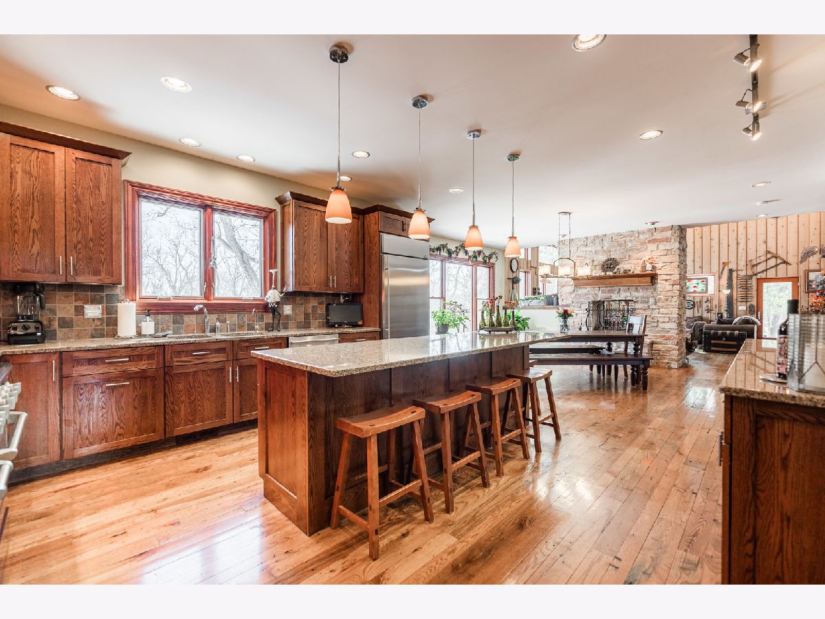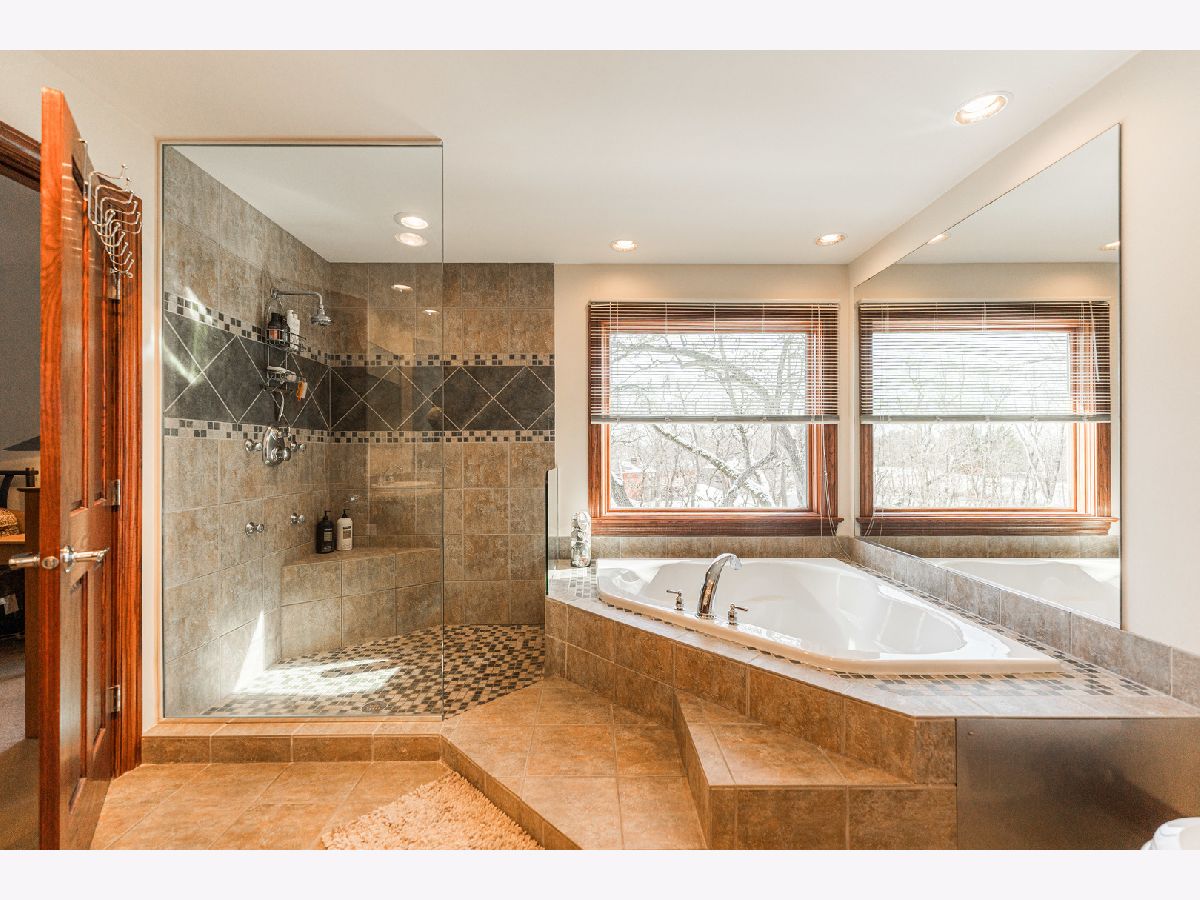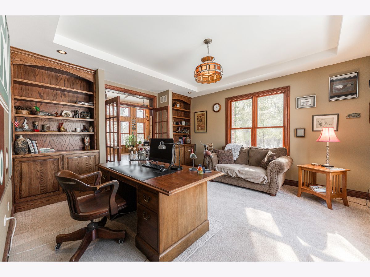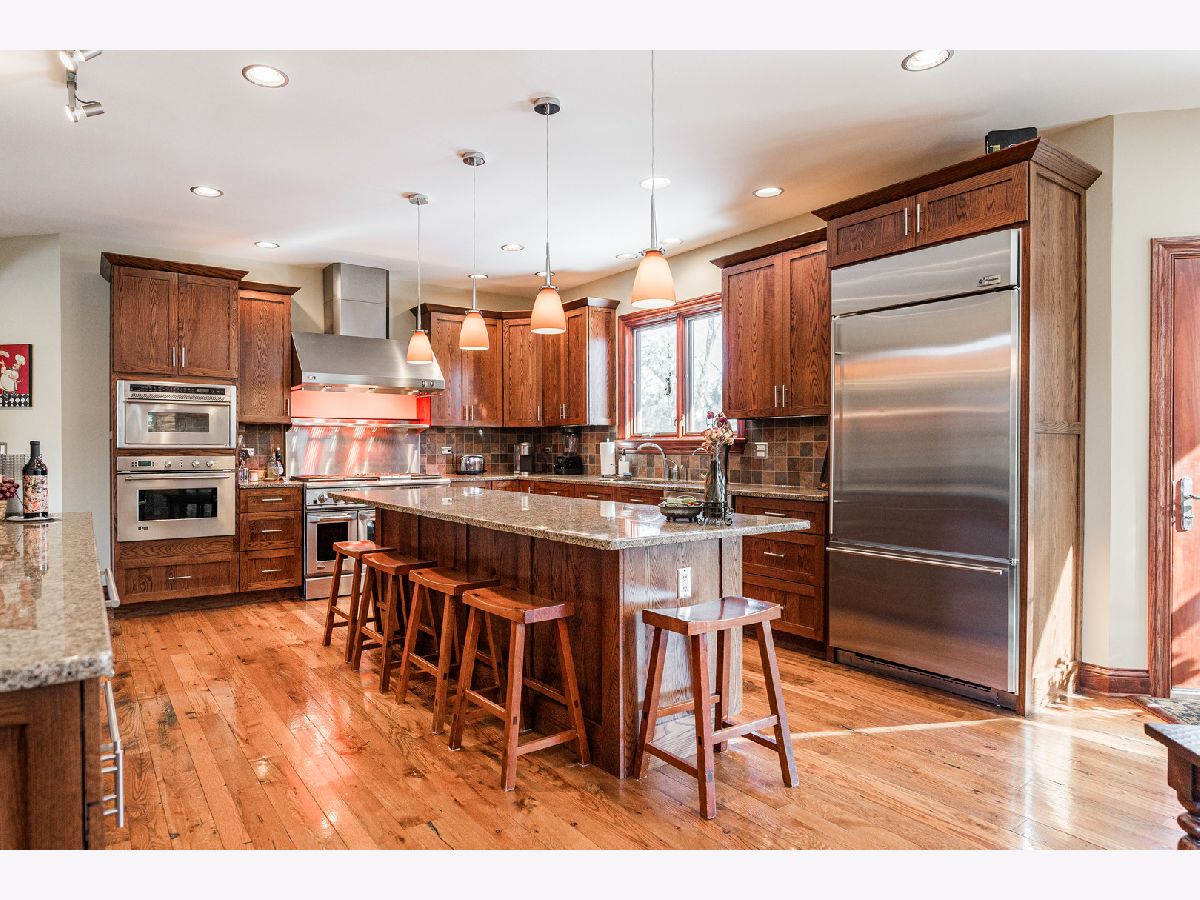 A truly exquisite masterpiece, this meticulously maintained, one-owner custom home is a flawless example of perfection. It exudes a multi-generational vibe, offering limitless possibilities for any lifestyle or need. This 3-story home with a walkout basement is tucked away on a private lane, set on 2.5 acres of wooded property with a serene creek and abundant natural beauty. With almost 6800 square feet of luxurious living space, this home features a spacious, heated 4+ car, extra-deep and wide garage (45' x 25'), a brick paver walkway, flagstone steps, 3 cedar decks, and a cozy fire pit-perfect for grabbing your glass and watching the exceptional sunrises and sunsets. The gourmet kitchen is a chef's ultimate dream, featuring top-of-the-line GE Monogram stainless steel appliances, including three ovens, a 48" stove, and a wine bar with beverage drawers built in. It also features a spacious pantry, a large island with a breakfast bar, and a breathtaking stone see-through fireplace that seamlessly connects to the vaulted family room. All of this is framed by stunning, picturesque views that enhance the entire space. The main level also showcases an elegant formal dining room, a bright and airy office with built-in shelves, and an abundance of natural light. A convenient mudroom off the garage is equipped with custom built-ins, perfect for storing coats and backpacks. The laundry room offers direct deck access, and a full bathroom completes the space. The master suite is an extraordinary retreat, showcasing dramatic vaulted ceilings, an expansive 21' walk-in closet with natural light, and a lavish spa-inspired bath with a Kohler corner tub and a separate, rejuvenating shower. Bedrooms 1-4 are all located on the second floor, with Bedrooms 1 and 2 seamlessly adjacent to Bedrooms 3 and 4, which share a beautifully designed Jack-and-Jill bath. The fourth bedroom is exceptionally spacious, offering a second master suite-like experience, complete with a generously sized walk-in closet and easy attic access. Climb the next staircase to the expansive third floor, where you'll find a fifth bedroom with a large walk-in closet and additional attic storage, offering endless possibilities for customization and use. The walk-out basement is a true entertainment hub, offering a game room, recreation area, exercise room, built in sound speakers, a two-sided stone fireplace with gas logs, a full bath, workshop with plenty of storage space, and a huge home bar built to impress and entertain on a grand scale. This home is filled with exceptional details, including dual staircases, extensive lighting and dimmer switches to set the perfect ambiance, under-cabinet lighting, and elegant tray ceilings. Every closet is thoughtfully organized, and five luxurious full bathrooms are equipped with heat lamps for added comfort. Two HVAC systems with humidifiers ensure year-round climate control, while two attic fans provide enhanced ventilation. Enjoy peace of mind with two 75-gallon water heaters, a brand-new water softener, and a 386' deep well. The home also features an advanced RO water system, 400-amp electrical service with conduit, and energy-efficient Pella Architect Series windows, adding both functionality and style throughout. Located just 5 minutes from I-90, US-20, IL-72, the train station, restaurants, hospital, and an 840-acre forest preserve, this home offers unparalleled convenience, yet tucked away in a tranquil, one-of-a-kind setting, this masterfully constructed home is the perfect place for you. Step inside and experience the ultimate in luxury and comfort. Welcome to your dream home!