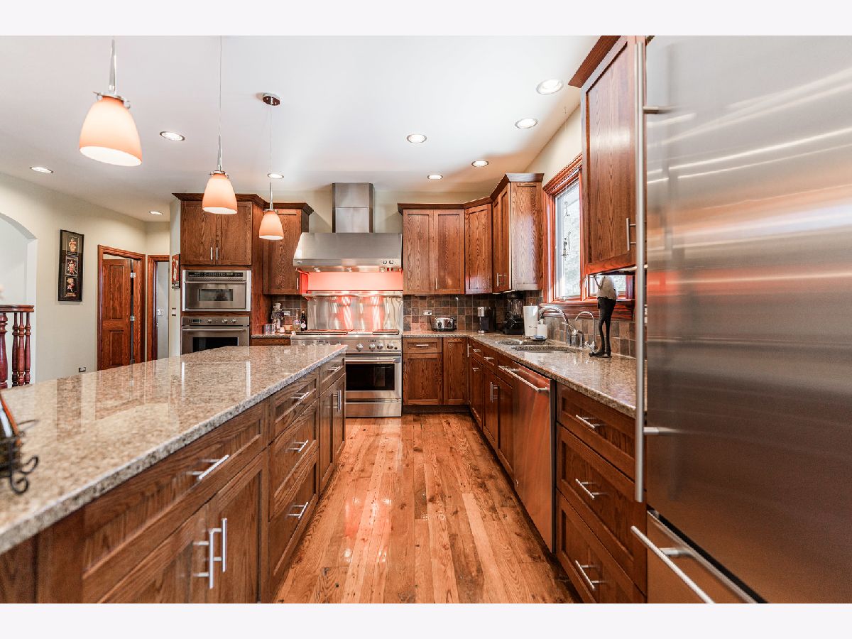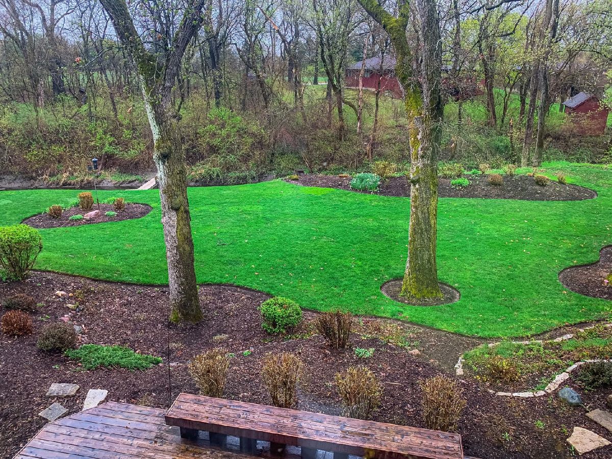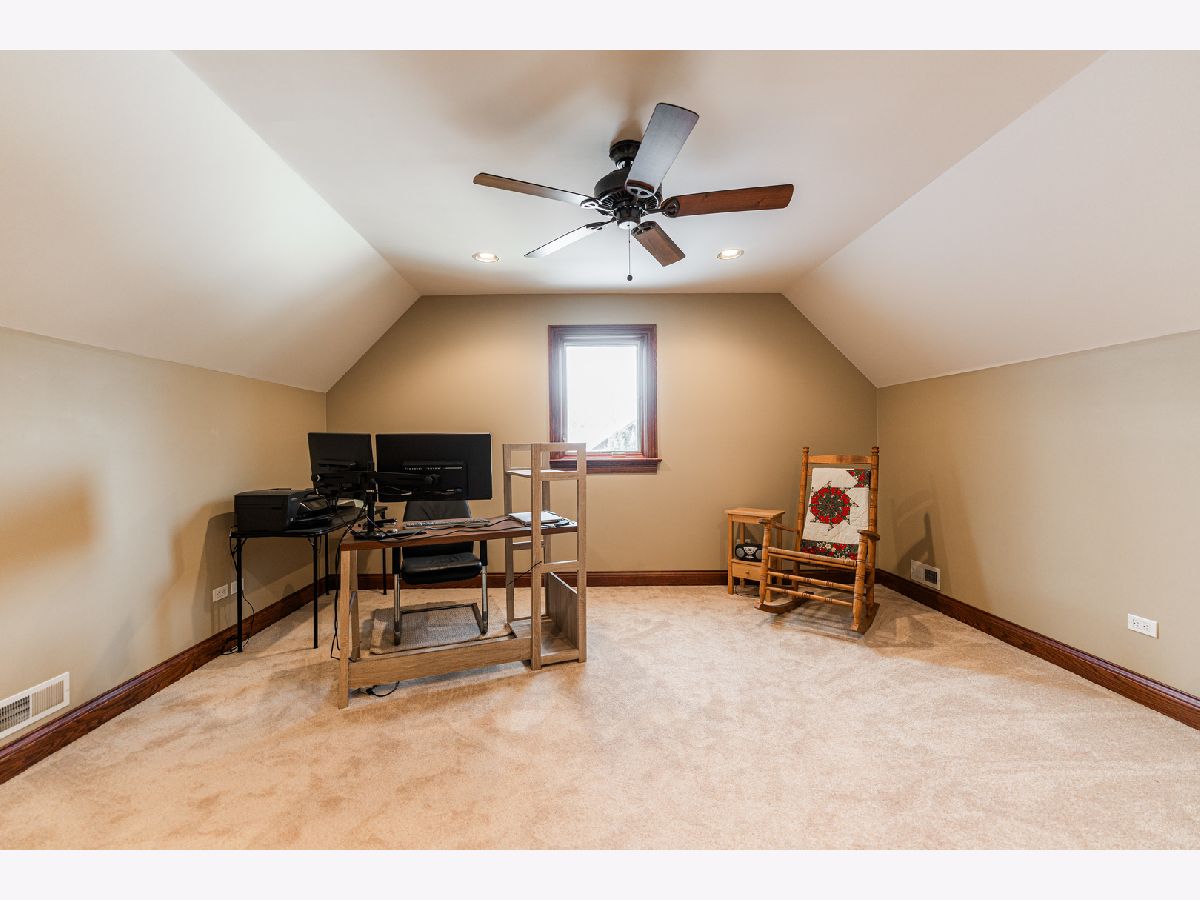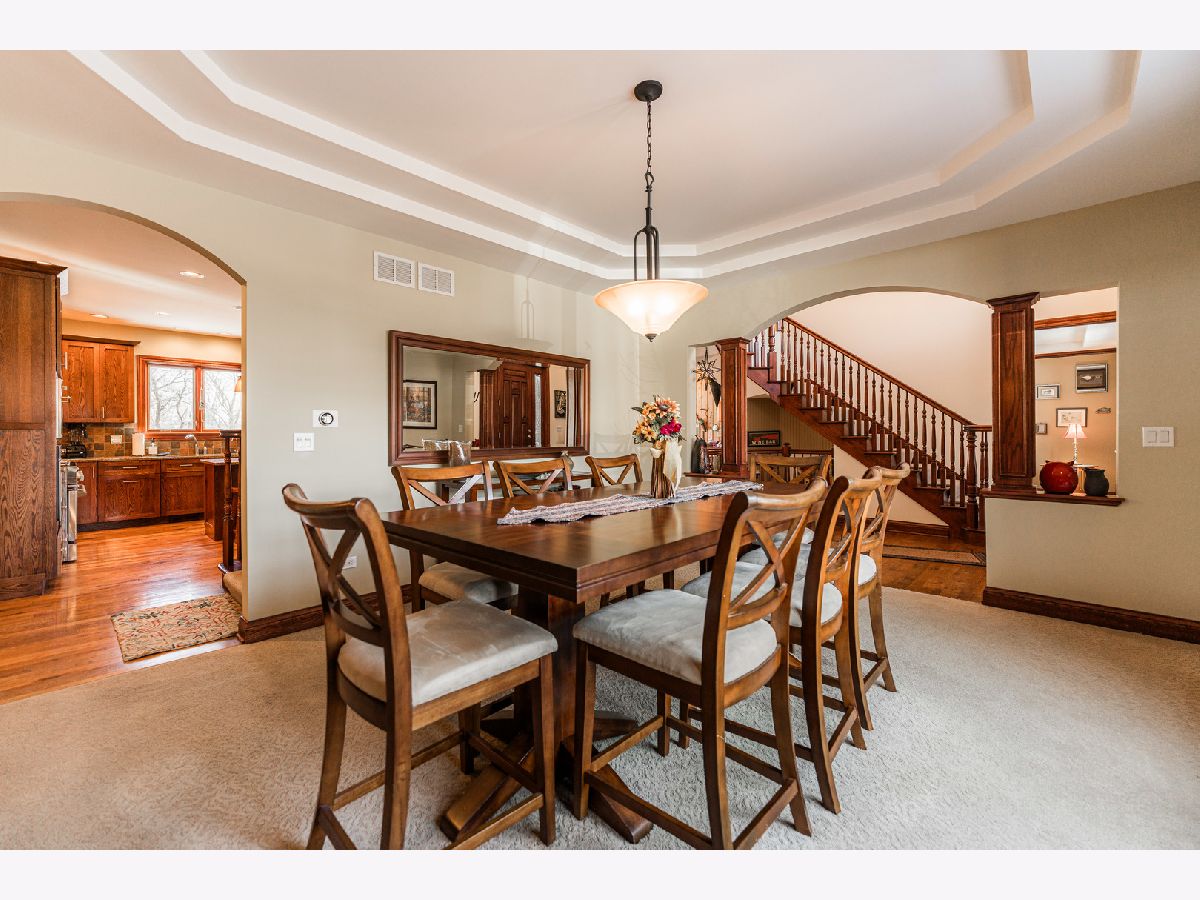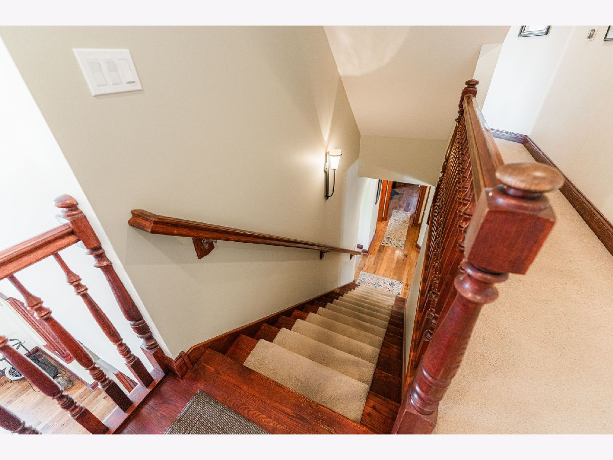 A truly exquisite masterpiece, this meticulously maintained, one-owner custom home is a flawless example of perfection. It exudes a multi-generational vibe, offering limitless possibilities for any lifestyle or need. This 3-story home with a walkout basement is tucked away on a private lane, set on 2.5 acres of wooded property with a serene creek and abundant natural beauty. With almost 6800 square feet of luxurious living space, this home features a spacious, heated 4+ car, extra-deep and wide garage (45' x 25'), a brick paver walkway, flagstone steps, 3 cedar decks, and a cozy fire pit-perfect for grabbing your glass and watching the exceptional sunrises and sunsets. The gourmet kitchen is a chef's ultimate dream, featuring top-of-the-line GE Monogram stainless steel appliances, including three ovens, a 48" stove, and a wine bar with beverage drawers built in. It also features a spacious pantry, a large island with a breakfast bar, and a breathtaking stone see-through fireplace that seamlessly connects to the vaulted family room. All of this is framed by stunning, picturesque views that enhance the entire space. The main level also showcases an elegant formal dining room, a bright and airy office with built-in shelves, and an abundance of natural light. A convenient mudroom off the garage is equipped with custom built-ins, perfect for storing coats and backpacks. The laundry room offers direct deck access, and a full bathroom completes the space. The master suite is an extraordinary retreat, showcasing dramatic vaulted ceilings, an expansive 21' walk-in closet with natural light, and a lavish spa-inspired bath with a Kohler corner tub and a separate, rejuvenating shower. Bedrooms 1-4 are all located on the second floor, with Bedrooms 1 and 2 seamlessly adjacent to Bedrooms 3 and 4, which share a beautifully designed Jack-and-Jill bath. The fourth bedroom is exceptionally spacious, offering a second master suite-like experience, complete with a generously sized walk-in closet and easy attic access. Climb the next staircase to the expansive third floor, where you'll find a fifth bedroom with a large walk-in closet and additional attic storage, offering endless possibilities for customization and use. The walk-out basement is a true entertainment hub, offering a game room, recreation area, exercise room, built in sound speakers, a two-sided stone fireplace with gas logs, a full bath, workshop with plenty of storage space, and a huge home bar built to impress and entertain on a grand scale. This home is filled with exceptional details, including dual staircases, extensive lighting and dimmer switches to set the perfect ambiance, under-cabinet lighting, and elegant tray ceilings. Every closet is thoughtfully organized, and five luxurious full bathrooms are equipped with heat lamps for added comfort. Two HVAC systems with humidifiers ensure year-round climate control, while two attic fans provide enhanced ventilation. Enjoy peace of mind with two 75-gallon water heaters, a brand-new water softener, and a 386' deep well. The home also features an advanced RO water system, 400-amp electrical service with conduit, and energy-efficient Pella Architect Series windows, adding both functionality and style throughout. Located just 5 minutes from I-90, US-20, IL-72, the train station, restaurants, hospital, and an 840-acre forest preserve, this home offers unparalleled convenience, yet tucked away in a tranquil, one-of-a-kind setting, this masterfully constructed home is the perfect place for you. Step inside and experience the ultimate in luxury and comfort. Welcome to your dream home!