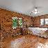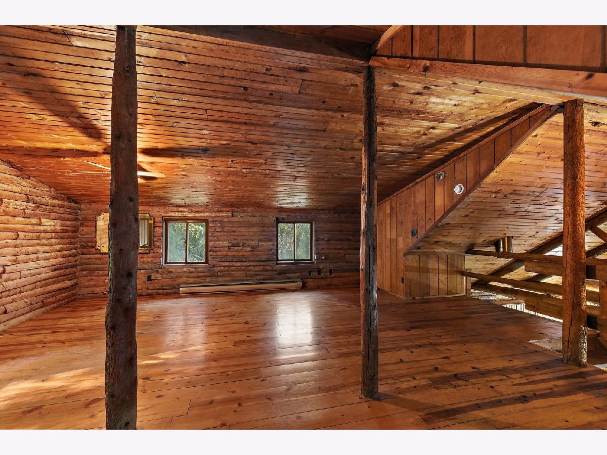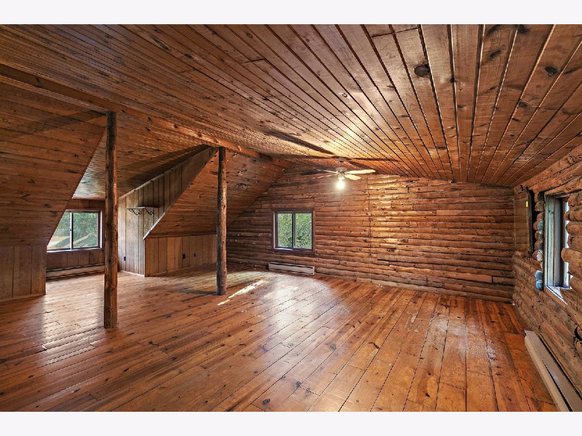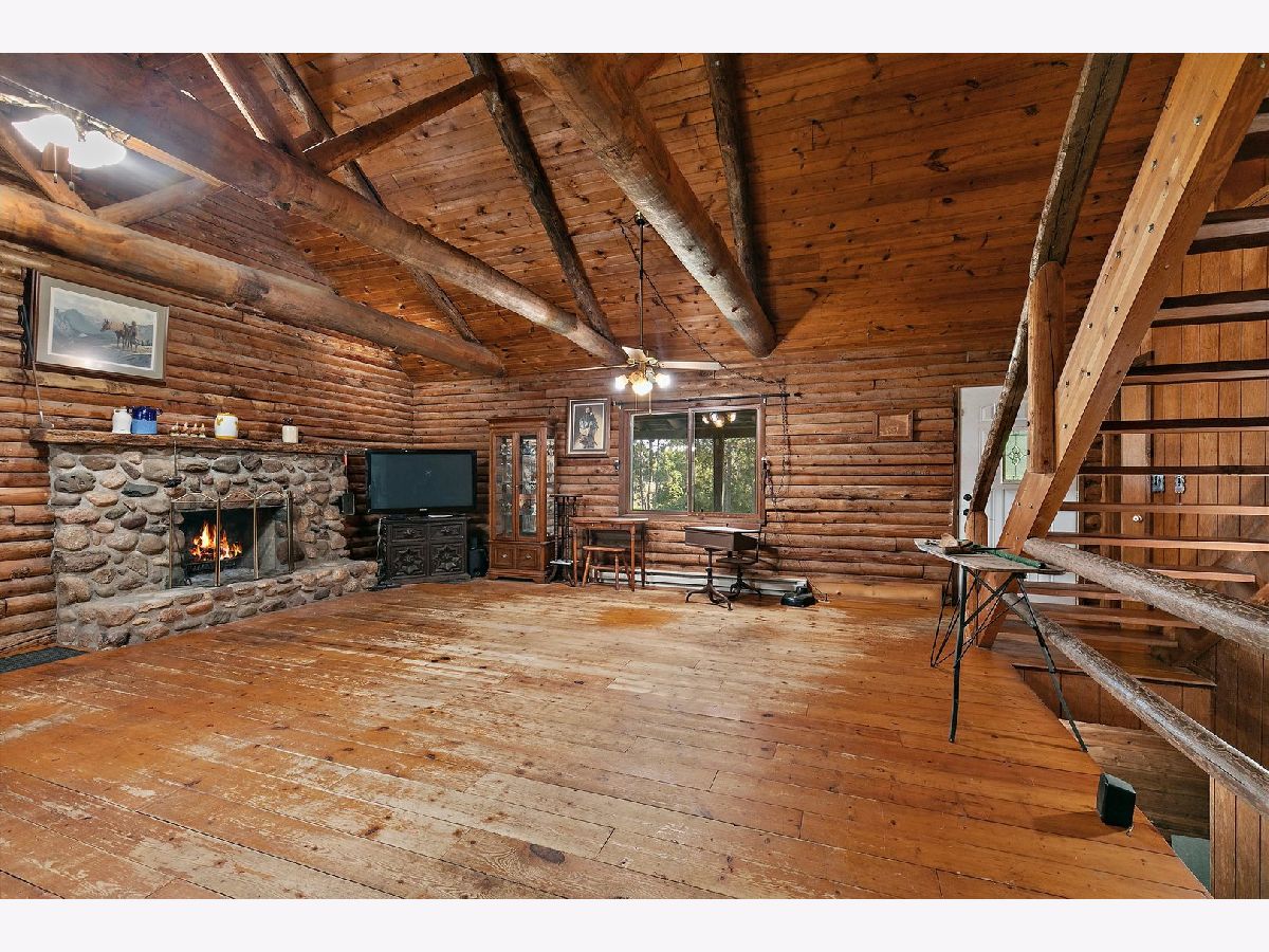 AMAZING LOG HOME NESTLED AMONG THE WOODS ~ SITUATED ON PRIVATE 7.26 ACRES OF GORGEOUS TOWERING OAKS, HICKORYS, MAPLES AND MORE ~ 3 BEDROOMS ~ OPEN GREAT ROOM WITH EXPOSED LOG BEAMS ~ FIELDSTONE FIREPLACE ~ LOFT WITH 3RD BEDROOM ~ FULL PARTIALLY FINISHED BASEMENT ~ FRONT & BACK PORCHES ~ 6 STALL HORSE BARN.