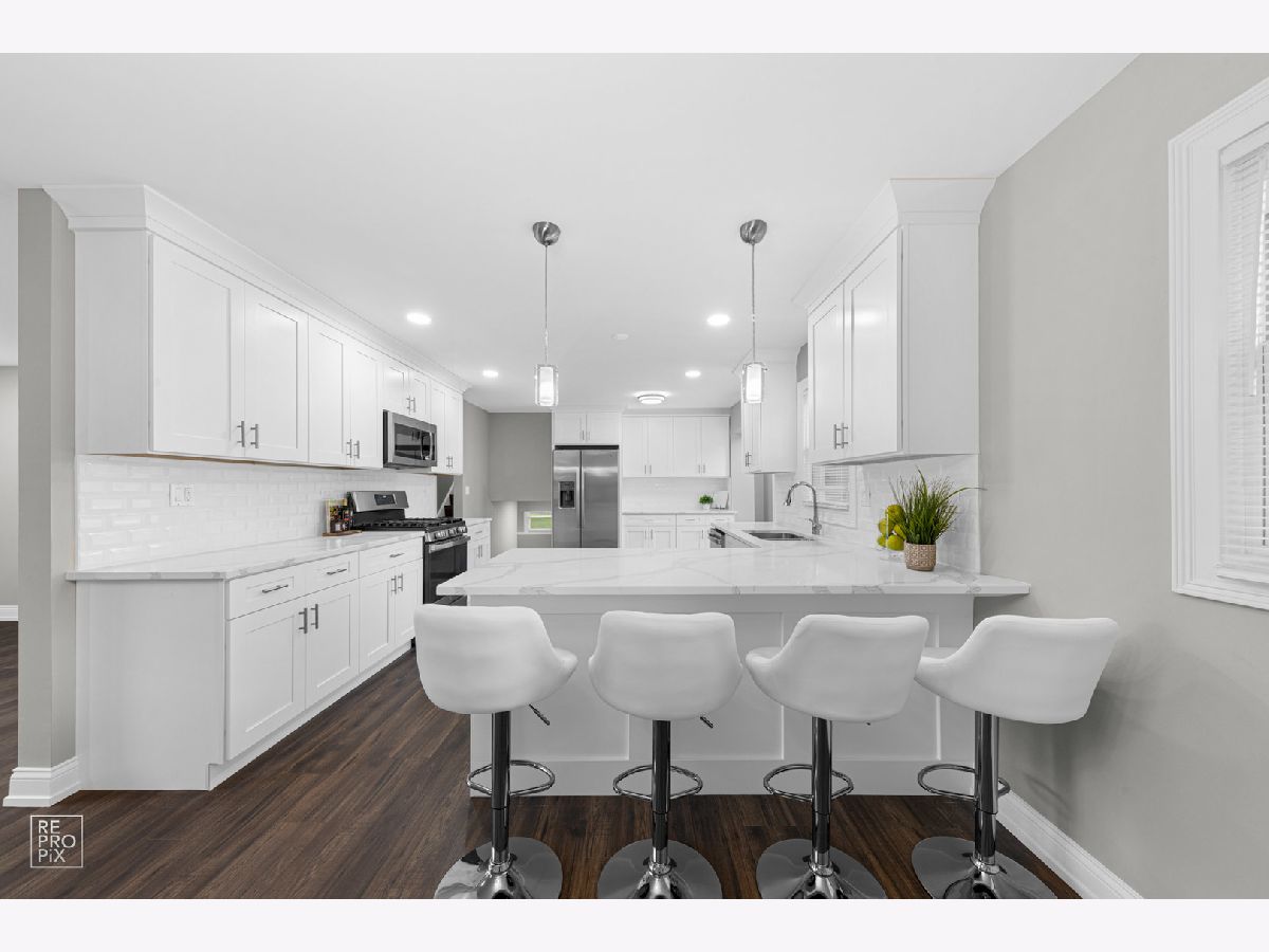 Multiple Offers Received - Highest & Best is due by Monday, 08/15/22 at 12pm. Prepare to be AMAZED! Rarely available absolutely stunning 5 bed 2.5 bath completely remodeled home in a desirable neighborhood in Arlington Heights! More privacy and safety in quiet cul-de-sac! Unique open floor plan, tons of natural light, incredible upgrades and features throughout! New marvelous kitchen with white cabinetry, luxurious quartz, brand new SS appliances, ceramic backsplash and lots of cabinet storage space. Brand new 100amp electrical service with new breaker box & circuit breakers, new windows, light fixtures, professional carpentry, new beautiful wood laminate floors throughout the house. Brand new splendid 2.5 bathrooms. The entire home is freshly painted in neutral colors. Large lower level provides a rec room, dry bar, vine cooler, great laundry and separate room that can be used for 5th bedroom or office space. Additional large area in the crawl space for more storage. Private huge backyard with mature trees and big patio area for grilling, entertainment or gardening. This beauty has one of the longest driveways that can accommodate 6 cars. Excellent location, conveniently located near 53 expressway, walking distance to the park, elementary school, tennis courts, restaurants or shopping. Do not miss the opportunity to acquire this EXCEPTIONAL property!