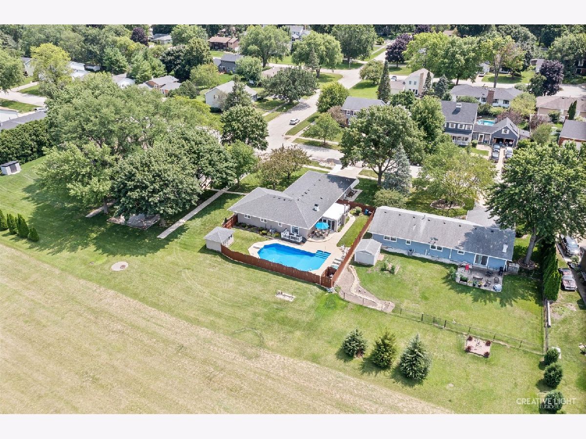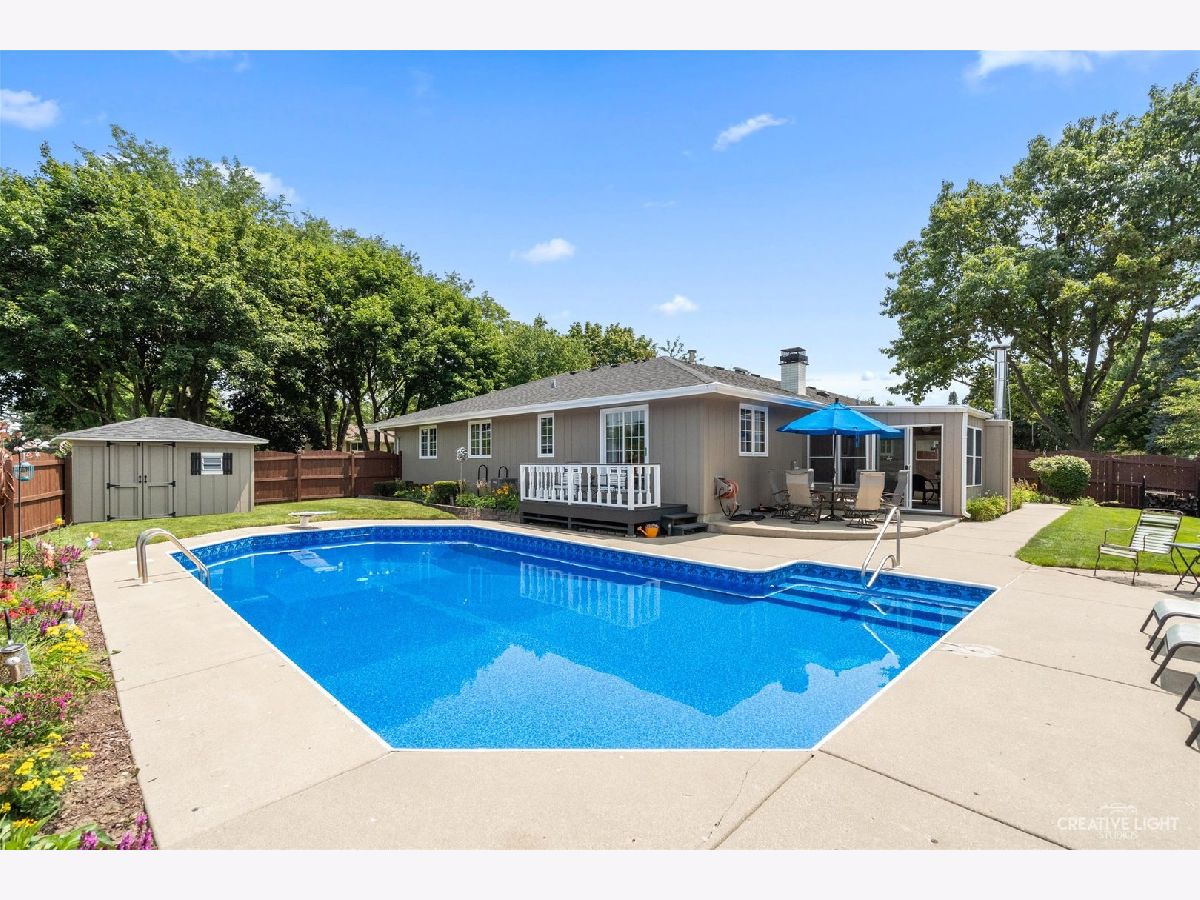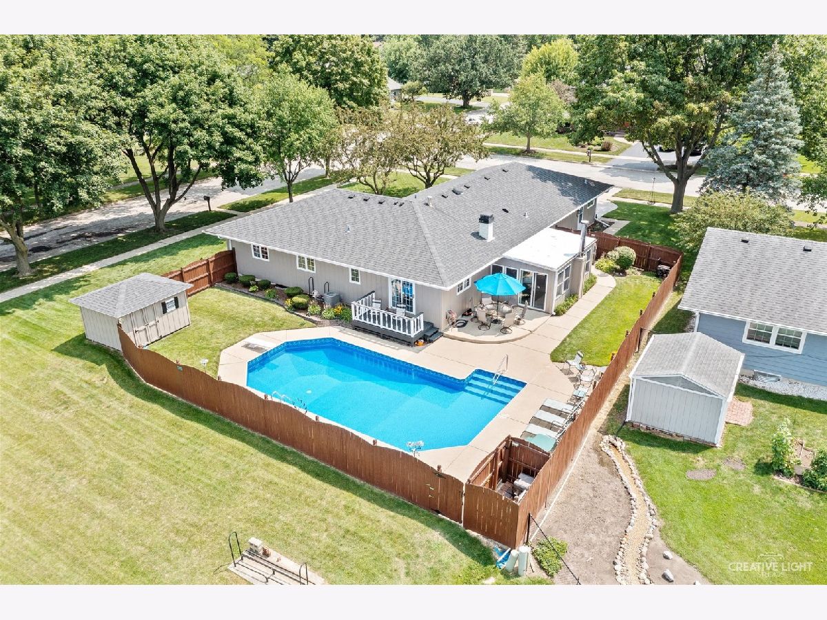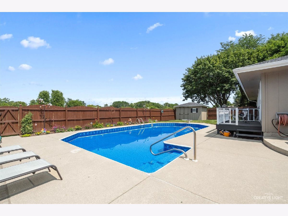 The north lot line runs along the fence north of the pool. the mowed area beyond does NOT belong to the property. Beautiful, one owner home. 3 bedrooms, 3.5 baths, full finished basement. From the gleaming hardwood floors to the newer carpet this is your dream home. The kitchen provides plenty of cabinet and counter space plus roomy enough for an eating area. Family room with fireplace and sliding doors to an enclosed patio/porch with a woodburning stove for year round use. The master bedroom with master bath and sliding doors to a deck overlooking the pool. The spacious living room is currently being used as a dining room. It has possible uses as an entertainment room/office/den or a 4th bedroom.Enjoy family time in the basemment rec room with ample space for a pool table or any games of your choosing along with a powder room. Wet bar provides seating for 6 and includes a bar stove and refrigerator. The 3rd bathroom is off of the garage with a shower and heater for everyone enjoying the pool or outside activites. An inground heated pool is provided privace by 6' high fence. 2 car heated garage. Pool heater, liner an chlorinator replaced June 2021. Pump motor replaced May 24. Garage furnace replaced in 2017. House hvac replaced 2022. Basement furnace replaced in 2011. Roof replaced in 2015.