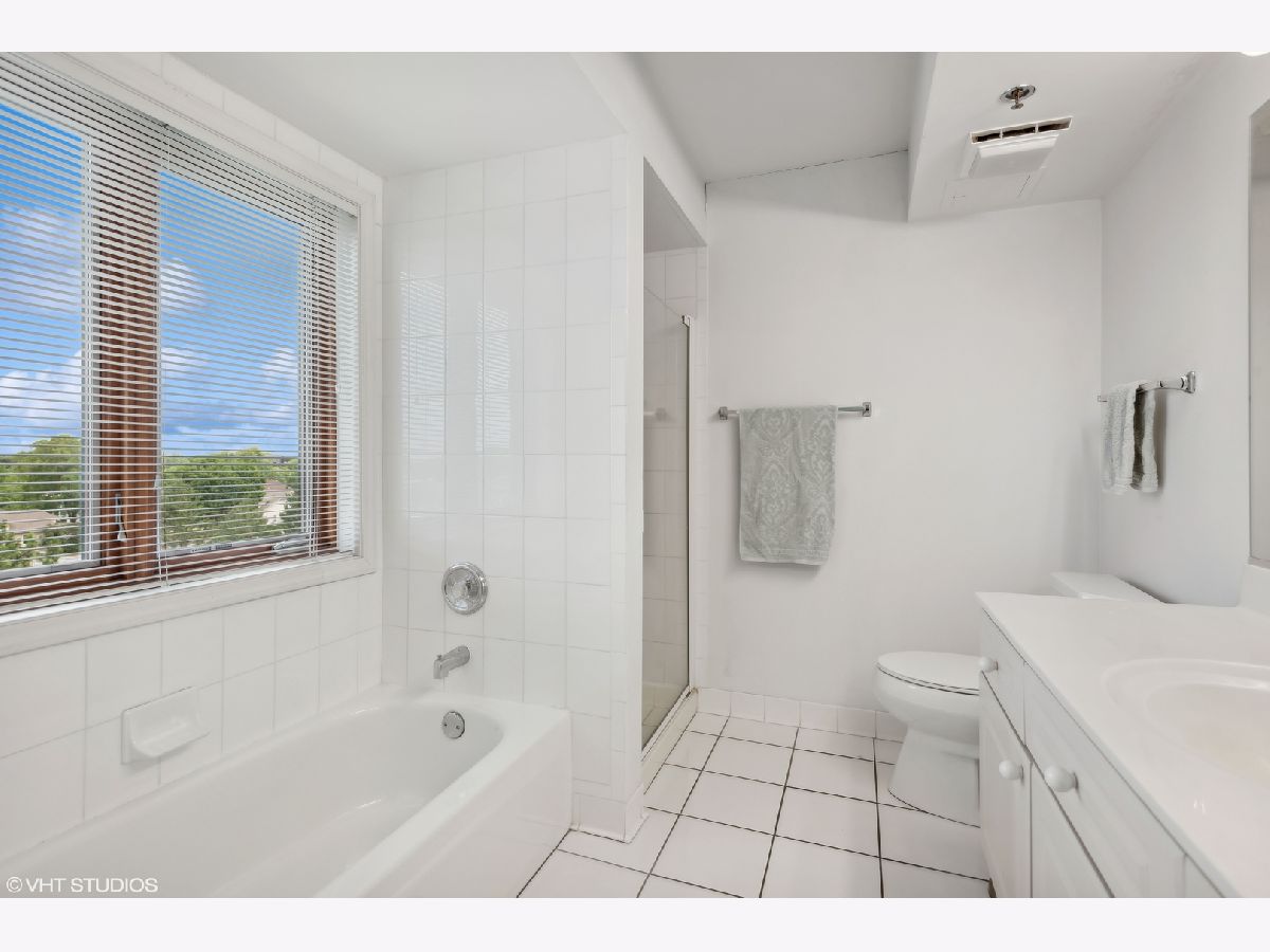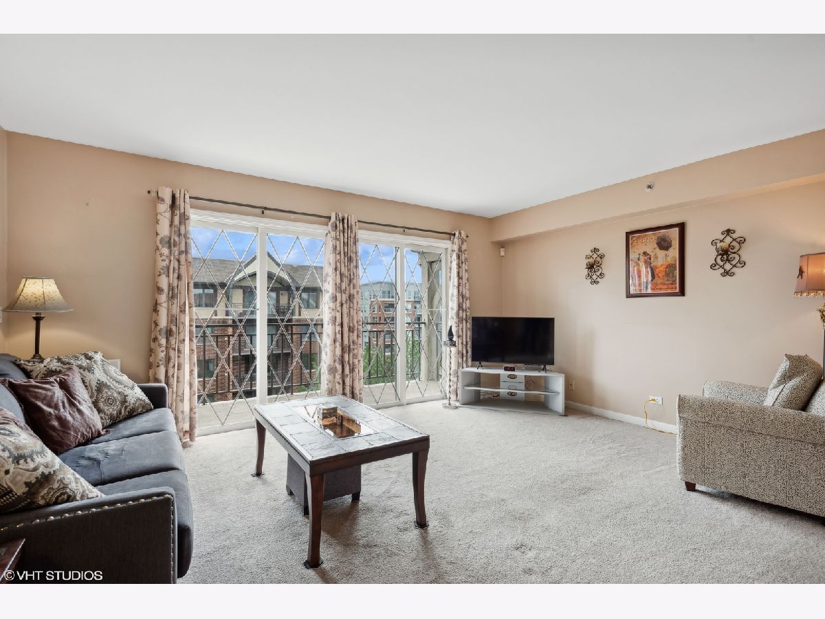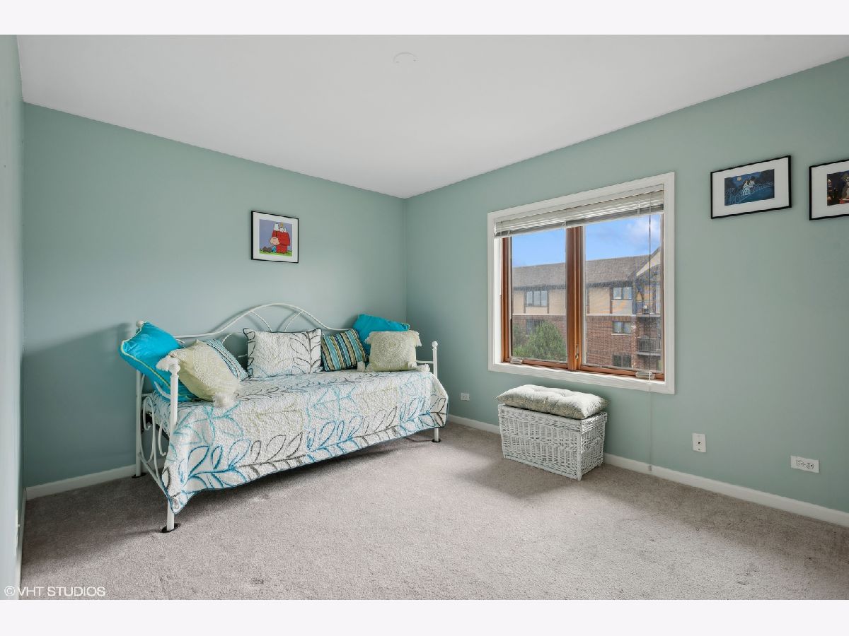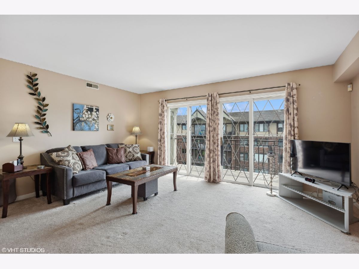 This spacious TOP FLOOR END UNIT has 2 bedrooms and 2 full bathrooms in the heart of downtown Mt Prospect, is just steps from the Metra and in the walking distance to many restaurants and shopping. This end unit condo also boasts one of the largest layouts in the complex. Enjoy a bright open floor plan, featuring a primary bedroom with a walk-in closet and primary bathroom with window for extra natural light. This large eat in kitchen boasts white cabinets, plenty of counter space and a skylight that pours in natural light. The open kitchen flows nicely to the charming dining room and expansive living room. Enjoy the beauty of the courtyard below and the scenic downtown area from your large private balcony. Convenience is key with in-unit full size laundry and garage parking. Make this warm and inviting space your new home!