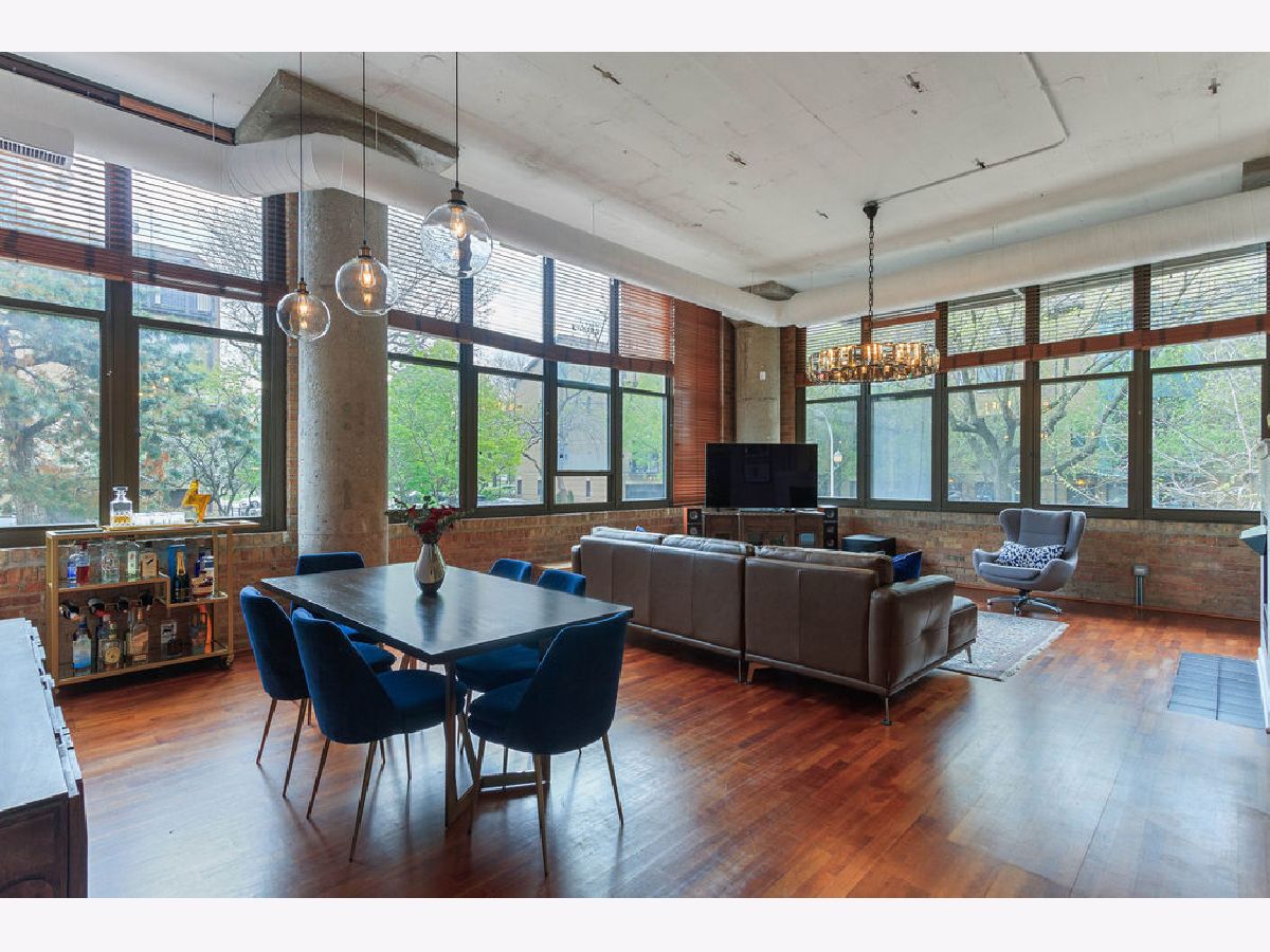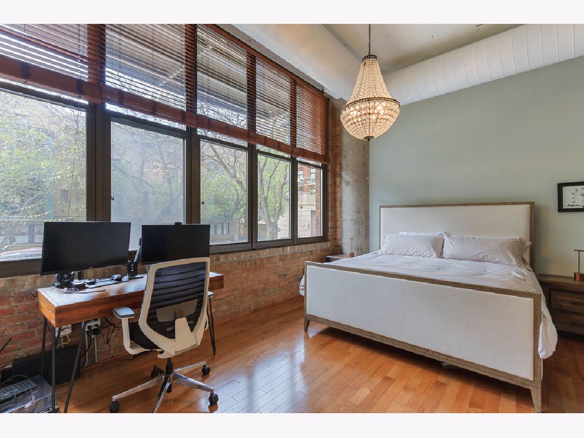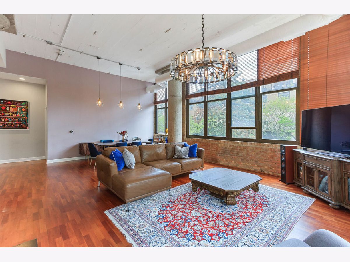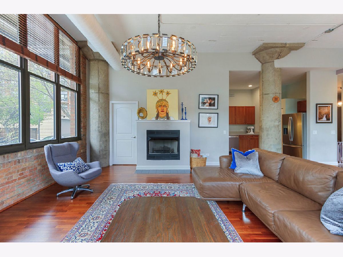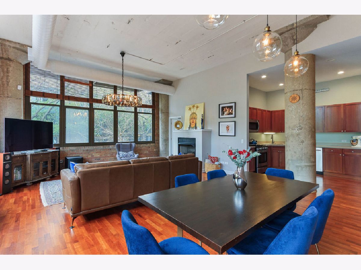 At over 1600 SF, and the largest unit in the building, this rarely available corner 2 bedroom, 2 bathroom condo features a spacious layout for entertaining, 14-foot ceilings decorated with grand designer light fixtures, wrap-around windows with sun drenched rooms and hardwood floors. The home has had a loft conversion that fully enclosed 2 generously sized bedrooms with redesigned and upgraded primary bathroom and appliances. Both bedrooms feature oversized walk-in closets and large windows. Exposed brickwork, concrete pillars and unique street light fixture in the 2nd bedroom give this home an urban loft look while the recent renovations provide it a cozy and warm home feel.The unit is complete with a living room fireplace, in-unit laundry, gracious foyer and bonus storage cage in the basement. Two assigned adjacent parking spaces are included in an attached, first-level heated garage. Access to private park next to unit. Steps to Skinner West, Skinner park, dog parks, and the heart of the West Loop. Enjoy all that West Loop has to offer! Don't wait contact us for a showing today!