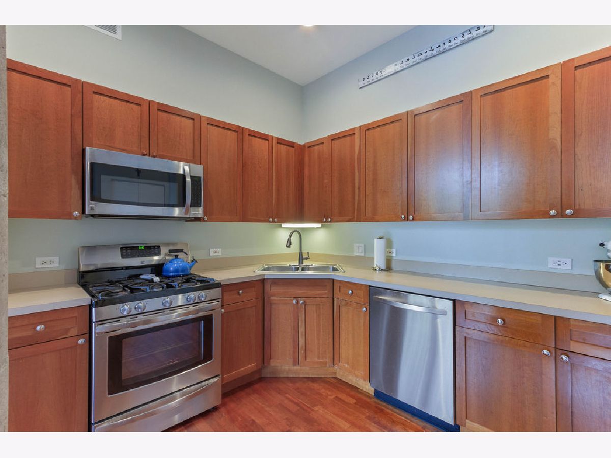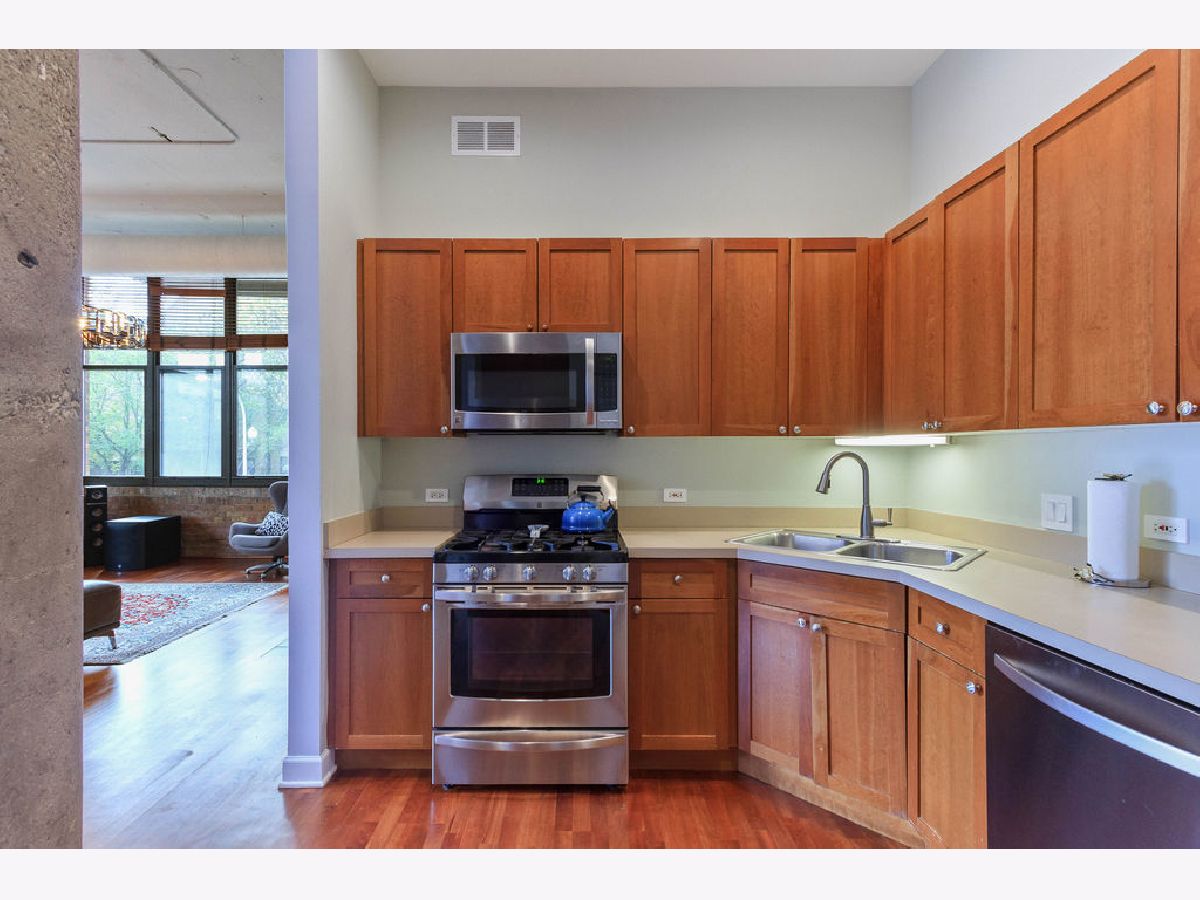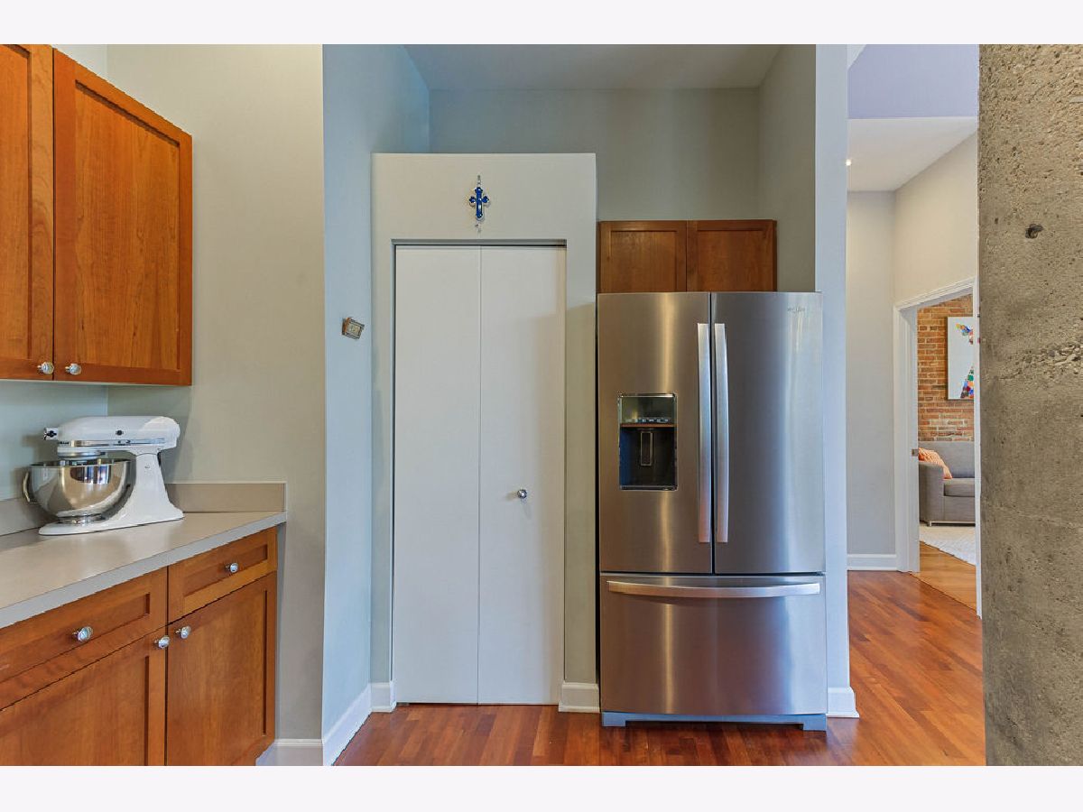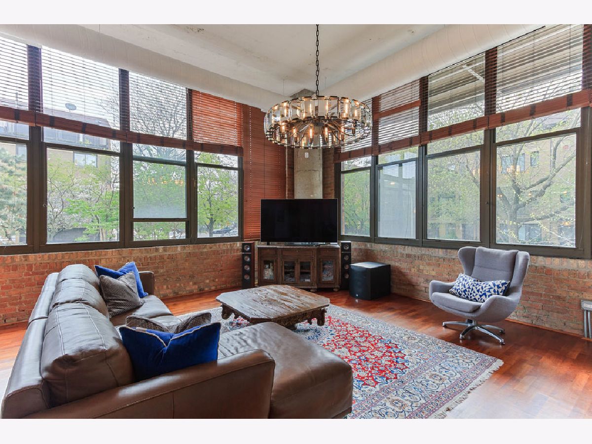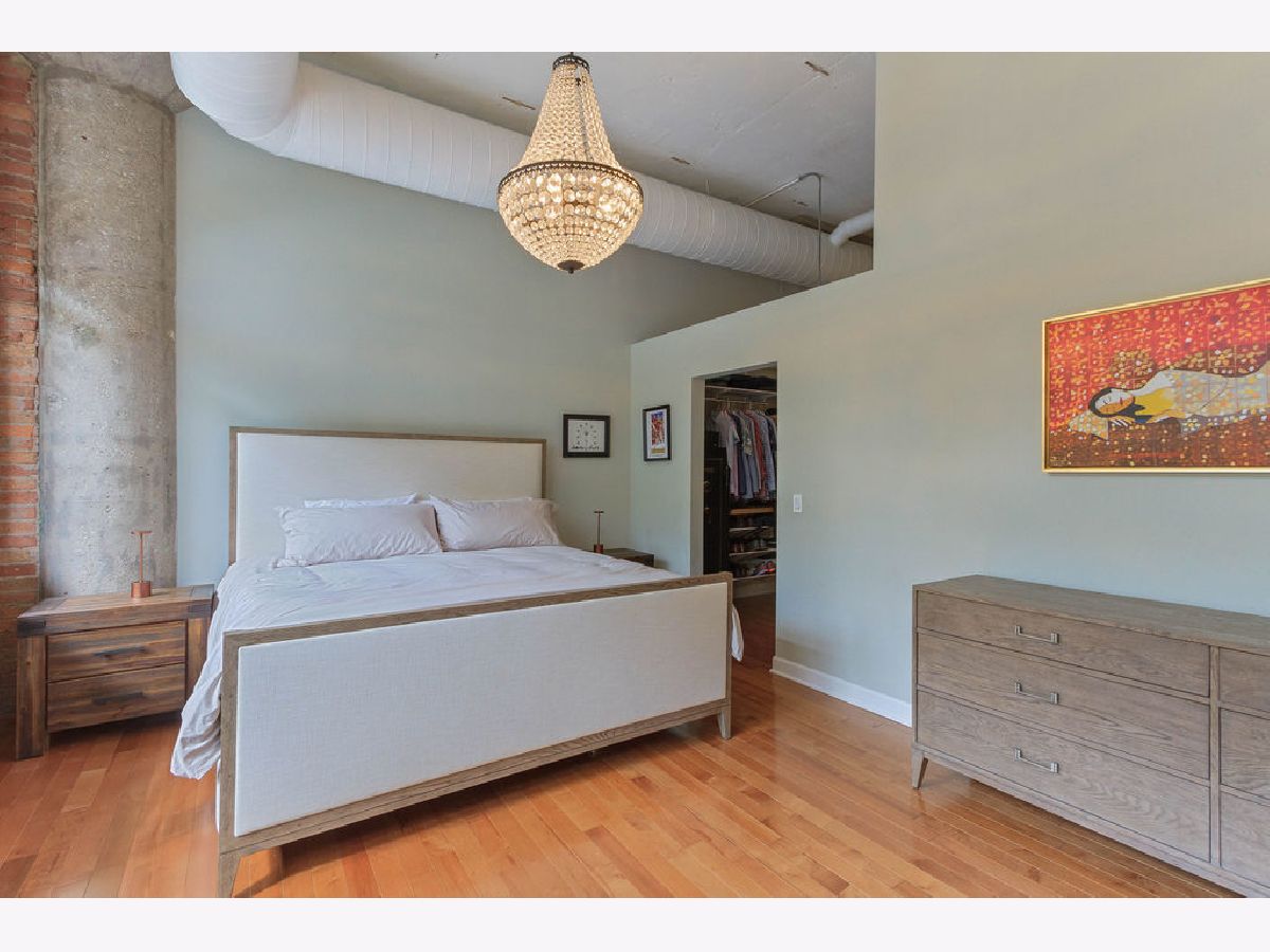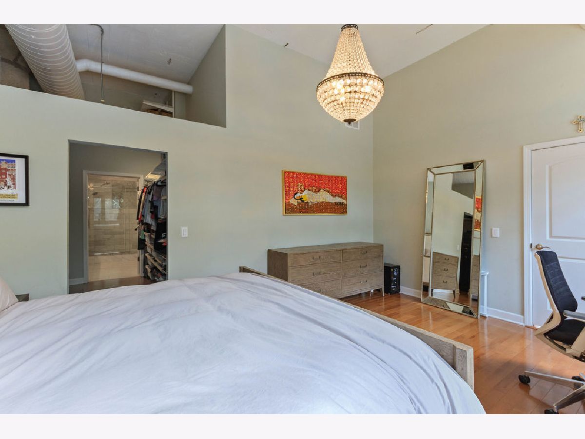 At over 1600 SF, and the largest unit in the building, this rarely available corner 2 bedroom, 2 bathroom condo features a spacious layout for entertaining, 14-foot ceilings decorated with grand designer light fixtures, wrap-around windows with sun drenched rooms and hardwood floors. The home has had a loft conversion that fully enclosed 2 generously sized bedrooms with redesigned and upgraded primary bathroom and appliances. Both bedrooms feature oversized walk-in closets and large windows. Exposed brickwork, concrete pillars and unique street light fixture in the 2nd bedroom give this home an urban loft look while the recent renovations provide it a cozy and warm home feel.The unit is complete with a living room fireplace, in-unit laundry, gracious foyer and bonus storage cage in the basement. Two assigned adjacent parking spaces are included in an attached, first-level heated garage. Access to private park next to unit. Steps to Skinner West, Skinner park, dog parks, and the heart of the West Loop. Enjoy all that West Loop has to offer! Don't wait contact us for a showing today!