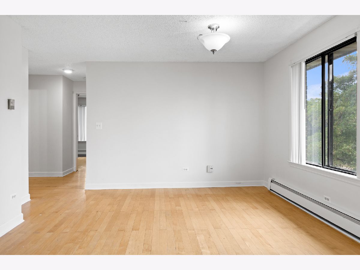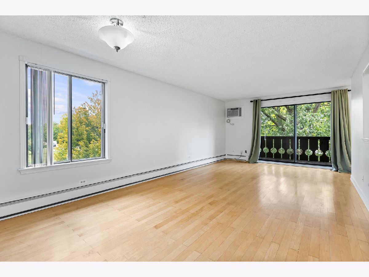 Top-Floor End Unit with Park Views! This bright and spacious 3rd-floor end unit offers incredible natural light with windows on three sides. Features include an updated kitchen with extended countertops, a large living room, in-unit washer and dryer, hardwood floors, newer A/C, newer interior and closet doors with organizers, crown moldings, newer medicine cabinets, and a huge balcony overlooking the park - perfect for relaxing or entertaining. Enjoy two exterior parking spaces, park access, walking trails, and a vibrant, active lifestyle just minutes from shopping, dining, and Hawthorne Mall. Located in a great school district, this building also offers a pool, and assessments include heat, gas, and water. Rentals allowed - don't miss this rare opportunity! Association does not allow HWFLRS in any unit above the 1st floor. RULE NOW being enforced. As units come up for sale floors will be required to be covered. Floors in living room and bedrooms will have to be carpeted. Seller to give a credit.