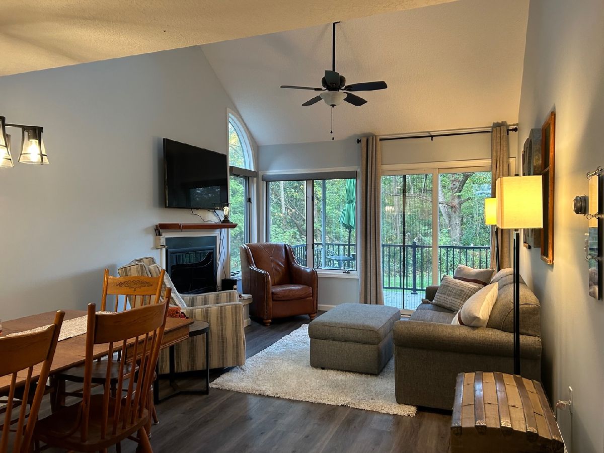 Beautiful 2 bed/2 bath Golf Villa within walking distance to Eagle Ridge Resort and Spa, sandwiched between Holes 16 & 17 of the North Course. Perfect accommodations for your group of 2, 4, or 6! Decorated for comfort and relaxation with an Open Concept. Recent updates include a new storm door, ceiling fans, light fixtures, fireplace doors, an electric fireplace,2 skylights, and a Patio Door is on order. Most intriguing elements include the towering cathedral ceilings with new skylights, offering lots of light, a large loft area for reading, office or "me time"; a very peaceful composite deck to be one with nature and the kitchen with quartz counters and stainless appliances. There is even a stackable washer/dryer. This unit is offered furnished, included in sale price to be transferred on a separate Bill of Sale. High Speed Fiber internet available. Come discover all that the Galena Territory has to offer: 4 golf courses, 220 acre lake, great fishing, hiking trails, 2 swimming pools, fitness center, game room and so much more. Covenants and Restrictions apply. Annual HOA fee is $1360. Spring Creek Condo Assoc fee is $270/month.