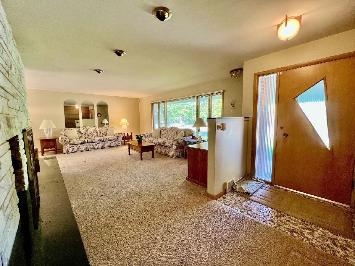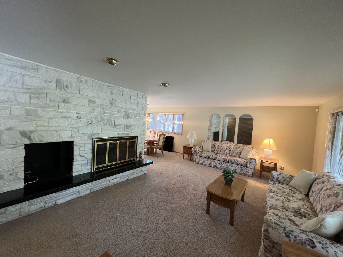 Custom built 1967 mid-century gem. First time ever on the market!! Includes one-of-a-kind, custom built white marble fireplace with black marble hearth on main level. much attention to detail in this beautiful home. 3 bedrooms plus 1 in the basement. 2 baths on the first floor plus additional large family room with built in bar, 1/2 bath, bedroom with walk-in closet, extra large storage/laundry room in the basement. Gorgeous additional brick fireplace in the basement. Nice kitchen with oak cabinets and space for a table. Hardwood under most carpet. Pretty yard with large patio. One of the baths was remodeled. Nice concrete stamped driveway. Move in and enjoy this beautiful home with a perfect walk to Metra/town location. Fremd highschool, Plum Grove Junior High and Stuart Paddock school district! Roof under 10 years old-Furnace-HW heater 2011-A/C 2012. Lot dimensions are approximate.