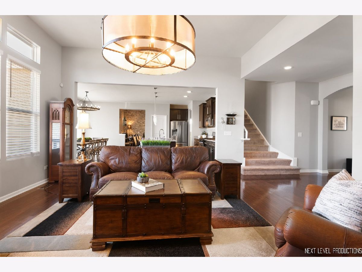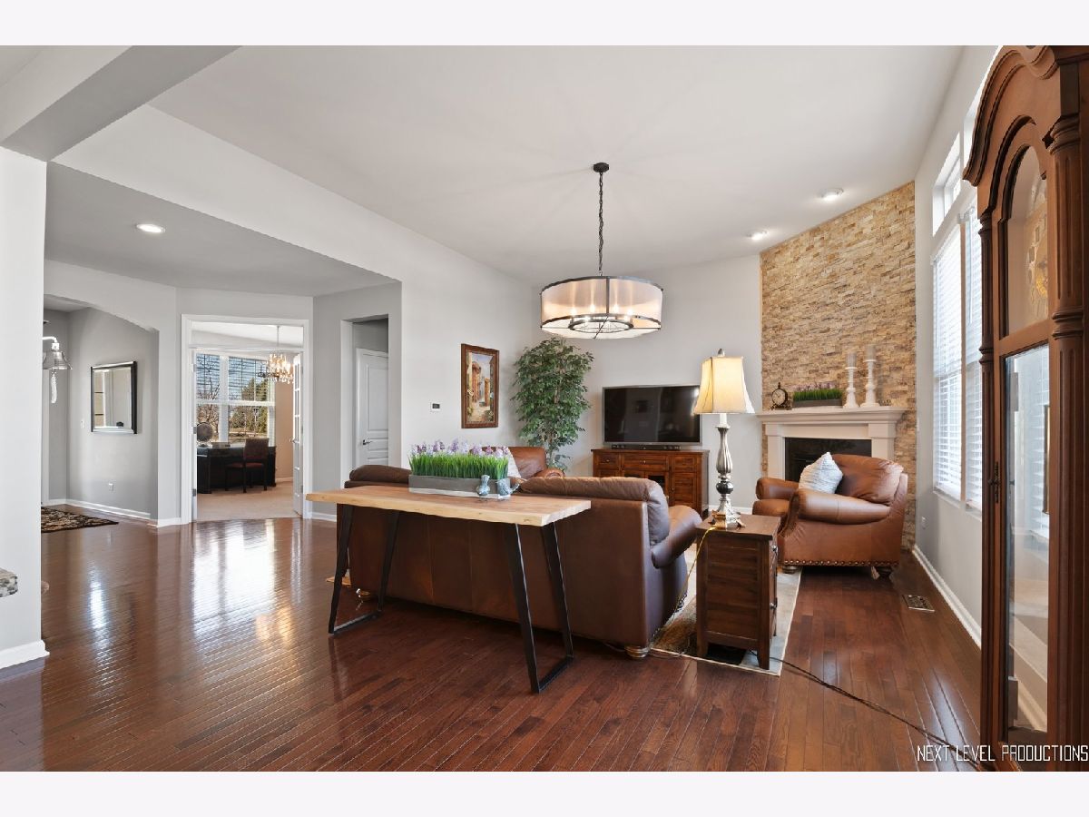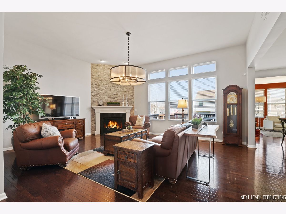 You will love the Space, the Open Floorpan and the Beautiful Finishes. This highly sought after Austin Model is known for its dynamic floorpan with high ceilings, a large kitchen, a huge island, lots of counter and cabinet space, a home office center and a 1st floor den. This home features many many upgrades including granite, staggered cabinets w/crown molding, hardwood floors throughout the main level, white trim package, floor-to-ceiling stone fireplace, Sunroom, deep-dig lookout basement (partially finished), and 3 car insulated garage. The gorgeous landscaping is about to "Spring" to life. Upstairs are 4 large Bedrooms plus a bonus Loft. This home has been well maintained, gently lived in, just waiting for you to make it your new home. Located in east Oswego's popular Prescott Mill Community, convent to schools, shopping and transportation routes plus just a block from the community park, a great neighborhood.