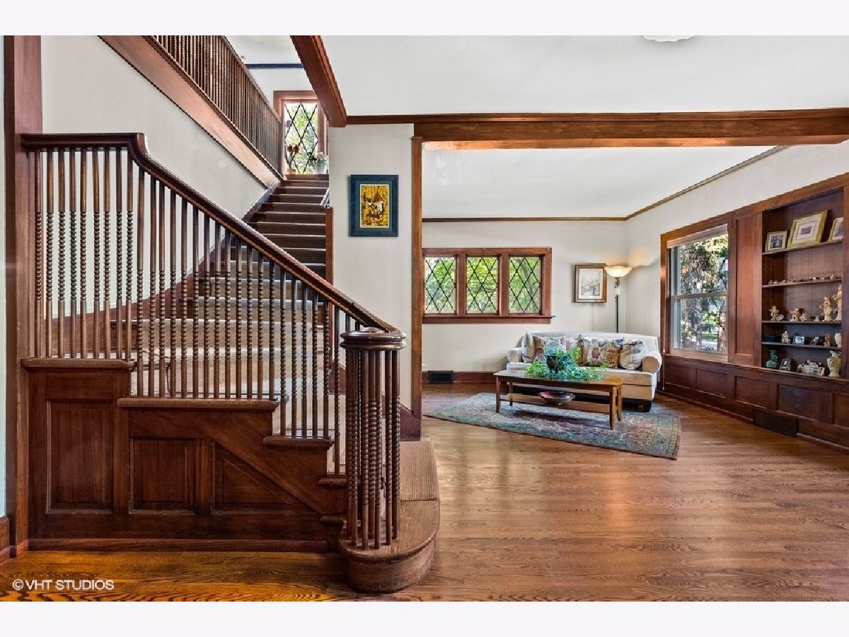 Make this spectacular Evanston home your legacy with all the right improvements already made including new roof, windows, heating and cooling systems, lighting and more! Set on an oversized lot in the heart of the Historic District steps to Dewey School and a short walk to downtown Evanston! Just move in and enjoy this large home perfect for family gatherings, multi-generational living, guests, entertaining and even weddings! This home has beautiful architectural features and ambiance with spacious rooms filled with sunlight from the abundant windows plus wonderful flow from the well thought out floor plan. Gorgeous living room with beamed ceiling and gas log fireplace and new can lighting. Large elegant dining room easily seats 16 guests and has the diamond pattern paned glass windows seen throughout the home. The kitchen is the heart of the house with plenty of room to cook and gather with adjoining breakfast room and includes white cabinets, granite counters, Viking stove, quiet Miele dishwasher, large refrigerator, loads of storage and counter space. The favorite room is the family room/porch with wood burning fireplace and adjoining screened porch that walks out to the newly paved stone patio terrace. Fenced sprawling lawn and gardens with room for volleyball, soccer, lounging in the hammock plus there's a gate out the back into the Dewey play yard! The second floor boasts a large primary suite with fireplace, newly renovated dressing room/closet and bath with large glass shower. 4 more bedrooms plus an office and 2 more full baths by Waterworks complete this level. The 3rd floor has 2 charming bedrooms and a fully renovated bath. One bedroom has a fireplace and one with window seats and both with pretty dormered paned windows perfect for teens or guests! Basement is great for storage and mechanicals, plus an exercise room. There is also a coach house with exercise room, sitting room/office, full bath and loft bedroom. Convenient driveway and garage parking for 2 cars. Electric outlet outside for RV or electric car charging. Easy walk to Northwestern University, the lakefront and vibrant downtown Evanston restaurants, coffee shops, shopping and the Davis St train lines. This home will please and delight your whole family!