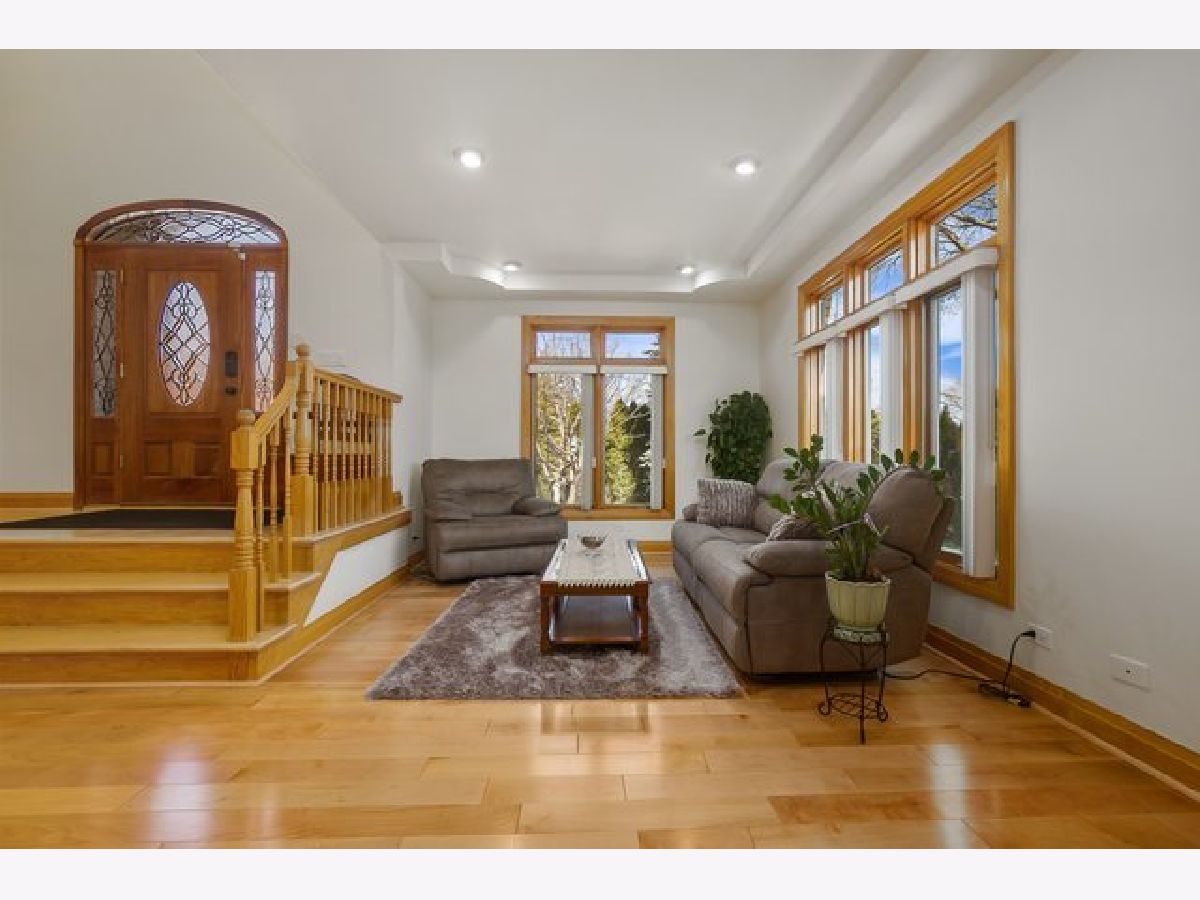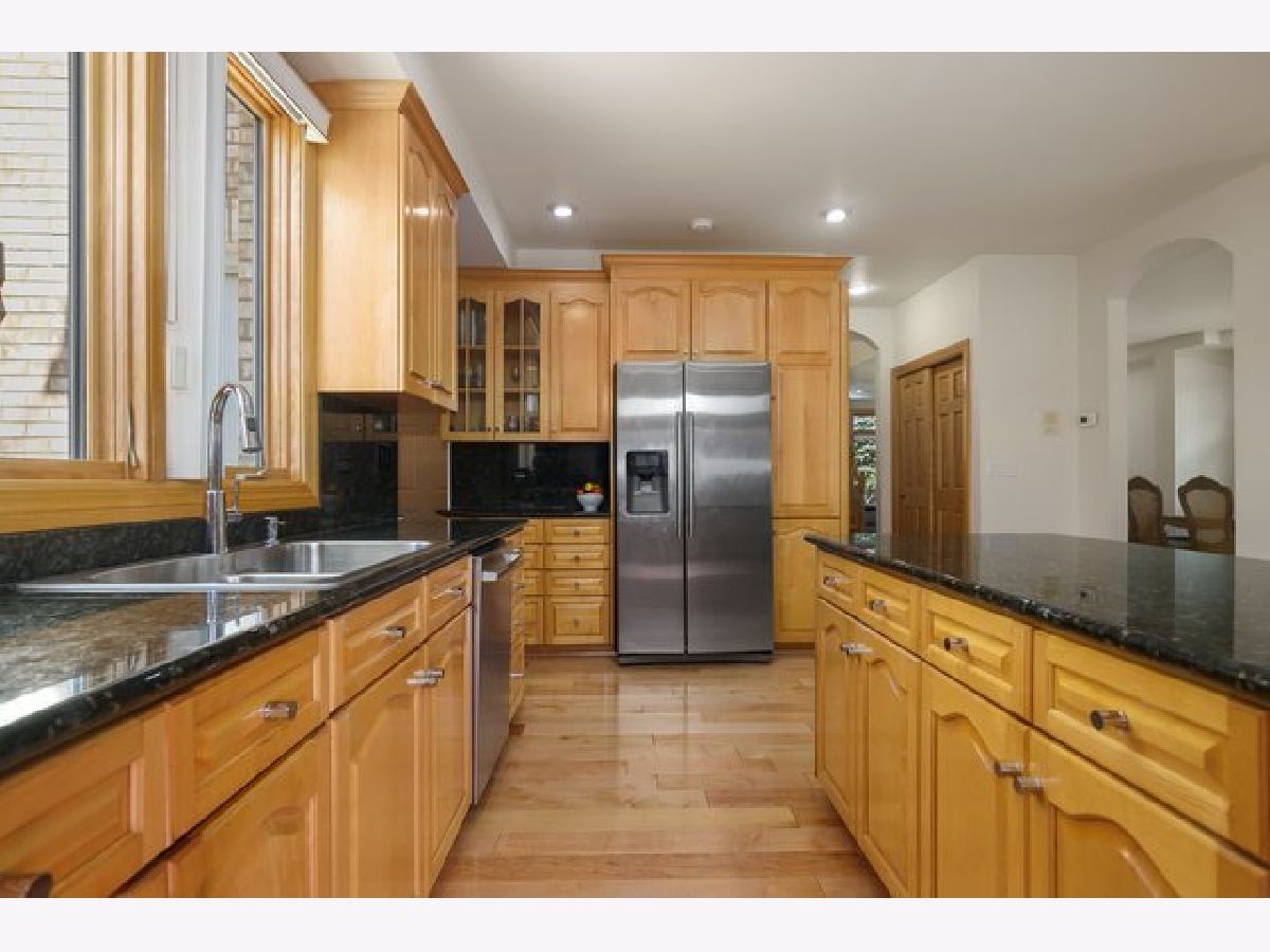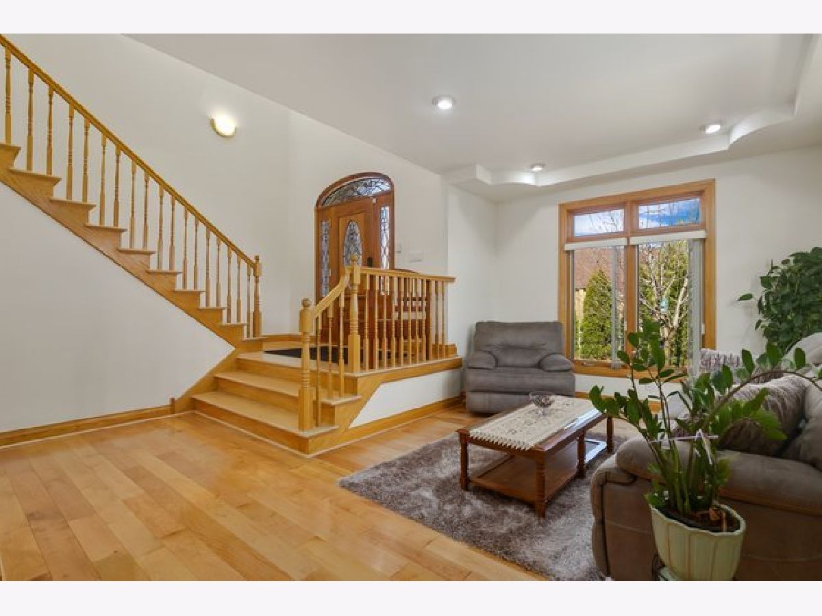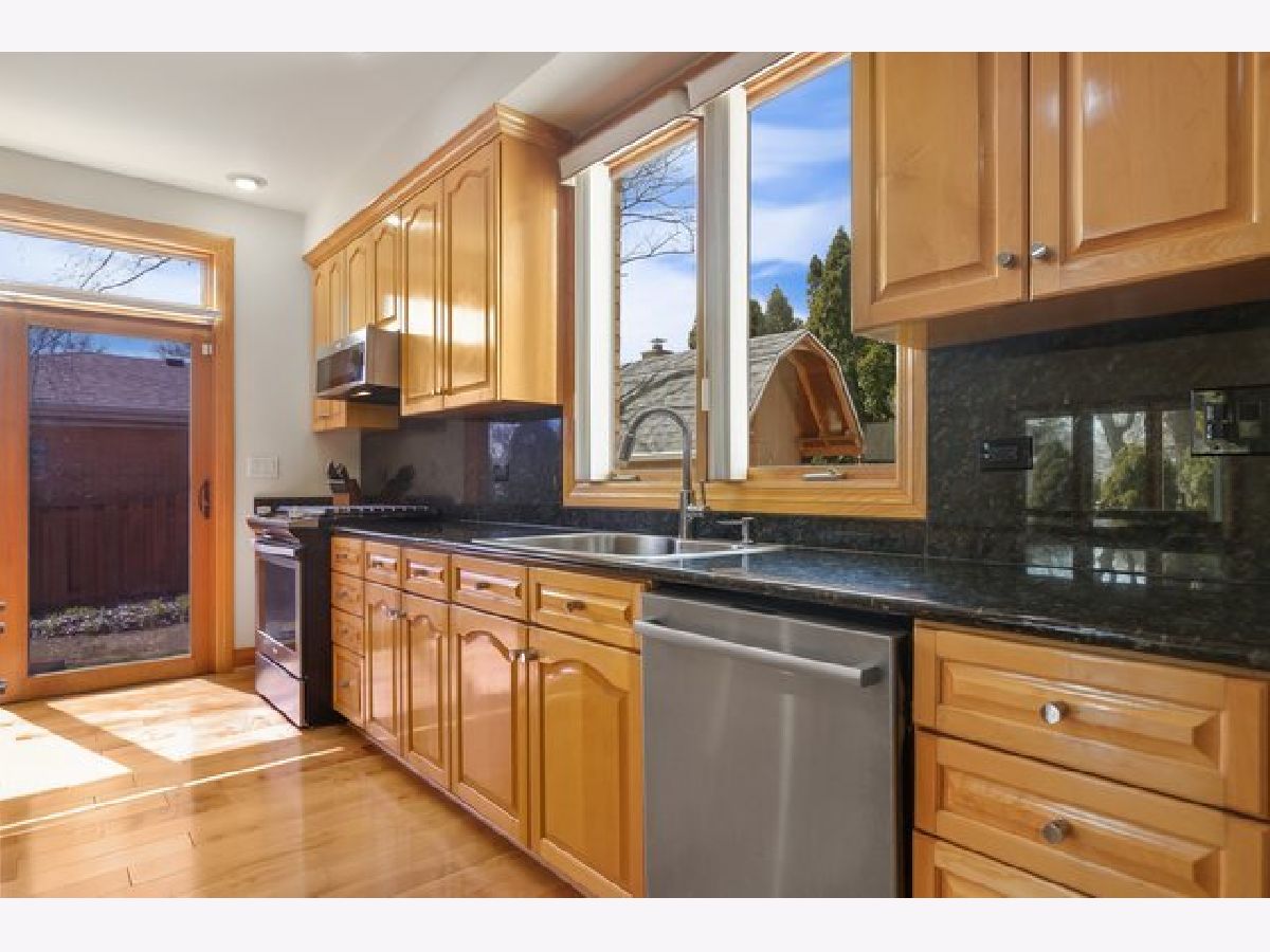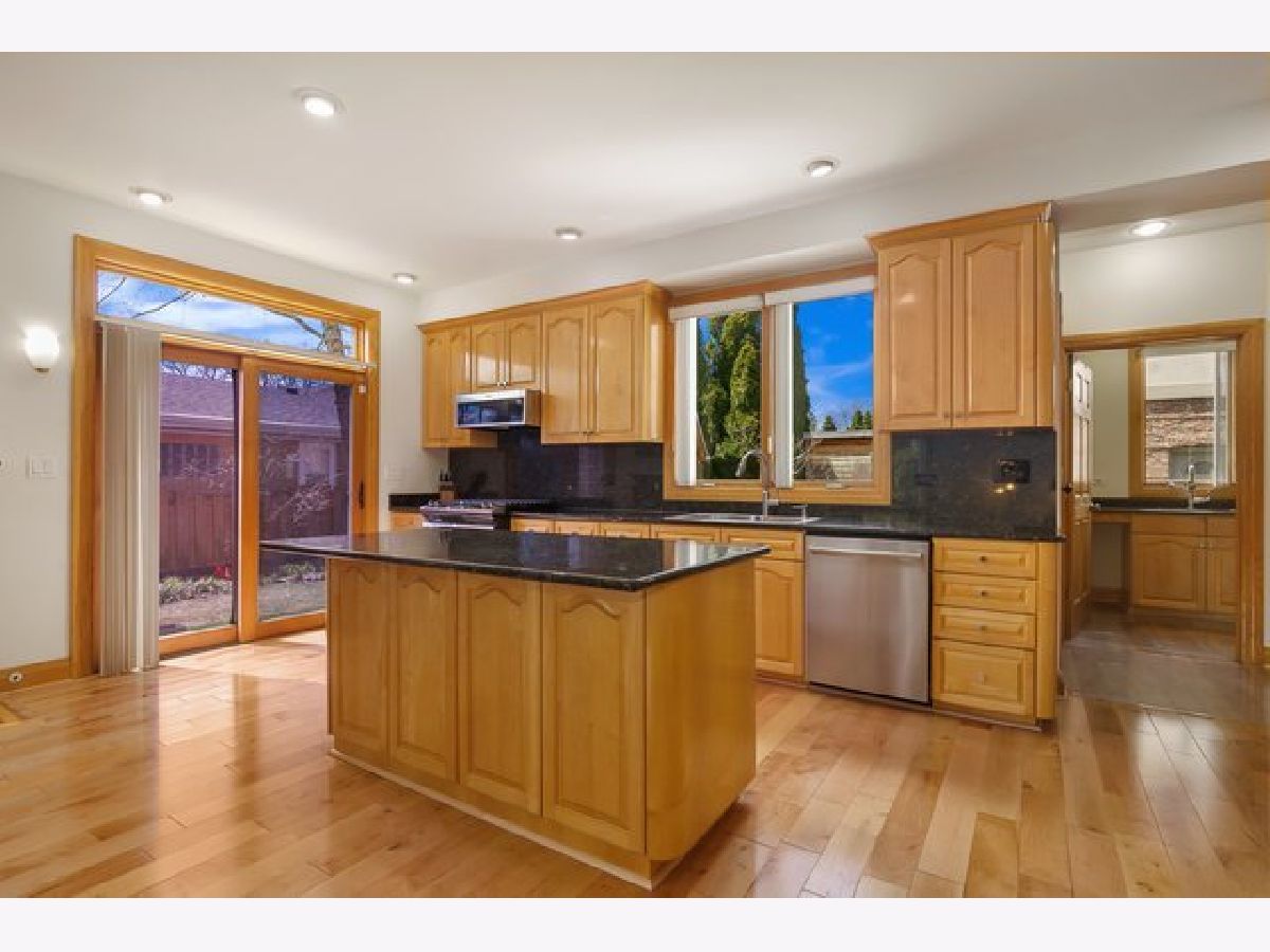 Beautiful and bright all brick home on a corner lot in desirable Park Ridge! Large windows that let in plenty of natural light and hardwood floors throughout welcome you in to the home. The spacious living room flows in to the dining room making it perfect for entertaining. The open plan family room with vaulted ceilings and gas fire place and kitchen with granite countertops, stainless steel appliances, island with breakfast bar are the heart of the home. Half bath and a huge laundry room with stacked washer & dryer, sink and plenty of cabinet space complete the main floor. Upstairs are four spacious bedrooms all with hardwood floors with rosewood and bloodwood design. The primary suite features vaulted ceilings, two walk in closets and a spacious en suite with dual vanity, separate shower and jacuzzi tub. Finished basement with convenient third full bathroom. Attached 2 car garage with tons of storage and additional stainless steel refrigerator. Fenced in backyard with large patio and storage shed. Double pane windows protect the property from any outside noise. Great Park Ridge location is a commuters dream - blocks to 90, Blue Line, bus stops right across the street and less than ten minutes to O'Hare. Minutes to Cook County Forest Preserve and all the shopping and dining that Rosemont has to offer.