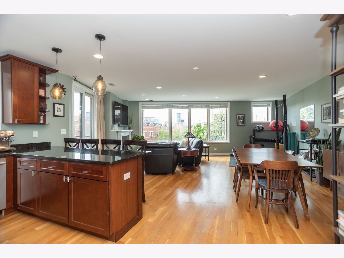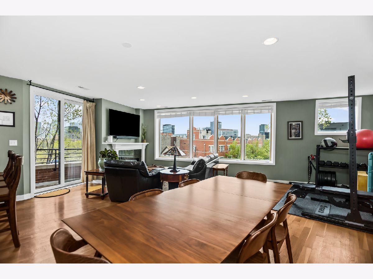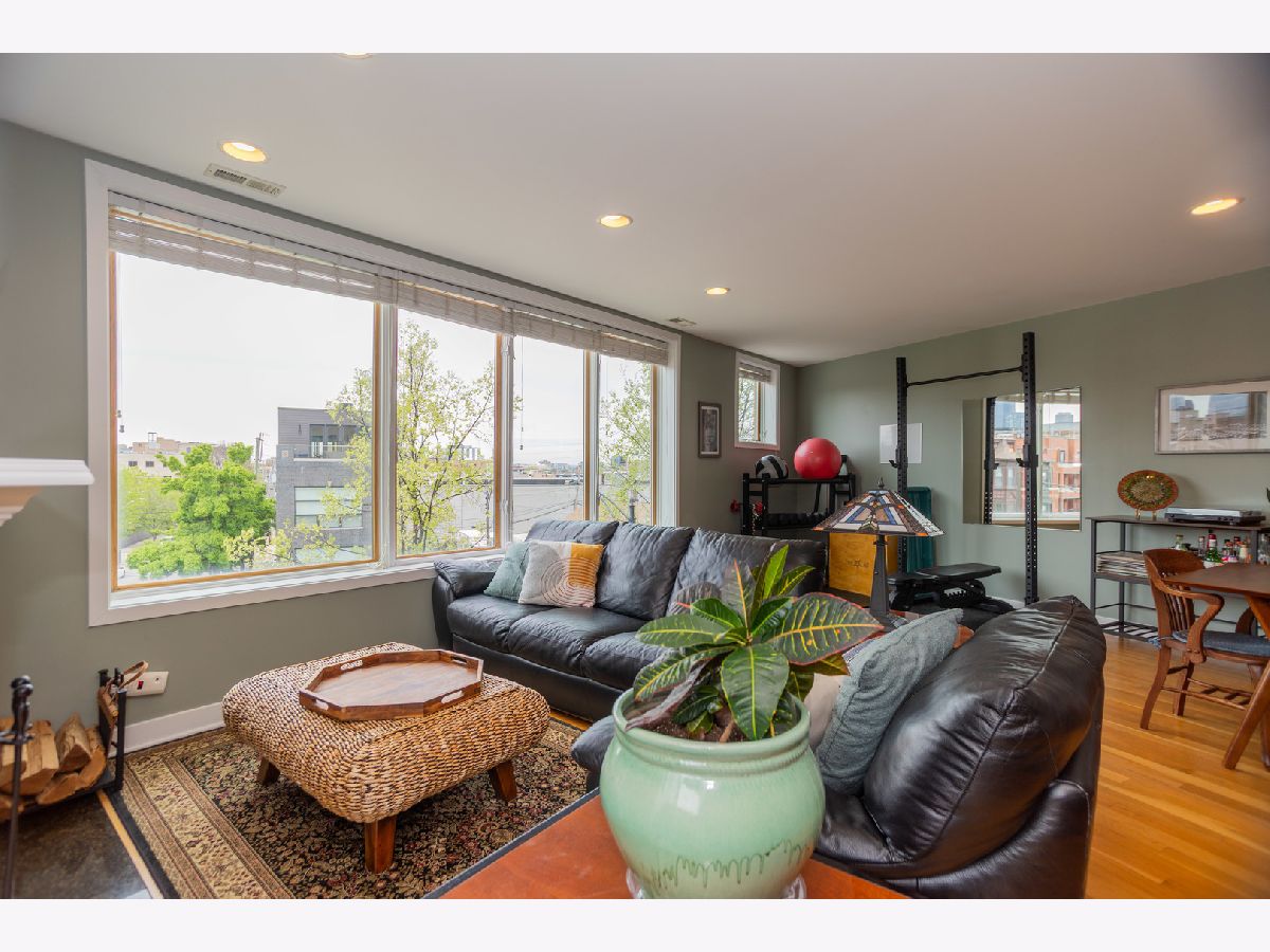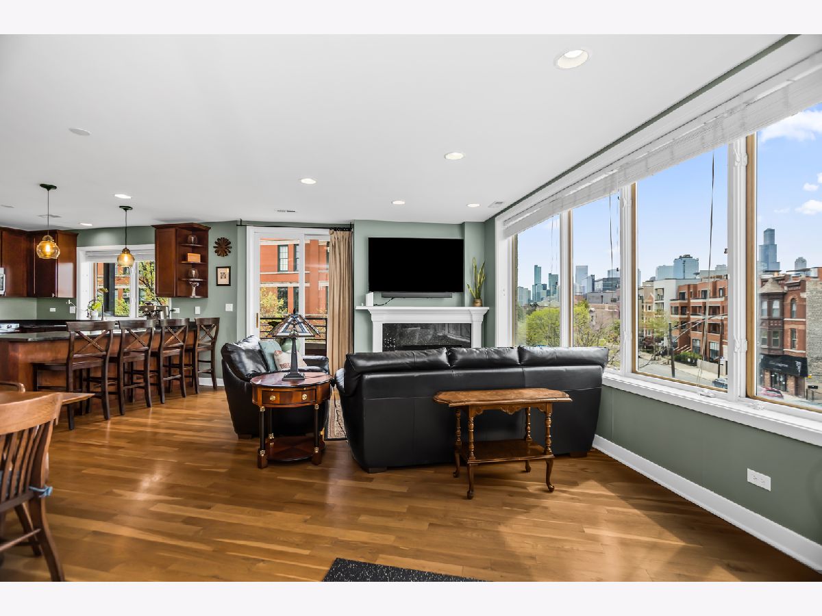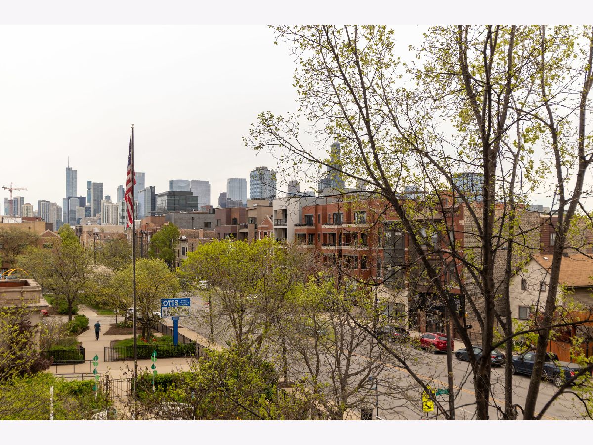 (SEE PROFESSIONAL VIDEO AND MATTERPORT 3D TOUR ATTACHMENTS) Spectacular skyline views greet you the second you step off the direct-access elevator into this gorgeous newer-construction 3rd floor West Town/ Noble Square condo. This is absolutely not the typical cookie cutter 2BR/2Bth layout you've seen a thousand times. Extra-wide great room with gleaming hardwood floors, cozy WBFP and east-facing balcony; beautifully outfitted granite/stainless kitchen with breakfast peninsula; plenty of room for a dining table. Huge windows provide for amazing natural light during the day, and a stellar skyline view at night. Spacious main bedroom with walk-in closet, luxe en-suite bath with whirlpool tub and separate shower, double basin vanity and a private balcony. Great closets in guest bedroom. Large guest bath with linen closet. Numerous home office options in this thoughtfully designed floorplan. Garage parking and additional storage. Super convenient neighborhood full of great dining, shopping and entertainment spots - easy walk to both Fulton Market and Wicker Park hotspots, one block to newly renovated Bickerdike Square Park, easy access to expressways! (EXCLUDE BAR STOOLS, GAS GRILL, HANGING ART GLASS WINDOWS IN MAIN BR)