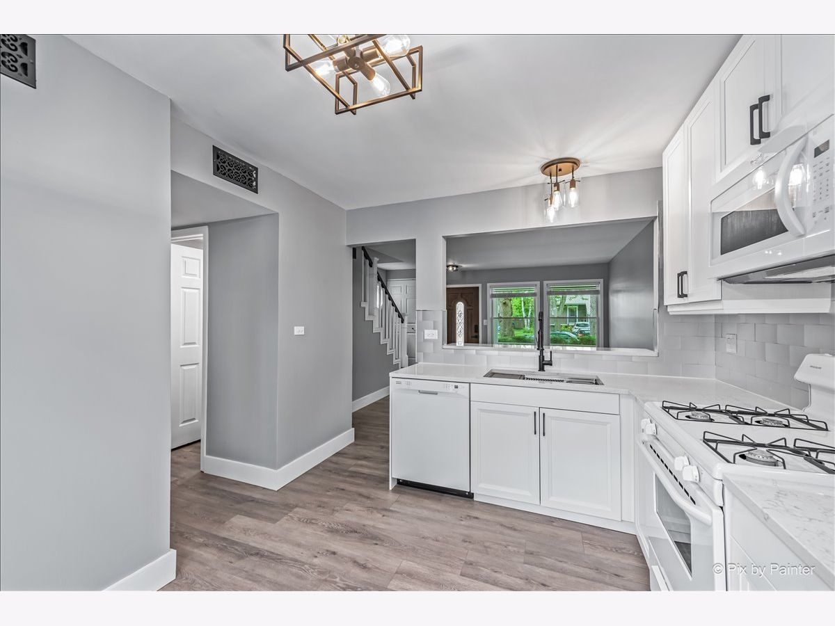 This gorgeous duplex will capture your heart with its stunning features and modern updates. The kitchen has been completely remodeled, boasting brand new white cabinets, quartz countertops, a beautiful backsplash, white appliances, luxury vinyl plank flooring, upgraded lighting, new sink, and stylish black hardware. A large sliding glass door opens to a spacious, fenced yard that features a huge new patio, fresh sod, and meticulously designed landscaping. The expansive living room also showcases luxury vinyl plank flooring, adding to the home's elegant feel. Convenience is enhanced with a first-floor laundry room. Both bathrooms have been tastefully remodeled from top to bottom, exuding contemporary charm. The interior is freshly painted with white doors and trim throughout. A new roof, installed in 2023, ensures peace of mind for years to come. This duplex is immaculate, requiring nothing but for you to move in and enjoy its pristine condition. No home owner's association.