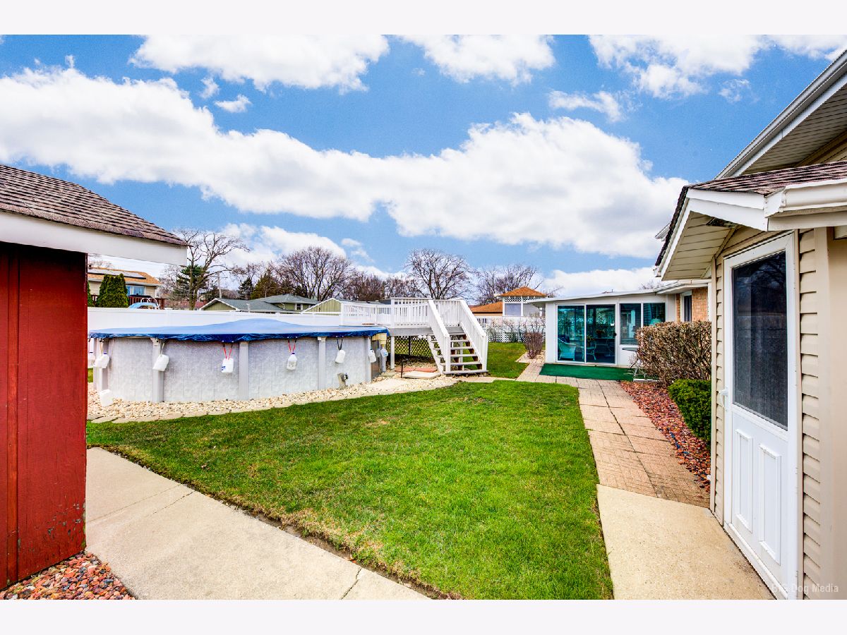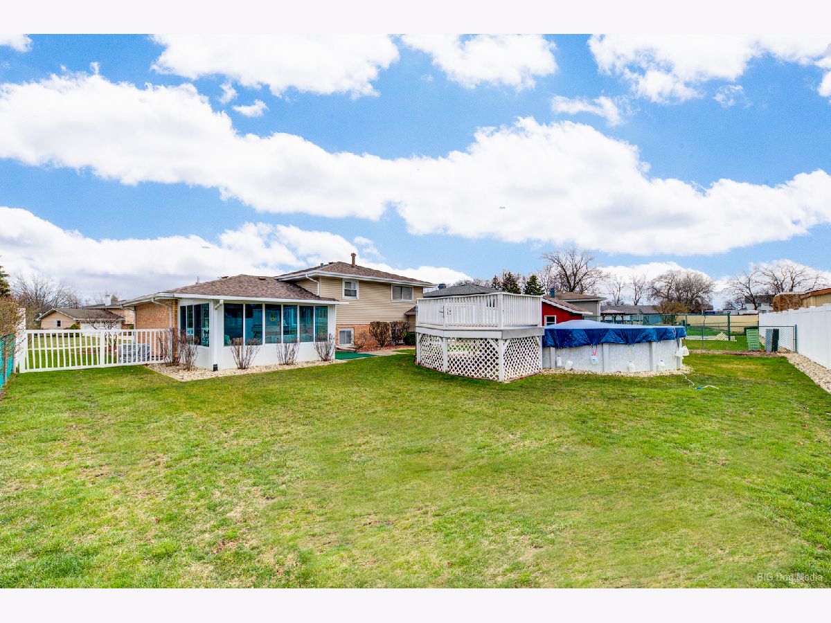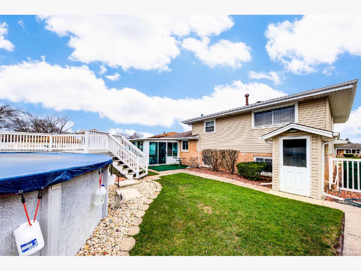 Well taken care of charming home nestled in the heart of Orland Park! This three bedroom home is the perfect mix of cozy and spacious. Light and bright living room features bow window. Formal dining room has sliding door that leads to a gorgeous three season room for relaxing on those spring, summer and fall days overlooking a beautiful fenced in yard and 21 ft above ground heated pool and shed. Eat in kitchen features all appliances. Three nice size bedrooms on upper level and also features a full bath. Master has full wall of closets and ceiling fan. Other two bedrooms are nice size! Lower level features a great family room, laundry room and convenient half bath. Cement crawl for all the holiday extras! Tear off Roof is approx 12 years old and siding and maintenance free soffits are newer. Furnace and C/A are not even 1 year old! All new windows in 2020. Hardwood flooring under living, dining room and all three bedrooms. Close proximity to all conveniences of shopping, schools and train. Move in condition! Home is very clean and well kept!!