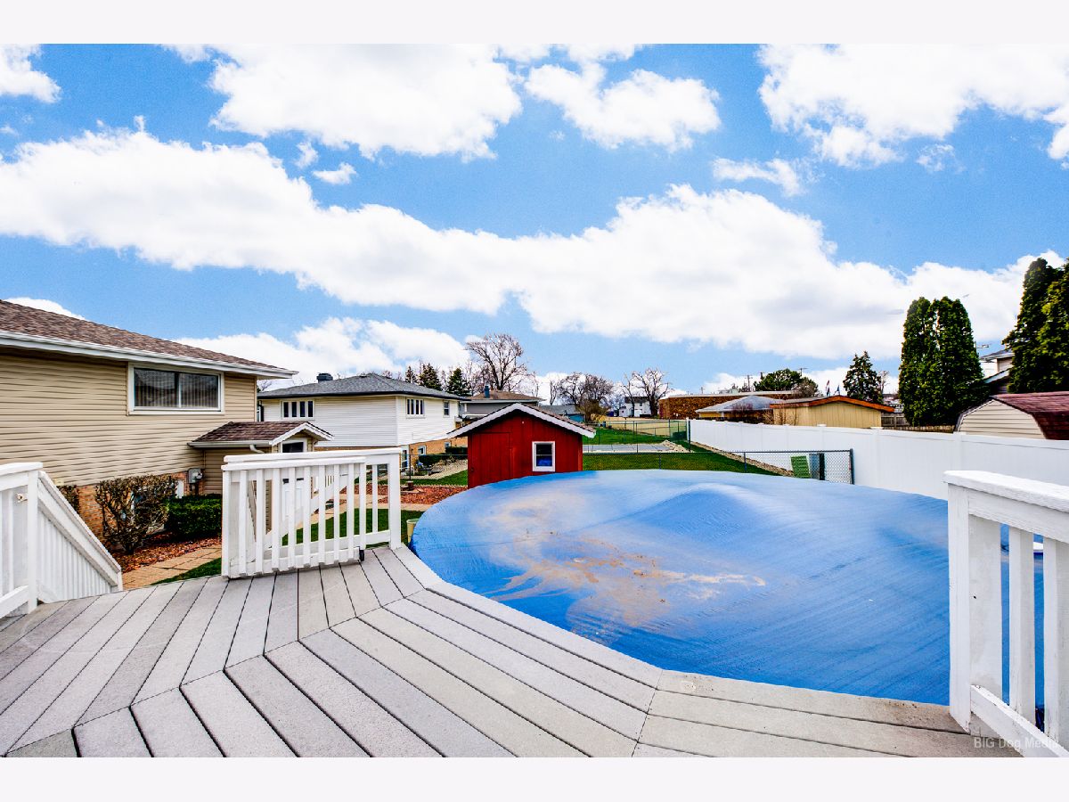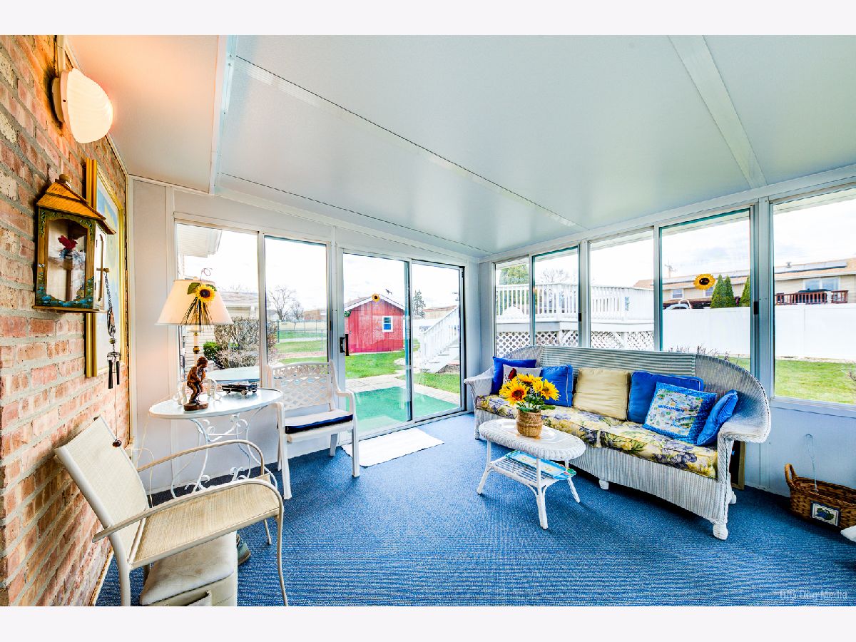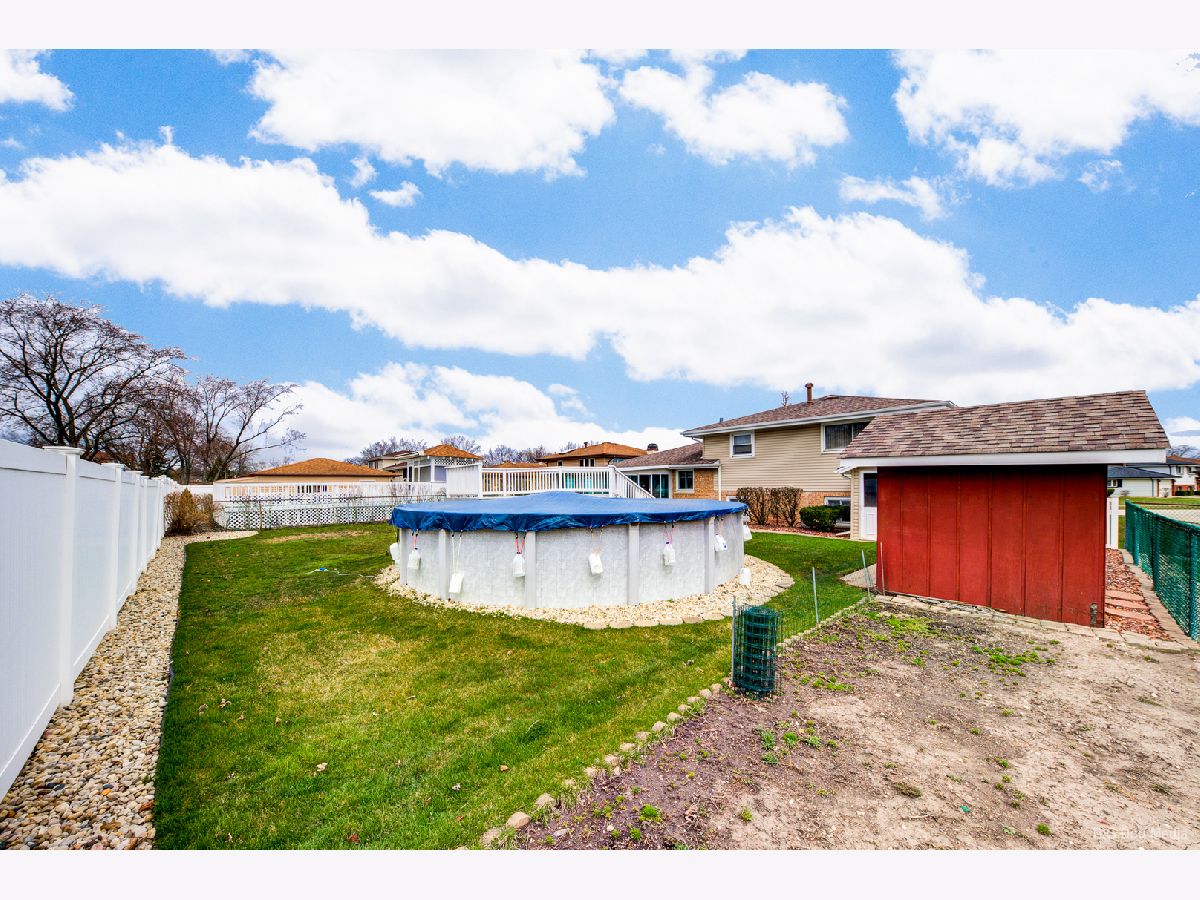 Well taken care of charming home nestled in the heart of Orland Park! This three bedroom home is the perfect mix of cozy and spacious. Light and bright living room features bow window. Formal dining room has sliding door that leads to a gorgeous three season room for relaxing on those spring, summer and fall days overlooking a beautiful fenced in yard and 21 ft above ground heated pool and shed. Eat in kitchen features all appliances. Three nice size bedrooms on upper level and also features a full bath. Master has full wall of closets and ceiling fan. Other two bedrooms are nice size! Lower level features a great family room, laundry room and convenient half bath. Cement crawl for all the holiday extras! Tear off Roof is approx 12 years old and siding and maintenance free soffits are newer. Furnace and C/A are not even 1 year old! All new windows in 2020. Hardwood flooring under living, dining room and all three bedrooms. Close proximity to all conveniences of shopping, schools and train. Move in condition! Home is very clean and well kept!!