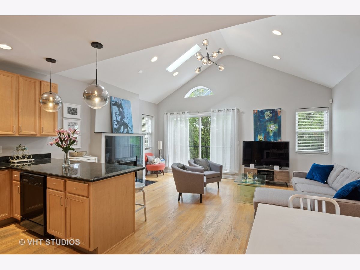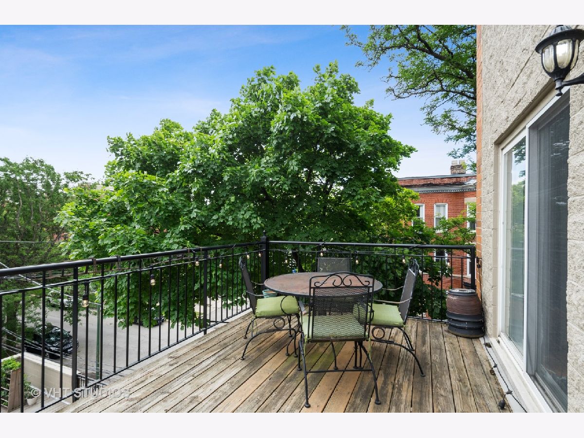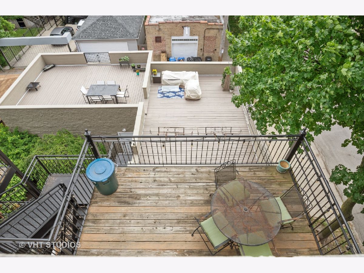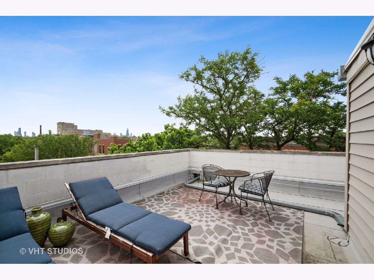 Welcome home to your penthouse! This AMAZING duplex-up penthouse unit boasts an open floor plan drenched with natural sunlight, vaulted ceilings and skylights in the combo living/dining room. Cozy up to your wood burning fireplace, or enjoy some time on your own juliet balcony, rear deck or your rooftop wrap-around terrace with skyline views of the John Hancock and Sears (Willis) Tower. Did we mention there's also massive communal sun-deck at your disposal?!?! And the upper loft is ready for you to make it your own. Your master bedroom has its own private en-suite bathroom with dual vanities while your guests enjoy their own bedroom and separate bath. In-unit laundry is already set up for your convenience. You have an assigned space in a covered garage and room in the driveway for another. And you also get a storage unit! This is a very well-maintained building with nearby access to everything including public transportation, great restaurants, the 606 trail, historic Humboldt Park and everything that Chicago has to offer!