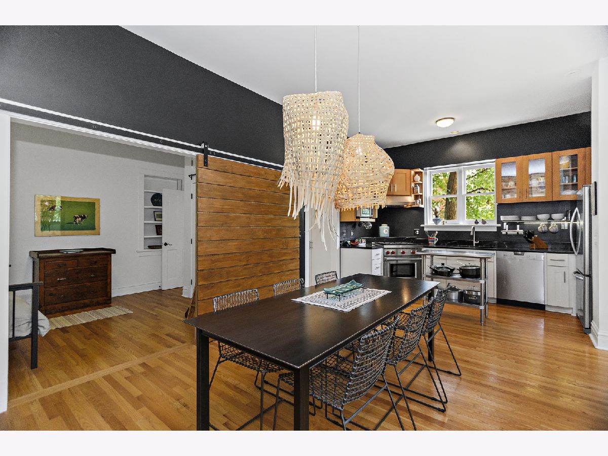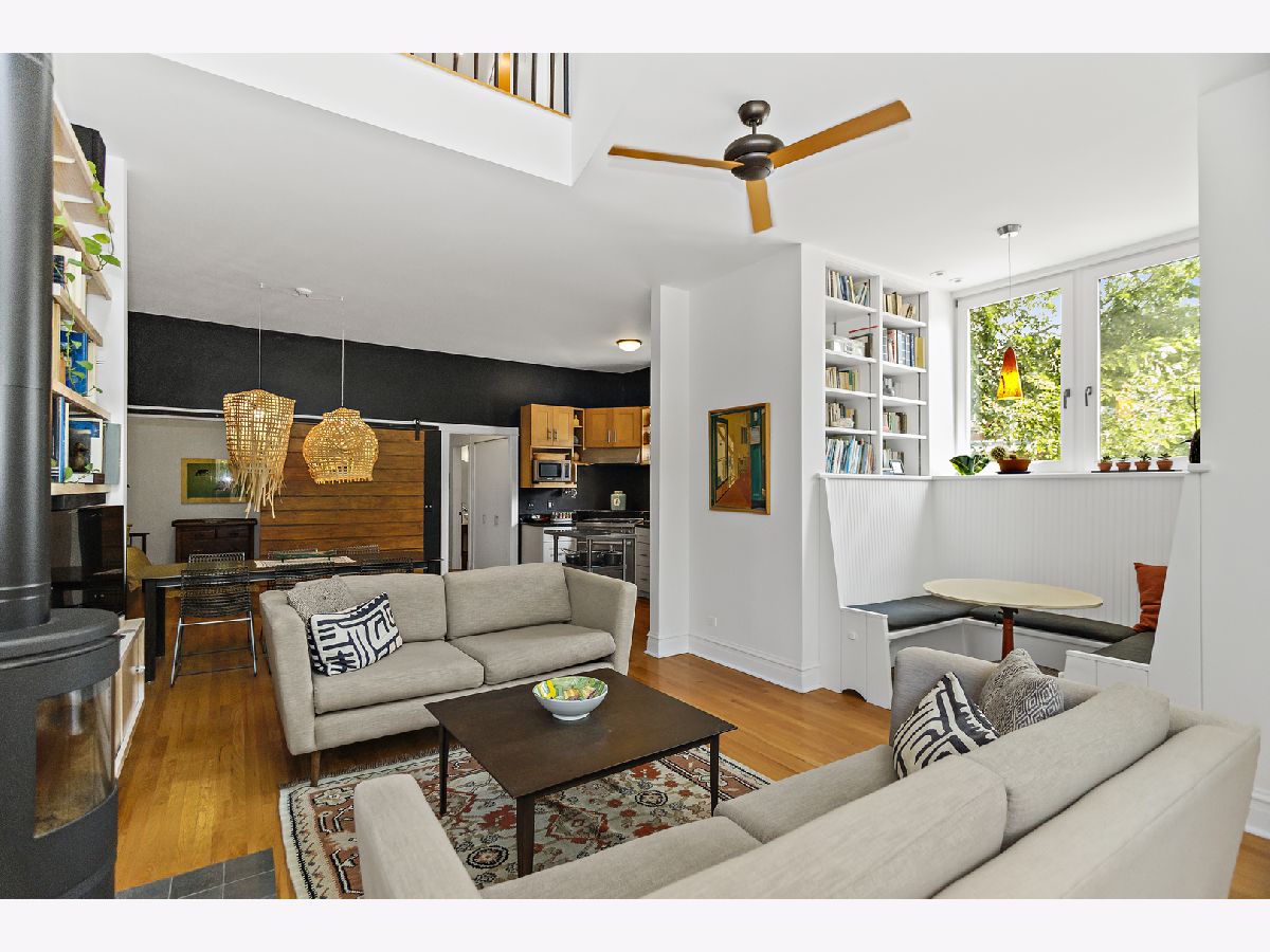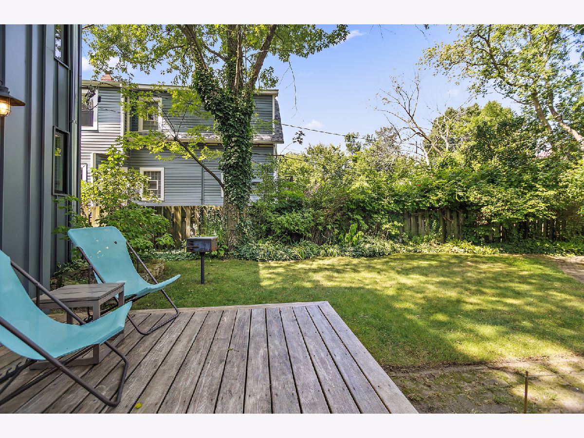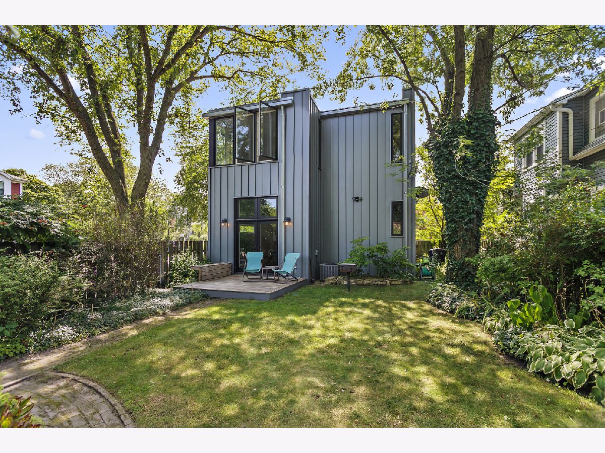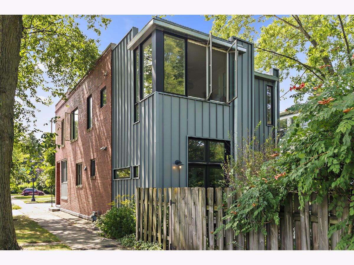 This unassuming corner building sits proudly in the heart of the Evanston Arts District, also known as the West Village. The original early 1900's corner market (Frederick's or Fred's Finer Foods) was transformed into a stunning single-family home by its award-winning architect owners in 2014. The first floor space, with 10' ceilings, allows for a living/dining/kitchen/and table nook, as well as a coveted main floor bedroom and full bath. This bedroom opens to the living space with a sliding barn-style door for maximum flexibility of use. A small addition to the back creates a garden/sitting room and adjacent mud room, with French doors to engage the backyard. The second floor has 8'9" ceilings and restored pine floors. It was developed into a primary bedroom and private bath with a walk-in closet, a second bedroom and full hall bathroom, and a laundry room. In addition you'll find an open study area at the top of the stairs with a built-in desk, and a fabulous north facing office/studio at the back of the house with beautiful, even light overlooking the yard. The opening from the living room to the second floor visually connects the two levels and allows light from the south facing facade to penetrate deep into the living space. A venting skylight adds more light and creates natural ventilation. The basement offers great space for storage and workshop (6'3'' height) and the 2-car brick garage offers additional workshop space as well. Central air, 200 amp electric, new plumbing and electrical, a sump pump, and an extensive list of quality upgrades and finishes will be available. The private fenced yard and lush garden, brick paths, ground-level deck, grill, and beautiful plantings all add to the serene, peaceful setting. This was a labor of love and with retired owners moving out of state, this is a rare and special opportunity for a new owner to enjoy this thriving community and neighborhood. Live within blocks of transportation, restaurants, groceries, Washington elementary, and the Robert Crown community center, library and play fields. Only a short distance to downtown Evanston, Northwestern and the Lake front.