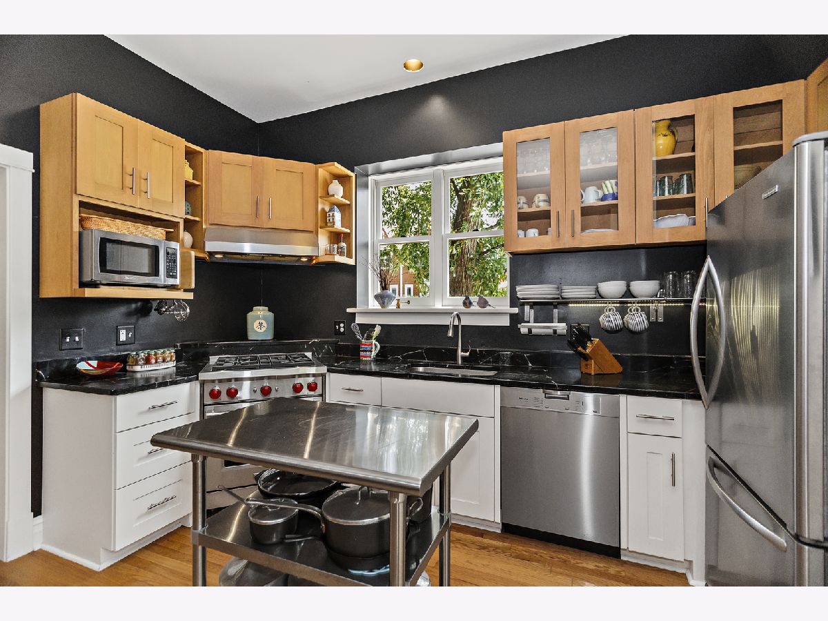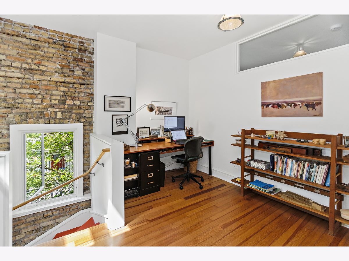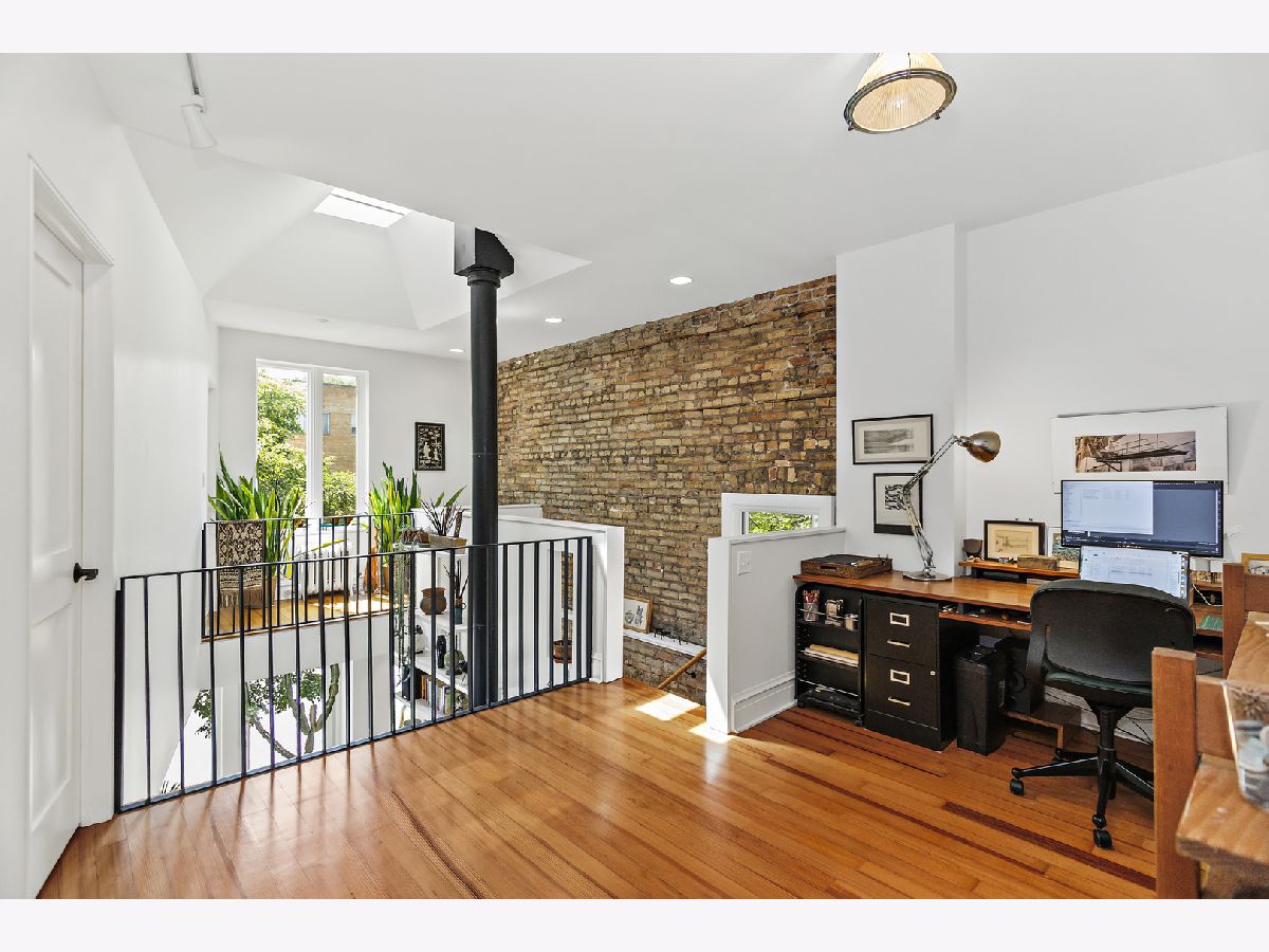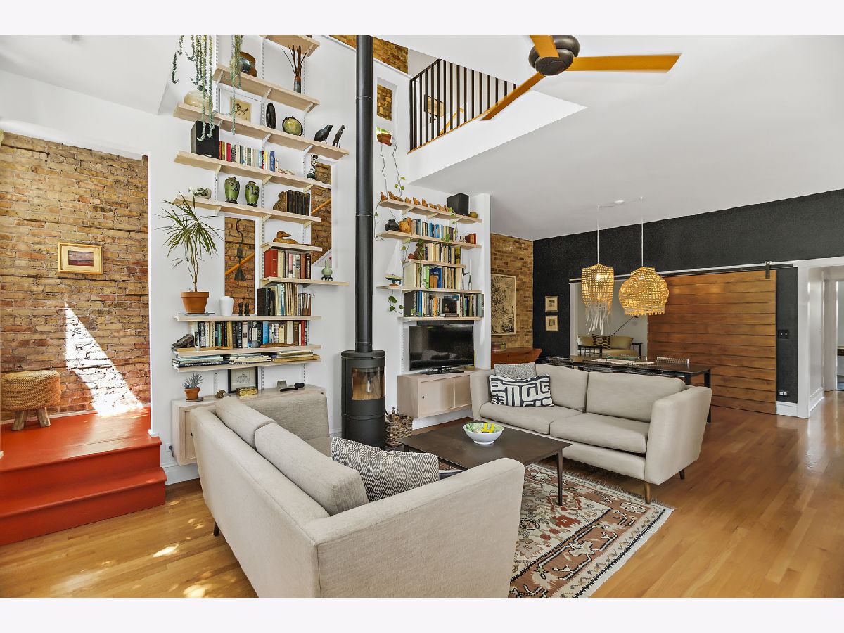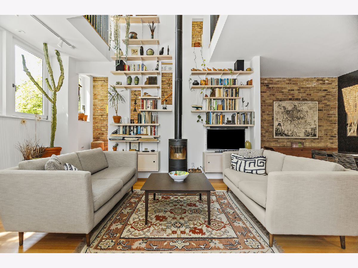 This unassuming corner building sits proudly in the heart of the Evanston Arts District, also known as the West Village. The original early 1900's corner market (Frederick's or Fred's Finer Foods) was transformed into a stunning single-family home by its award-winning architect owners in 2014. The first floor space, with 10' ceilings, allows for a living/dining/kitchen/and table nook, as well as a coveted main floor bedroom and full bath. This bedroom opens to the living space with a sliding barn-style door for maximum flexibility of use. A small addition to the back creates a garden/sitting room and adjacent mud room, with French doors to engage the backyard. The second floor has 8'9" ceilings and restored pine floors. It was developed into a primary bedroom and private bath with a walk-in closet, a second bedroom and full hall bathroom, and a laundry room. In addition you'll find an open study area at the top of the stairs with a built-in desk, and a fabulous north facing office/studio at the back of the house with beautiful, even light overlooking the yard. The opening from the living room to the second floor visually connects the two levels and allows light from the south facing facade to penetrate deep into the living space. A venting skylight adds more light and creates natural ventilation. The basement offers great space for storage and workshop (6'3'' height) and the 2-car brick garage offers additional workshop space as well. Central air, 200 amp electric, new plumbing and electrical, a sump pump, and an extensive list of quality upgrades and finishes will be available. The private fenced yard and lush garden, brick paths, ground-level deck, grill, and beautiful plantings all add to the serene, peaceful setting. This was a labor of love and with retired owners moving out of state, this is a rare and special opportunity for a new owner to enjoy this thriving community and neighborhood. Live within blocks of transportation, restaurants, groceries, Washington elementary, and the Robert Crown community center, library and play fields. Only a short distance to downtown Evanston, Northwestern and the Lake front.