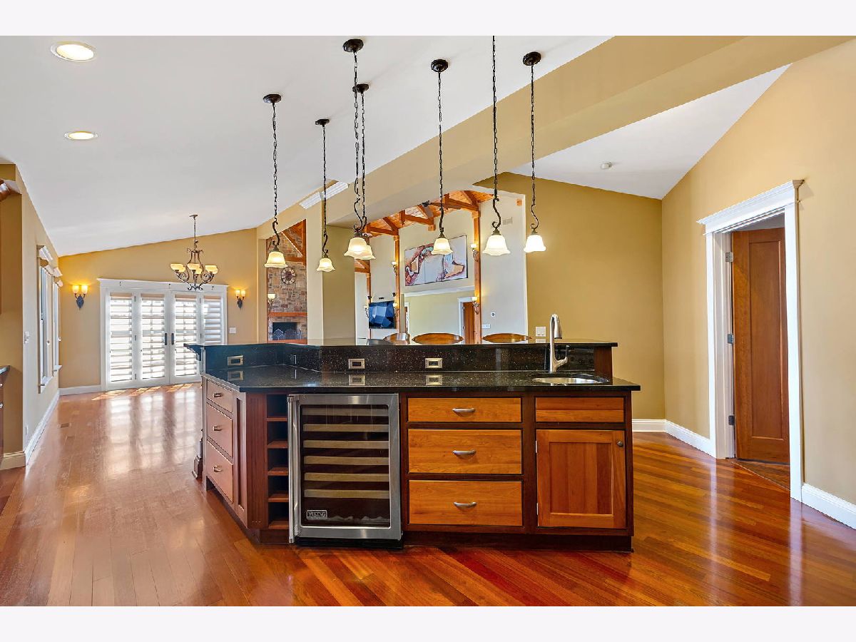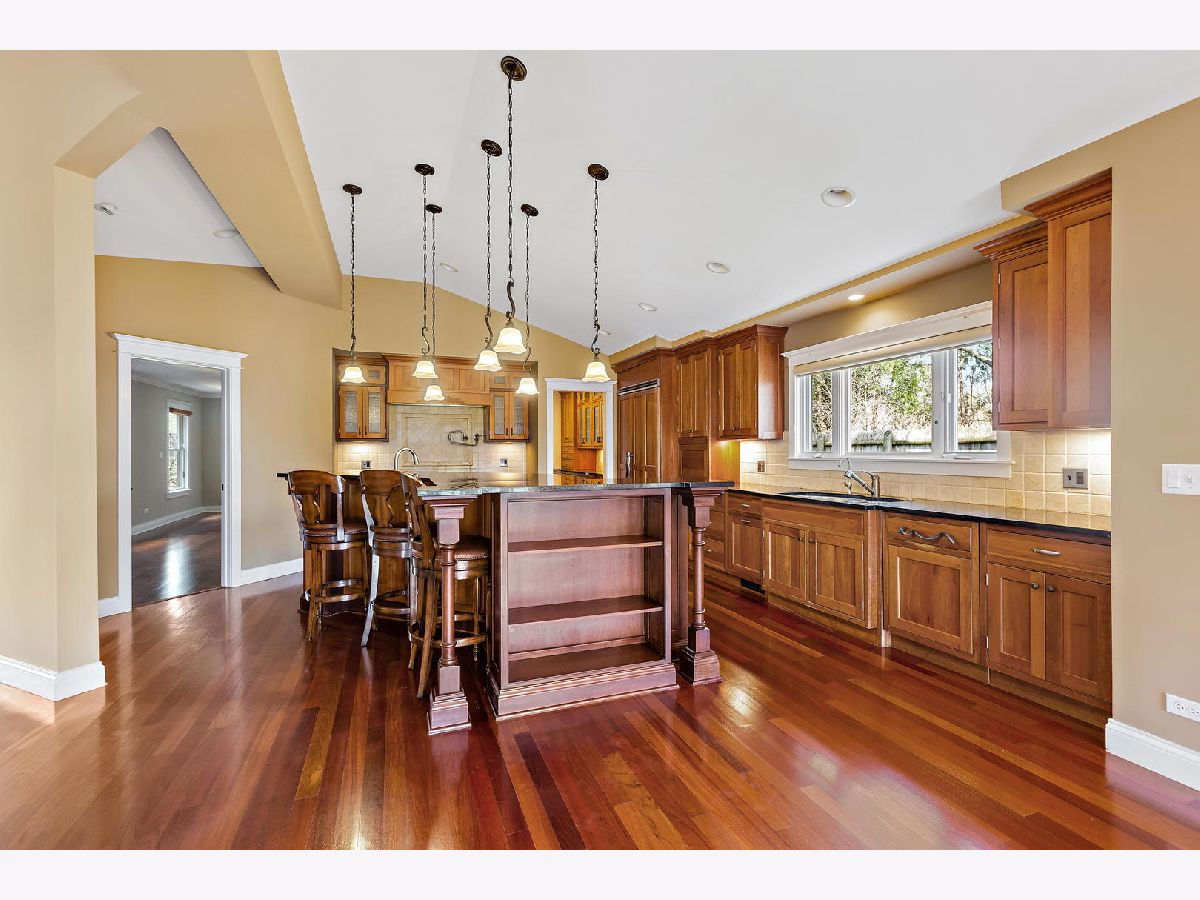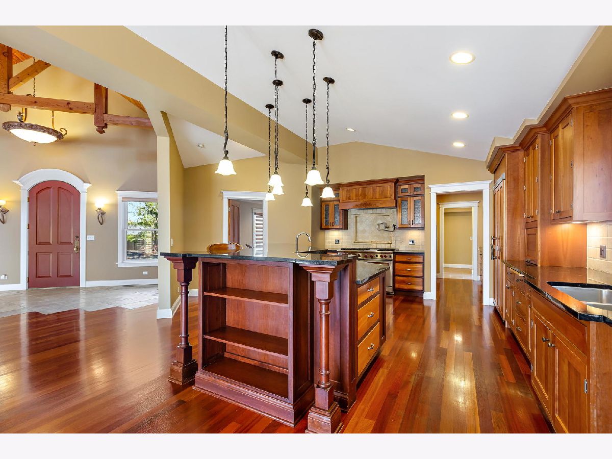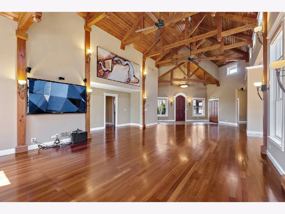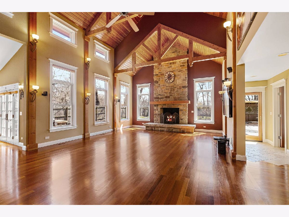 Craftsmanship and quality abound this custom ranch. Set way back on an acre, this North facing home also features an inground pool and enough garage spaces for 6 cars. 2 story great room with exposed wood ceiling and beams and the floor to ceiling stone fireplace will capture your heart. It is there that you will fall in love. Open to high end kitchen with Wolf stove, spaghetti pot faucet, wine fridge, Miele dishwasher, Sub Zero fridge and handmade craftsman cabinetry. Master wing is one one side of the house for privacy. Large master with a vaulted ceiling, walk out to the pool & hot tub, a walk-in closet with a dressing area and a spa like bath. Heated shower floor and a hot water recirculating system, never run out! Den/office not included in bedroom count. Custom blinds throughout and most are remote controlled. Huge and finished loft area above the 4 (tandem) car garage. Heated and window air unit. 2nd detached 2 car garage as well. Backyard is completely fenced with a fenced in dog run. Inground pool & diving board, pergola with a cover and hot tub just steps away. Extensive landscaping and perennials and an herb garden. Sure to delight any gardener. Easy access to highway and tollway, minutes to downtown yet feels like you are a million miles away in your own private retreat.