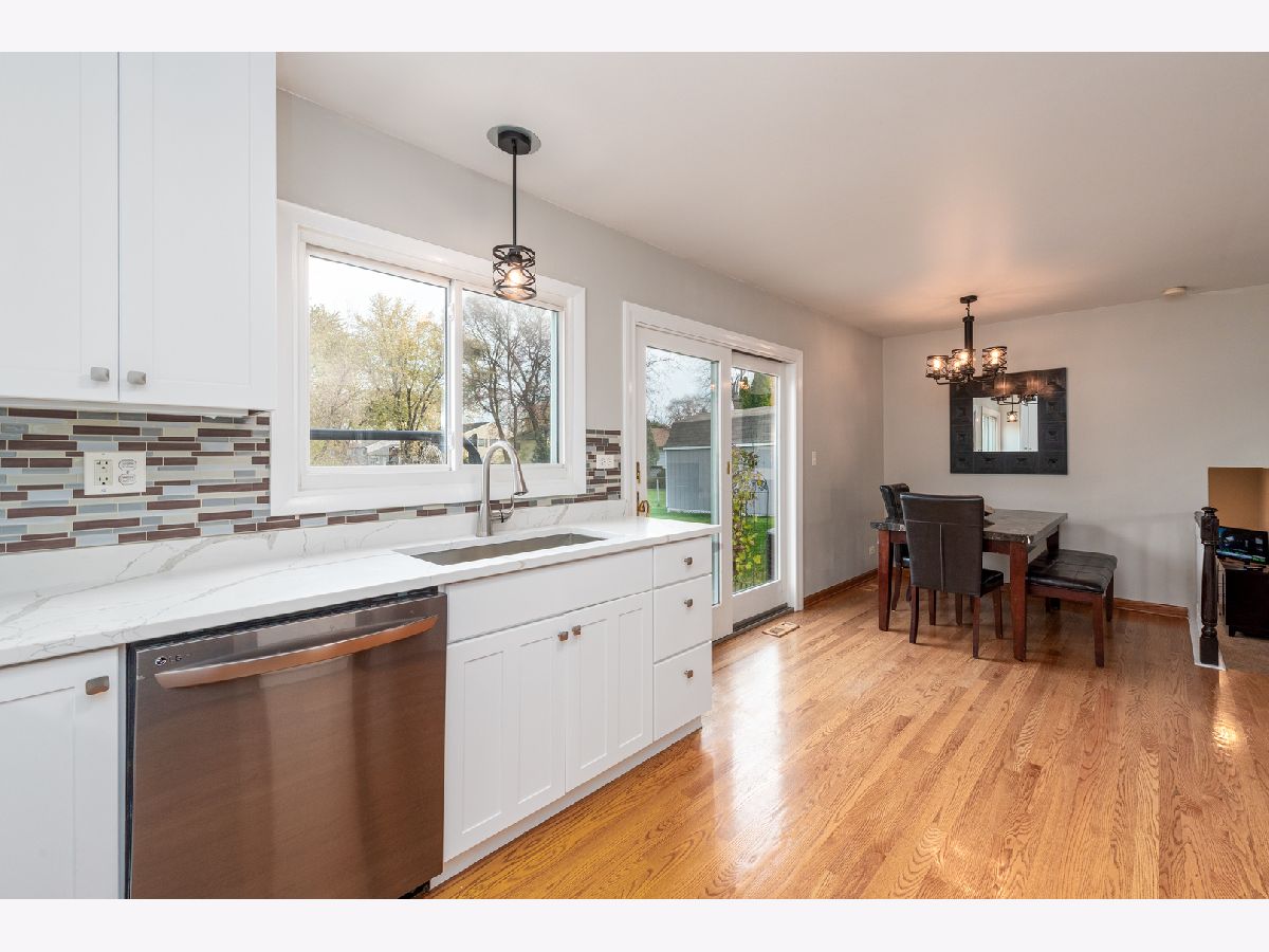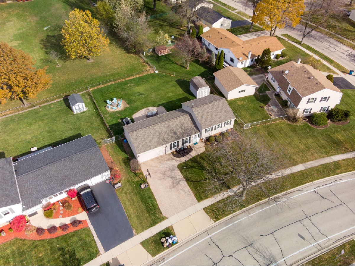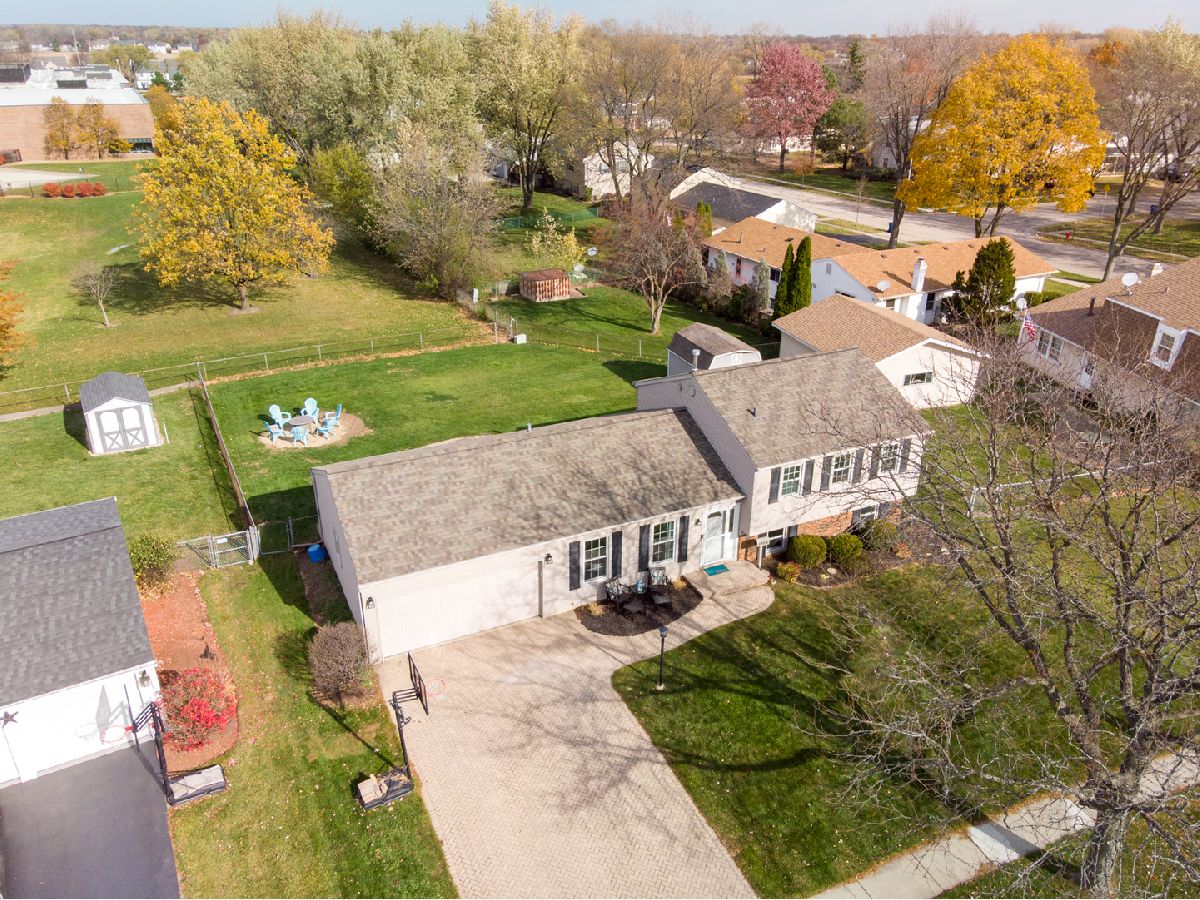 Start your next chapter here! Your family will fall in love with this charming, split-level home in the desirable Sheffield Park subdivision with 4 bedrooms, 1.5 baths, 2-car attached garage and steps away from great parks and Hoover Math and Science Academy. Walk into the comfortable living room with beautiful, vaulted ceilings and large windows that provide great natural light. The updated, eat-in kitchen with white cabinets, new LG appliances, hardwood floors and modern light fixtures is great for entertaining and family meals. On the second floor you will be wowed by the master bedroom w/ custom built closets by Closets By Design, as well as 2 additional bedrooms and a full bath. The finished lower level (with an additional 270 sf of living space) has a spacious family room with recessed lighting, lots of natural light, a fourth bedroom, half bath and laundry room. Enjoy the openness of the back patio with beautiful brick pavers and a large fenced backyard--perfect for outdoor gatherings and backs to a field and park with the park district building. Large shed for storage too. NEW UPDATES: Updated kitchen cabinets, new LG appliances, new garage door, new lighting fixtures throughout the interior and exterior. Roof (2015), Mastershield gutter protection (2014) and crawl space perma-sealed (2014). Great location near restaurants, shopping, parks, forest preserves, golf courses, transportation and so much more! Don't miss out!!!