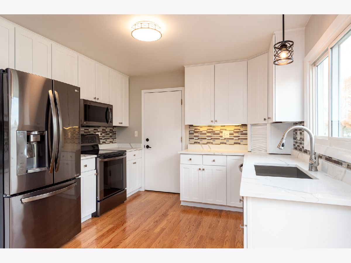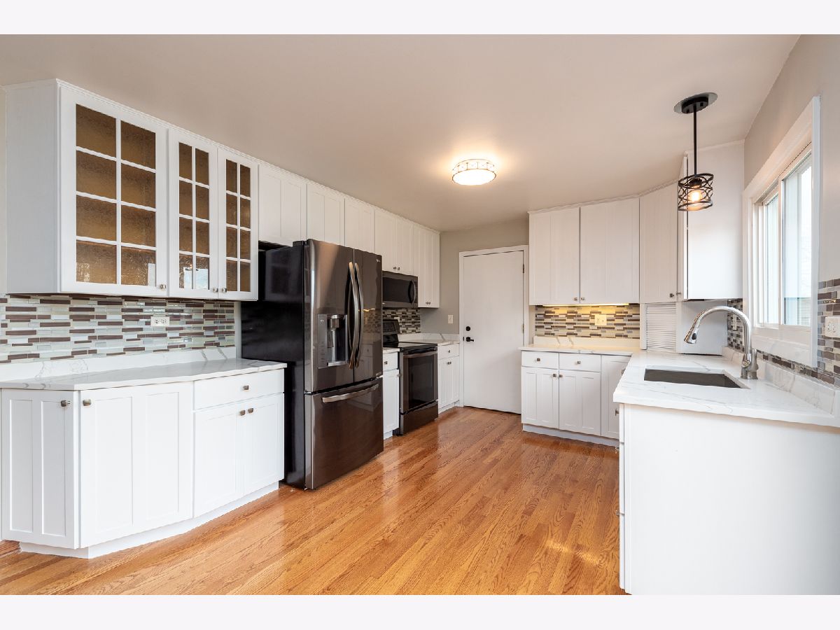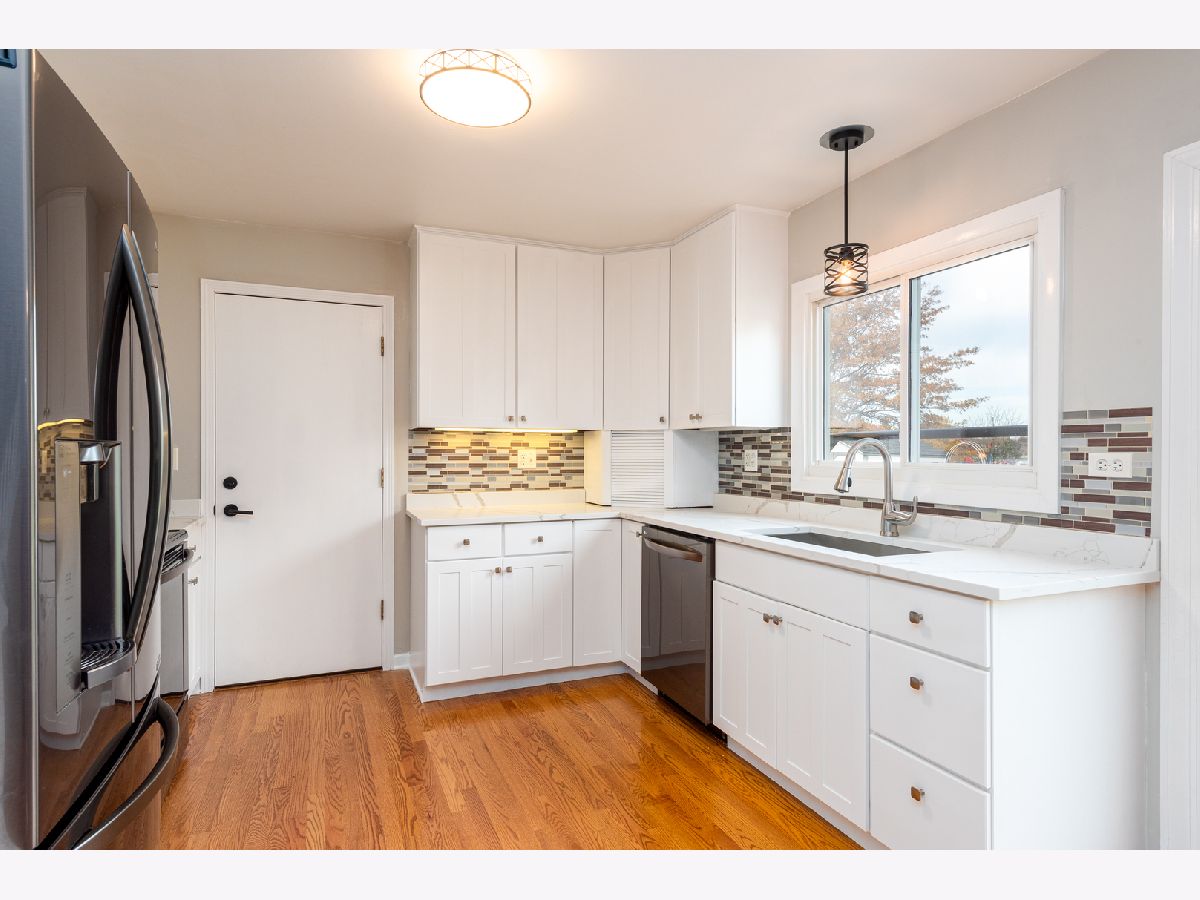 Start your next chapter here! Your family will fall in love with this charming, split-level home in the desirable Sheffield Park subdivision with 4 bedrooms, 1.5 baths, 2-car attached garage and steps away from great parks and Hoover Math and Science Academy. Walk into the comfortable living room with beautiful, vaulted ceilings and large windows that provide great natural light. The updated, eat-in kitchen with white cabinets, new LG appliances, hardwood floors and modern light fixtures is great for entertaining and family meals. On the second floor you will be wowed by the master bedroom w/ custom built closets by Closets By Design, as well as 2 additional bedrooms and a full bath. The finished lower level (with an additional 270 sf of living space) has a spacious family room with recessed lighting, lots of natural light, a fourth bedroom, half bath and laundry room. Enjoy the openness of the back patio with beautiful brick pavers and a large fenced backyard--perfect for outdoor gatherings and backs to a field and park with the park district building. Large shed for storage too. NEW UPDATES: Updated kitchen cabinets, new LG appliances, new garage door, new lighting fixtures throughout the interior and exterior. Roof (2015), Mastershield gutter protection (2014) and crawl space perma-sealed (2014). Great location near restaurants, shopping, parks, forest preserves, golf courses, transportation and so much more! Don't miss out!!!