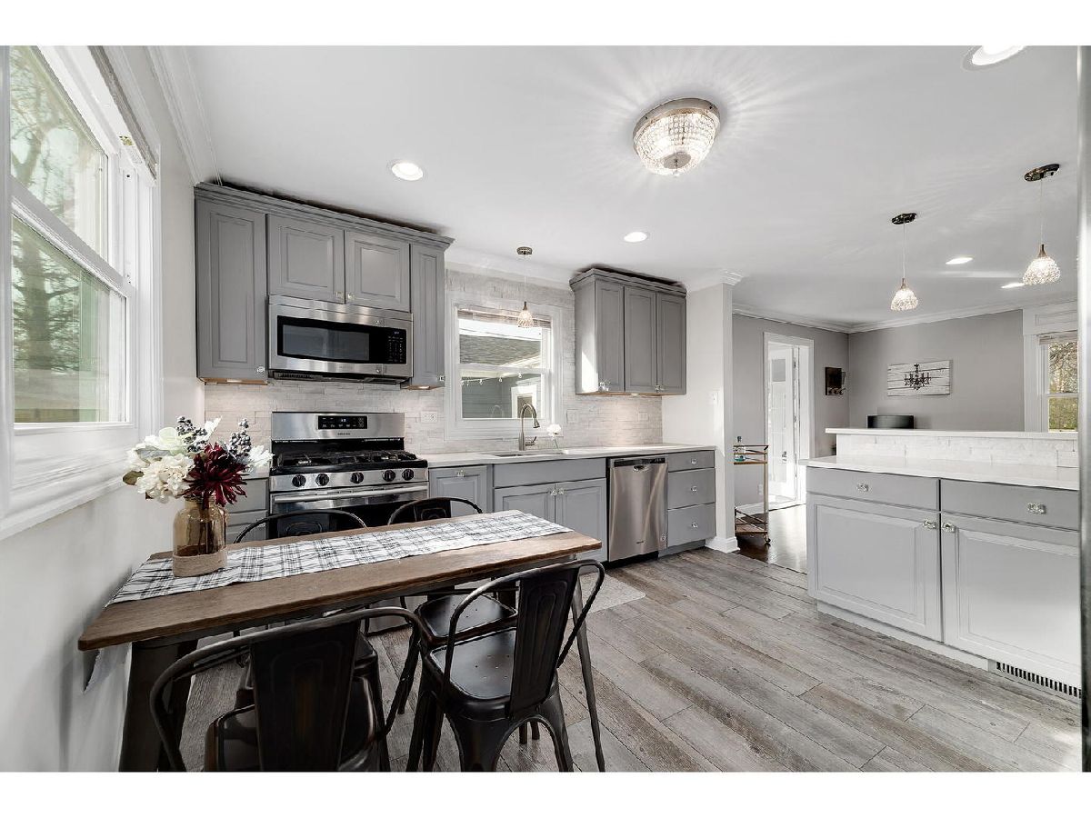 FULLY RENOVATED HOME - nothing to do but move in! Stylish on-trend 3-bedroom ranch home highlighted by the stunning eat-in kitchen with stainless steel appliances, quartz countertops, and porcelain plank flooring. A bright living room with an appointed gas log fireplace and gorgeous hardwood leading to the bedrooms. The 3-season room is a great spot for conversations or adventures found in your favorite book. The fully fenced backyard and patio area ready for cookouts and playtime. There is so much to love about this like-new home. Some updates and improvements include 2020 new concrete patio, updated electrical, new front screen door Larson & cedar privacy fence. Fireplace updated and gas logs installed. 2019 new roof, blown insulation, new gutters, new LP smart siding, stone, & refaced chimneys. 2018 Refinished 3-season room, regraded side yard. 2017 freshly painted, new crown molding & window casing. 2016 New A/C, updated kitchen, new windows, & updated bath. Not to mention the phenomenal location close to two train stations, Cantigny Golf, Forest Preserves, Parks, and all the fabulous eateries, shops, and community festivals of downtown Wheaton. A home to be shared with family and friends!