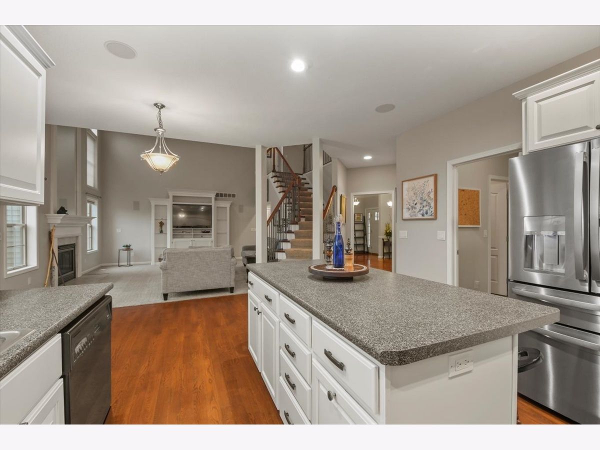 Wow! Your next home is this amazing five bedroom, three and a half bath in the Lakes at Riverbend subdivision in Mahomet. This home, situated at the end of a quiet cul-de-sac on .46 of an acre, has views of Beaver Lake and access to the nearby walking trails! As you enter his home, you will be impressed by the hardwood flooring and the formal dining room, which leads to an expansive two story great room with floor to ceiling windows, a gas log fireplace and custom entertainment center that stays with the property. The open concept kitchen has plenty of cabinet space as well as a large island. On the first floor, you will also find a study with French doors and a closet (so it could also be a 6th bedroom) and a first floor bedroom with custom bookcases and a vinyl floor. After you climb the impressive staircase to the second floor, you will enjoy the large primary suite with a jetted tube, separate shower and massive walk-in closet. There are three more bedrooms on this floor, as well as the second floor laundry. Down in the finished basement, you will find a Tuscan inspired wet bar with both a bar refrigerator and a wine cooler. There's also a second gas log fireplace. Don't miss the home theater, which includes the screen, projector and built-in surround system. There is also a full bath, home gym and storage space. The lower level opens onto the lower patio, and there is an elevated deck accessible from the main floor eat-in kitchen. There is also an attached three car garage. The backyard is ready for entertaining, with easy access to Beaver Lake and the walking trails. Be sure to view the 3D Virtual Tour. Hurry! This one will not last long!