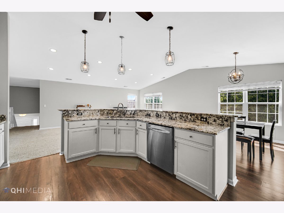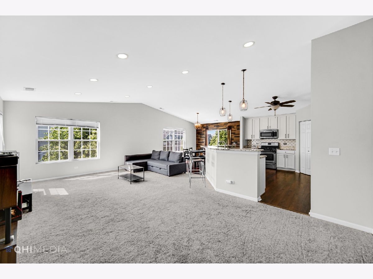 ABSOLUTELY MOVE-IN ready second floor town home offering a quick close! Nearly 1800 SQFT! 3-bedroom 2 bathroom home has a 2 car attached garage. Home offers an open floor plan with vaulted ceilings, providing a spacious and airy atmosphere. The kitchen boasts stainless steel appliances, stunning granite countertops and stylish 42-inch cabinets. Master suite has HUGE walk in closet along with a separate tub and shower and a dual vanity! Bedroom 2 and bedroom 3 are also spacious. Full house has been upgraded with TONS of recessed can lights. Step outside through the sliding doors onto the balcony and enjoy the serene water views! Tons of storage in the unit. Proper laundry room with shelving. The convenient location places you close to shopping, restaurants, a health club, and a nearby park for outdoor enjoyment. Quick access to Hwy 55 and Interstate 80 ensures easy commuting and exploring. Don't let this incredible opportunity slip away - schedule your viewing today! Low HOA and a very well-run association! Rentals allowed!