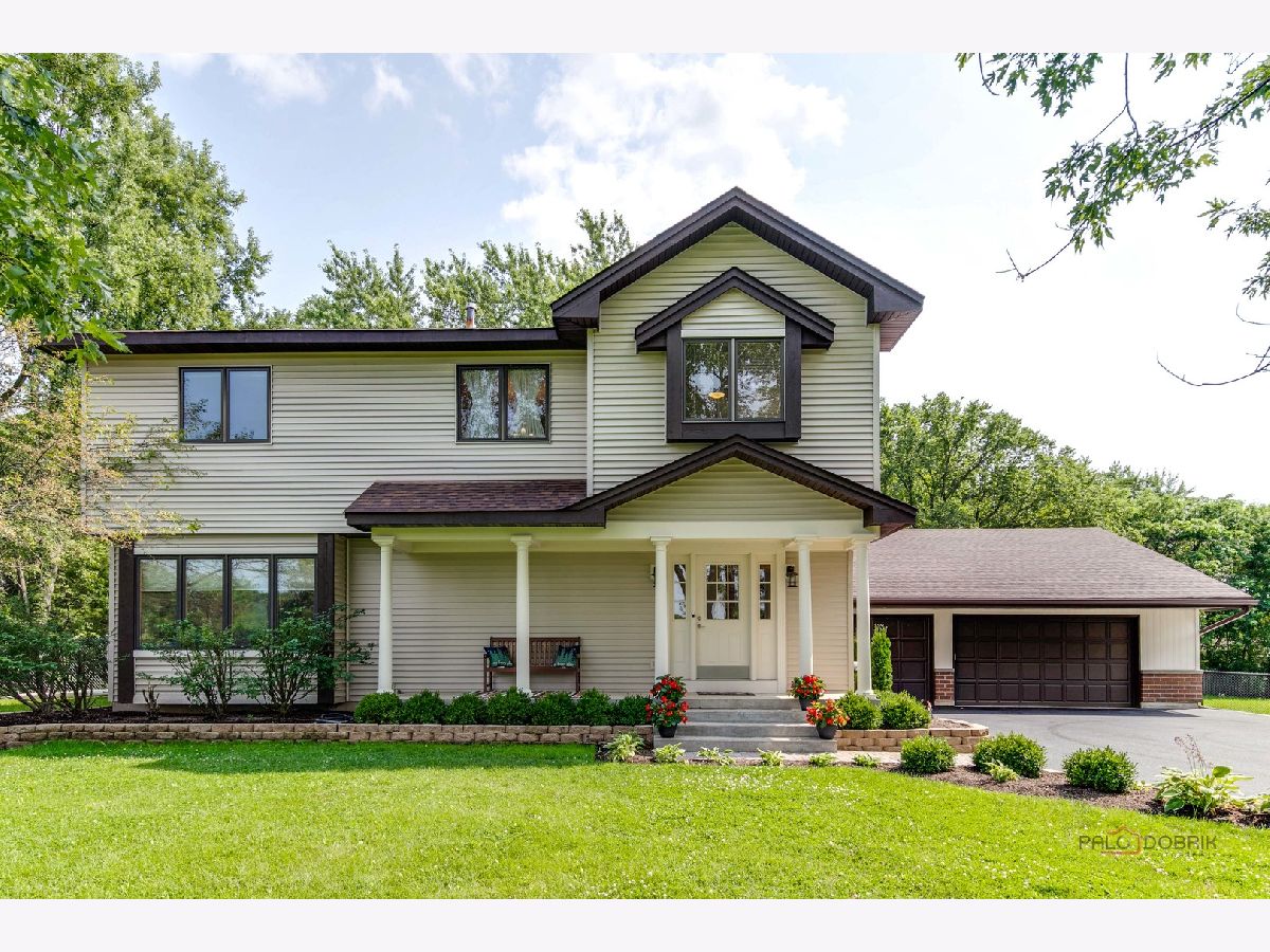 Welcome to this stunning 4-bedroom, 3.1-bath home, complete with an attached 5-car oversized garage, located in the Libertyville School District. As you step inside, a spacious foyer sets the tone for the elegance and comfort that flows throughout the home. The updated kitchen is a chef's dream, featuring quartz countertops, an island with seating, stainless steel appliances, and a wine cooler. It seamlessly transitions into the family room, where a cozy fireplace creates a warm and inviting atmosphere. The adjacent dining area is perfect for entertaining. A formal living room nearby provides an ideal space for family gatherings. The main level also includes a bedroom with an ensuite full bath and generous closet space, along with a convenient half bath and additional closet space. Upstairs, the primary bedroom boasts an updated ensuite bath and a walk-in closet. Two more spacious bedrooms, a hall bath, and ample closet space complete the second level. The partially finished basement offers plenty of storage space, a laundry room, and a versatile work/exercise room. Situated on almost an acre of land, this private lot features a basketball court, a maintenance-free Trex deck, a deck swing, and a charming front porch. With quick access to I-94, this home truly combines modern amenities with a prime location. Don't miss the opportunity to make this exceptional property your new home!