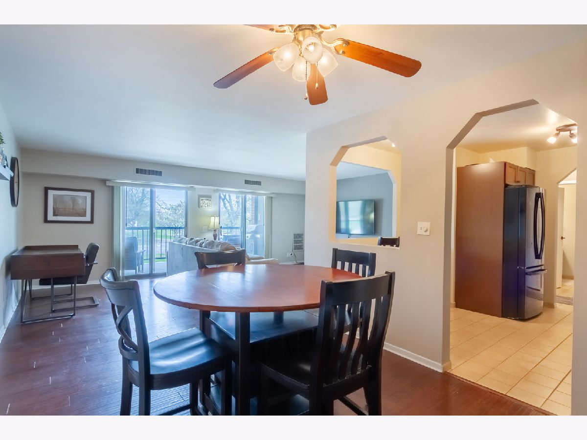 Don't miss this updated 2nd-floor condo in the heart of Arlington Heights, located in the highly sought-after Dana Point community. This open-concept floor plan features a spacious living room with dual sliding doors that lead to a private, covered balcony and opens to a dedicated dining area. Sellers spared no expense in the updated kitchen including; modern cabinetry, granite countertops, a breakfast bar, and a tile backsplash. Down the hall, you'll find a generously sized primary bedroom and an updated full bath with a newer vanity, countertop, and sink. NEW furnace and AC in 2023. Enjoy resort-style living with access to an outdoor pool, fitness center, and tennis courts. Additional storage on the same floor. This unit includes one space in the covered heated garage and is ideally situated close to shopping, restaurants, the Metra, and offers easy access to the interstate-everything you need for comfortable and convenient living.