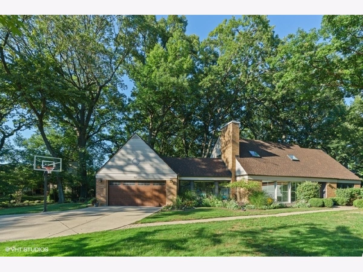 STUNNING contemporary home located on gorgeous wooded lot on quiet, cul-de-sac street! This hip home offers a FANTASTIC views from every window! BRIGHT and OPEN living room with wood burning fireplace and gracious windows. Formal dining room with floor to ceiling windows adjoins the eat-in kitchen with dutch made cabinets, corian counters and marble floor. First floor primary bedroom suite with OFFICE and atruim. Cheerful breezeway/sunroom makes an IDEAL 2ND OFFICE with gorgeous views of the prettiest street! THIS HOME OFFERS TWO OFFICES on first floor! Second floor includes three spacious bedrooms and a newer bath. Plenty of room to add an additional bath on second level! Basement features a COMPLETE RENOVATION with added custom cabinetry PERFECT FOR ENTERTAINING-- beverage drawer, wine cooler, fireplace, added playroom, laundry room and full bath. Gorgeous PARK-LIKE PRIVATE yard with paver patio and professional landscaping. This perfect size home has been meticulously cared for and updated. Highly desired street close to schools, parks and dining! Truly a pleasure to show!!