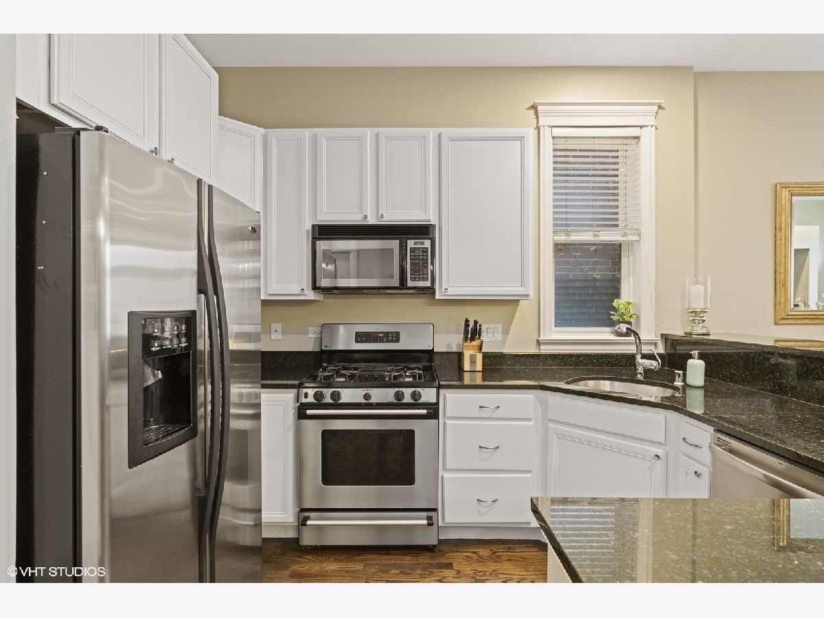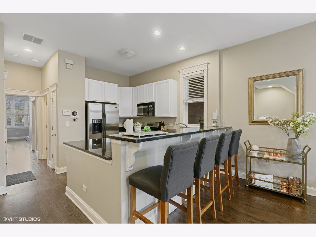 Live in the heart of Lincoln Park just blocks away from the lake! This gorgeous end-unit duplex with 9' ceilings is drenched with sun with floor to ceiling windows. The open concept main level has hardwood floors throughout. The updated kitchen features stainless steel appliances, granite counters and bar seating. The first floor has the master bedroom with a full wall of custom closets, hardwood floors and an ensuite bath with a walk in shower and double vanity marble sinks. Enjoy relaxing or grilling on your private patio. One outdoor parking spot included. New HVAC in 2018. Steps from restaurants, bars, CTA, and more!