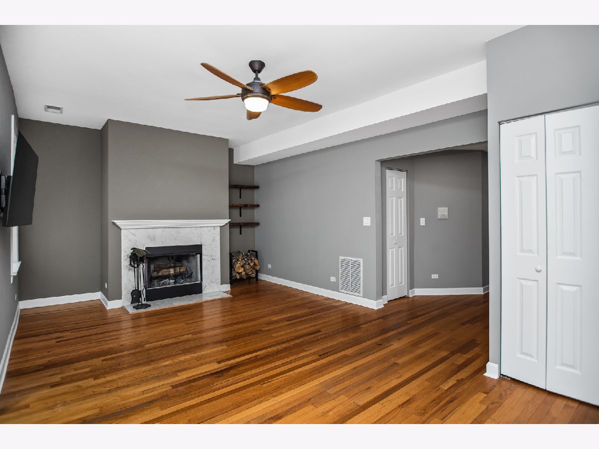 Fall in love with this beautiful, updated, three-bedroom, two-bath penthouse condominium in a super convenient location! This unit has been meticulously renovated, offering a true turn-key experience. Step inside and be wowed by the recently renovated chef's kitchen, featuring stainless steel appliances, abundant cabinetry, and dazzling quartz countertops and backsplash. There is plenty of space for both a table and chairs, plus a dedicated dining room for additional entertaining. The spacious living room is anchored by a cozy wood-burning fireplace with a marble surround and includes unique built-in wood shelving. Directly off the living room, a bright sunroom offers the perfect flexible space for a home office or a relaxing reading nook. The unit offers three spacious bedrooms, including a Master Suite with a walk-in shower. All three bedrooms boast organized closet systems for maximum storage. The recently renovated hall bathroom features an attractive marble tile floor, marble vanity top and a tub/shower combo. For added convenience, the unit includes a full-sized washer and dryer in the laundry closet. Outside, a large deck is located directly off the kitchen, providing an ideal space for entertaining family and friends. The unit also comes with an assigned parking space and a roomy storage locker. This condo is only a few short blocks from both the Metra and CTA stations, offering easy access to both downtown Chicago and the suburbs. Nothing left to do but unpack, relax and enjoy!