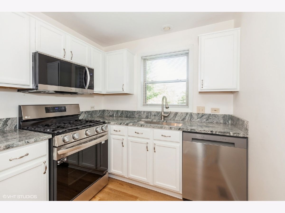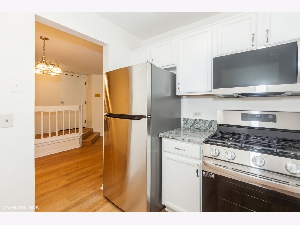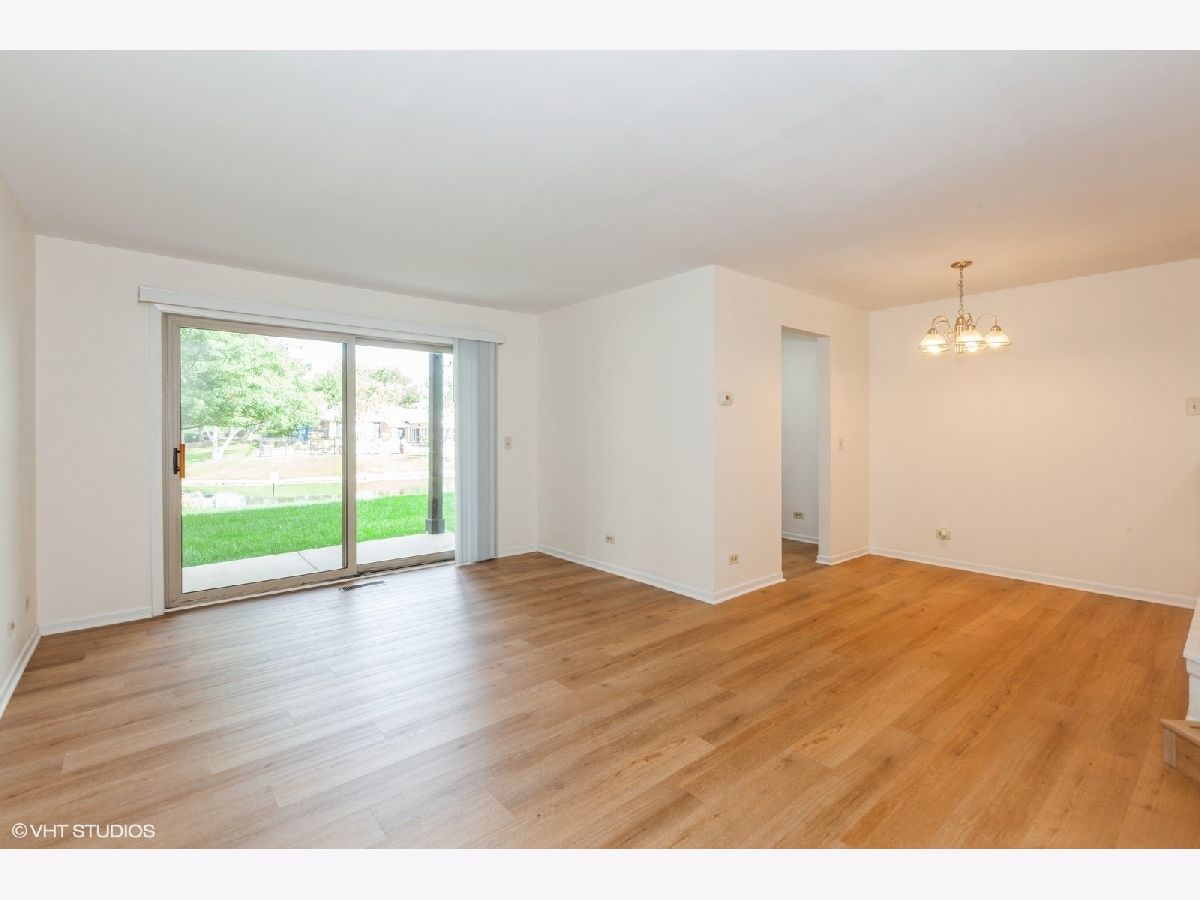 Welcome to this charming first-floor condo in the serene Chantecleer Lakes community of North Naperville, where maintenance-free living meets picturesque pond views. This move-in-ready home boasts stunning upgrades that are sure to impress from the moment you step inside. The modern, remodeled kitchen is a culinary delight, featuring sleek white cabinetry, brand-new stainless steel appliances-including a refrigerator, dishwasher, microwave, and convection range-and a striking new granite countertop with a stainless steel sink. The bathroom has been transformed into a spa-like retreat with a new tub, toilet, stylish cabinetry, updated lighting, and a contemporary mirror, all complemented by fresh, modern paint throughout the unit. Relax or entertain in the cozy family room, which opens through a sliding glass door to a charming patio-perfect for savoring your morning coffee or an evening drink. Additional features include new wood vinyl flooring throughout, updated lighting, and a convenient in-unit stackable washer and dryer. Enjoy breathtaking lake views, access to an outdoor pool, clubhouse, and exercise facilities. Located in the highly acclaimed Naperville 204 school district, this condo offers easy access to Metra, I-88, and nearby schools and playgrounds. Outdoor enthusiasts will appreciate the proximity to McDowell Grove Forest Preserve, just a quarter mile away, with its walking and biking trails. With abundant shopping and dining options nearby, and downtown Naperville only 3 miles away, convenience is at your doorstep. An assigned parking space is also included. Don't miss the opportunity to make this beautifully updated condo your new home!
