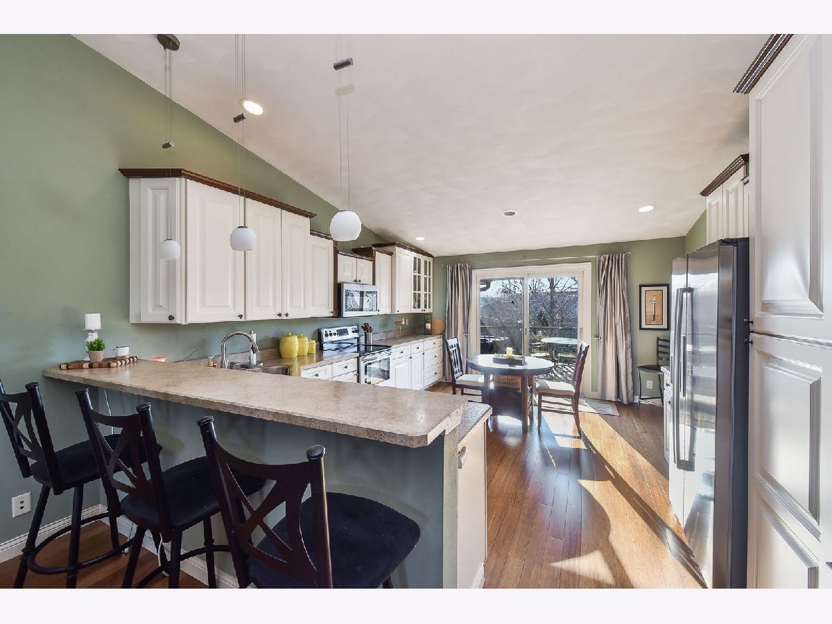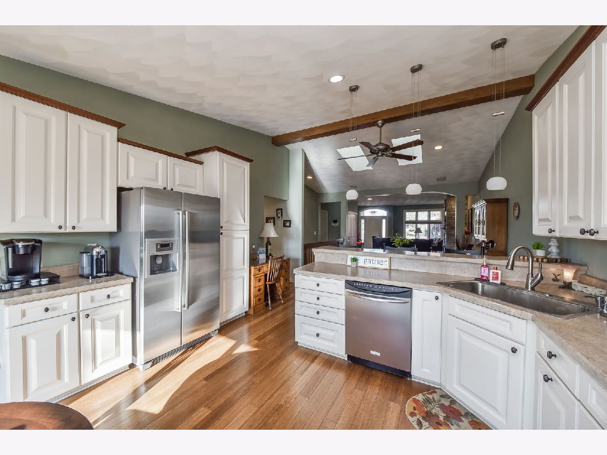 Absolutely gorgeous, former builder's model is now available! This all brick duplex is absolutely loaded with upgrades, inside and out! You can't help but notice the beautifully upgraded exterior with brick columns and a covered entryway, and stepping inside to the soaring vaulted ceilings in the living room, dining room and kitchen. Luxurious bamboo flooring, surround sound speakers, custom stone fireplace, wide open living spaces. 2 opening skylights, and 3 solar tubes add so much natural light. The huge kitchen is stunning with white custom 42" staggered cabinets with glass display cabinet and beautiful millwork additions. Stainless appliances, excellent counter space and even room for your coffee bar! A pantry, sunny table space and breakfast bar round out this incredible kitchen. You will just love the master suite with beautiful windows, a walk in closet and high end vanity with dual sinks, ceramic tile floors and private water closet. A lovely 2nd bedroom, and laundry room with cabinets and wash sink are also on the 1st floor. Step down to the full finished lower level, English basement which is flooded with natural light. You'll find a massive family room with surround sound speakers and recessed lighting, spacious guest bedroom, office and full bathroom. There is more storage space than you can imagine here, in 2 huge separate rooms. Love to be entertain and relax outdoors? You've found the perfect home for that! You can step out onto your maintenance free deck and open the awning for shade coverage, or take a few steps down to your custom paver patio big enough for your larger gatherings. Enjoy a peaceful neighborhood, with close proximity to shopping, the highway, and quaint downtown Cherry Valley with miles of walking paths and local dining. The upgrades here are endless; recessed lighting, custom ceiling treatments, surround sound speakers, white trim and doors, upgraded cabinetry and flooring throughout. The owner of this home has added so much since purchasing: 2 opening skylights, 3 solar tubes, Hardwood floors in the master and guest bedroom, new microwave, paver patio, custom blinds throughout, gorgeous stone fireplace, decorative wood beam on ceiling, retractable awning over deck, proactive radon mitigation system, new kitchen sink and faucet. This home is well maintained and turn key ready!