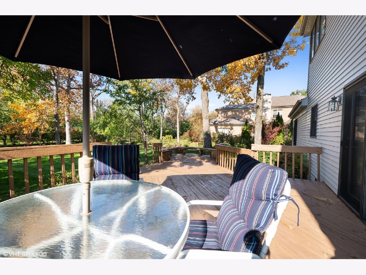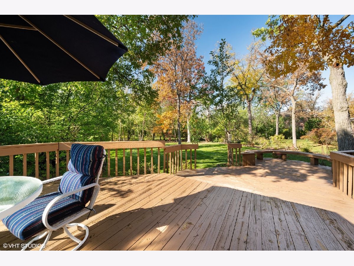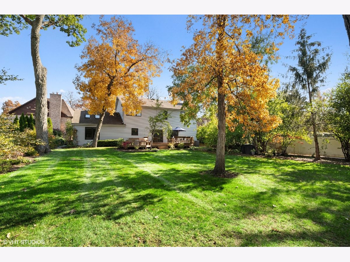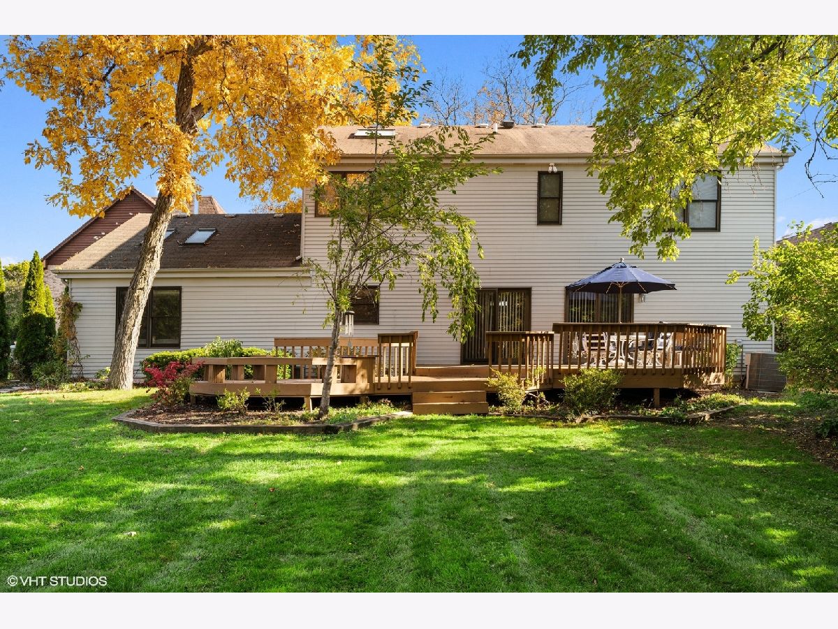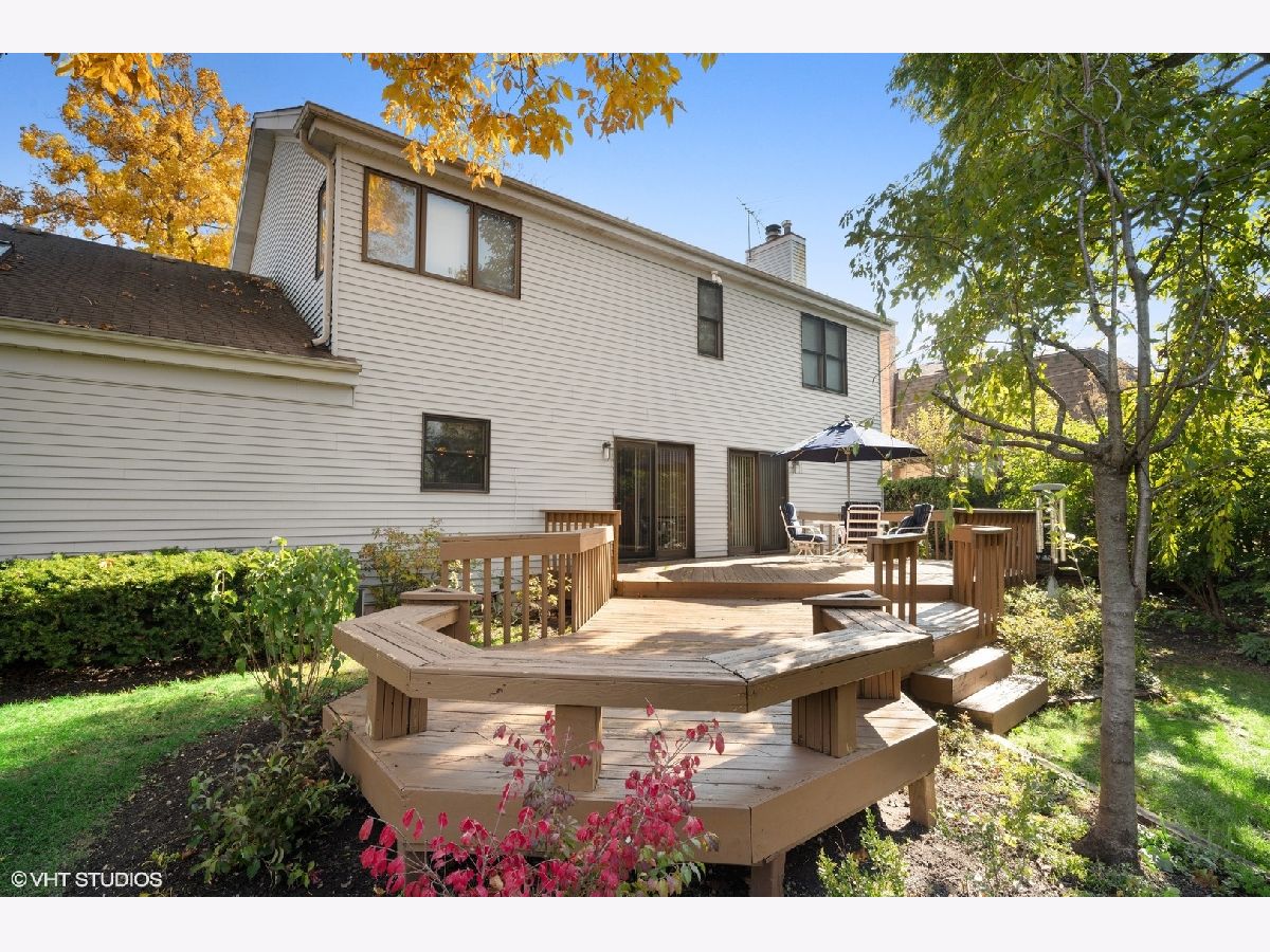 A rare find in East Glenview! This sun-filled 2 story Colonial is ready to become the backdrop to your family memories. Lush private park like yard on .36 acre lot! The double door entry welcomes you into the sophisticated Living Room and Dining Room, featuring beautiful hardwood floors, crown molding and loads of light. The handsome first floor Family Room includes a lovely fireplace focal point and custom built-ins, flowing perfectly into the large eat-in Kitchen with quartz counters, island and an abundance of cabinetry that will please the chef in the family. The main floor is ideal for entertaining inside and out, with French doors to the large tiered deck and an exceptionally large yard professionally landscaped for privacy and beauty. There is a main floor Bedroom with skylights + adjacent Full Bath making an ideal in-law suite, nanny quarters or Home Office. Upstairs you will find 3 Bedrooms including the Primary Suite with spa-like private Bath plus Sitting Room. Sitting Room could easily become a 4th upstairs bedroom. The finished basement with a large Recreation Room offers more options for friends and family to gather and includes a Home Office plus plenty of storage. Attached 2 car garage. Highly coveted location in Award Winning School Districts. Walk to schools, Wagner Farm, the train, restaurants, and enjoy easy access to expressways making Chicago just a short drive away... Welcome home!