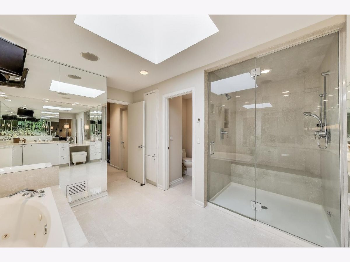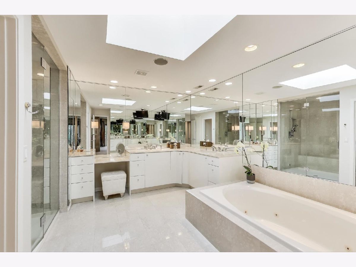 Stunning 5-bedroom, 3.2-bath brick home with over 6,500 sq ft of living space, nestled on a 0.6-acre corner lot in Northbrook's sought-after Park Place Estates (District 28/Meadowbrook Elementary & Glenbrook North HS). Step into a dramatic two-story foyer with updated staircase and designer lighting. The main level has been fully renovated with white oak floors and a show-stopping European kitchen featuring sandstone countertops, Sub-Zero, Wolf, Thermador, and Bosch appliances, coffee bar, and abundant custom storage. The kitchen opens to both the living room with gas fireplace and a bright southern-facing sunroom, ideal for entertaining. Access the backyard patio with built-in grill from the sunroom or eat-in kitchen area. Additional main floor highlights include an oversized dining room with grass cloth walls and a tucked-away guest suite or home office with adjacent full bath. A spacious mudroom connects to the heated 3-car garage (with EV charger) and backyard access. Upstairs, find four large bedrooms, including a luxurious primary suite with vaulted ceilings, sitting area, two walk-in closets, and a spa-like marble bath with radiant heat, steam shower, and jetted tub. All secondary bedrooms feature double closets and share a large hall bath with dual sinks. The finished lower level offers nearly 2,300 sq ft of flexible space: game room, rec room, fitness and play areas, half bath (w/ rough-in for full), and tons of storage. **Notable features and recent updates include** Brand new roof (transferable warranty), Dual-zone HVAC + separate basement furnace, New A/C, new sump pump w/ backup, newer Pella windows, Lutron smart lighting, professionally landscaped yard with irrigation, lighting & low-maintenance design, circular front drive + side load 3-car heated garage with 8' garage doors. All this in an unbeatable location near Techny Prairie, the Velodrome, Meadowhill Pool, Metra, parks, library & more-with front-row seats to Northbrook's 4th of July celebration!