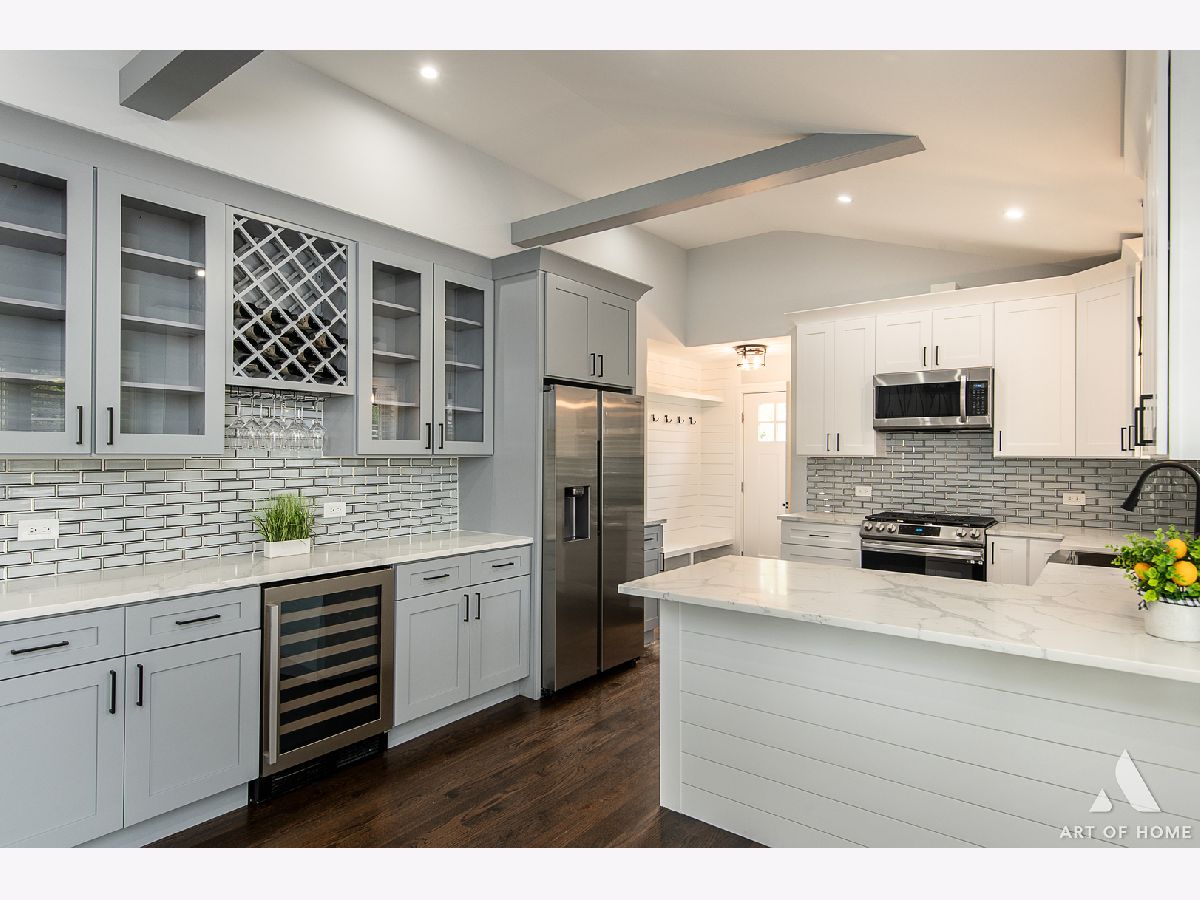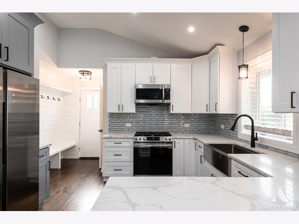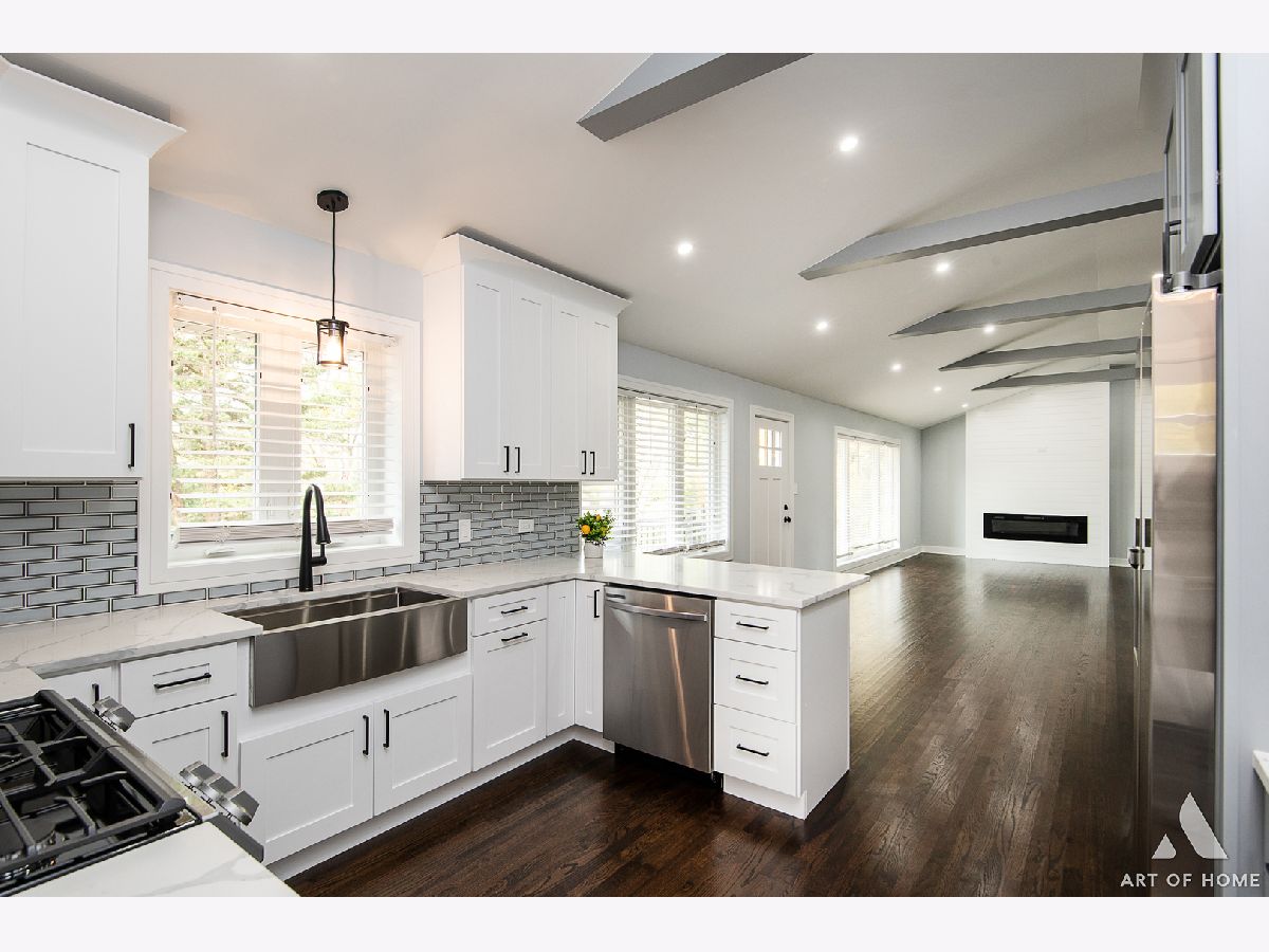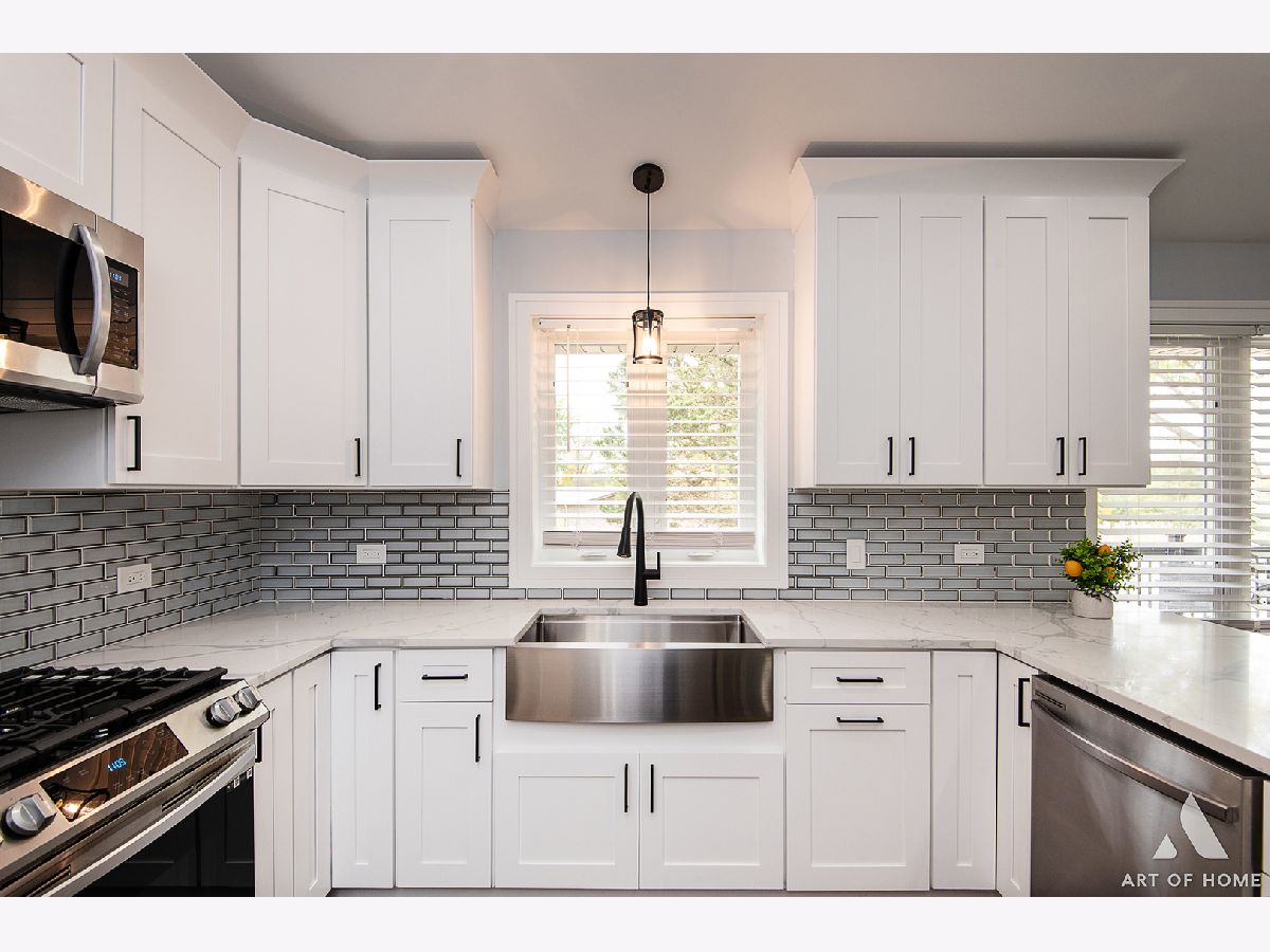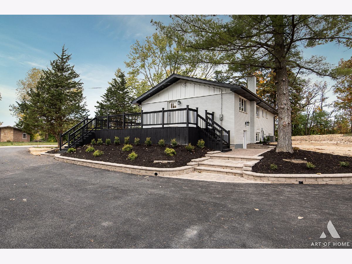 Welcome to this absolutely amazing, fully renovated, raised ranch with almost 2,400 sq ft of living space located on nearly 1 acre land in beautiful Orland Park with 5 bedrooms, 3 full bathrooms, and a newly built 4 car detached garage. Main floor features an incredible living room with a vaulted/beamed ceiling and electric fireplace, a gorgeous, modern full bathroom, 2 large bedrooms, a private master suite with a luxurious full bathroom, and a gorgeous kitchen with white and gray shaker cabinetry, quartz countertops, glass backsplash, and Samsung stainless steel appliances. This house has a full finished, walkout basement with a great family room, 2 large bedrooms, another beautiful full bathroom, kitchenette/wet bar room, and a spacious laundry room. Newly landscaped yard with huge wooden deck, great for entertaining guests. It also has elegant light fixtures, special millwork, hardwood floors throughout, new HVAC system, new plumbing, new electrical system, new water heater, new sump pumps, new roof, new windows, new gutters, and new soffit. Close to public transportation, shopping, and restaurants. This home is stunning and tastefully designed! Schedule your showing today before it's gone!