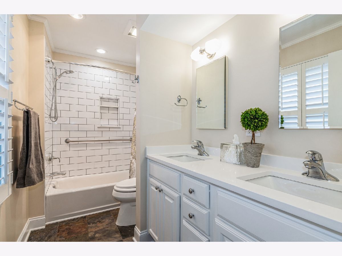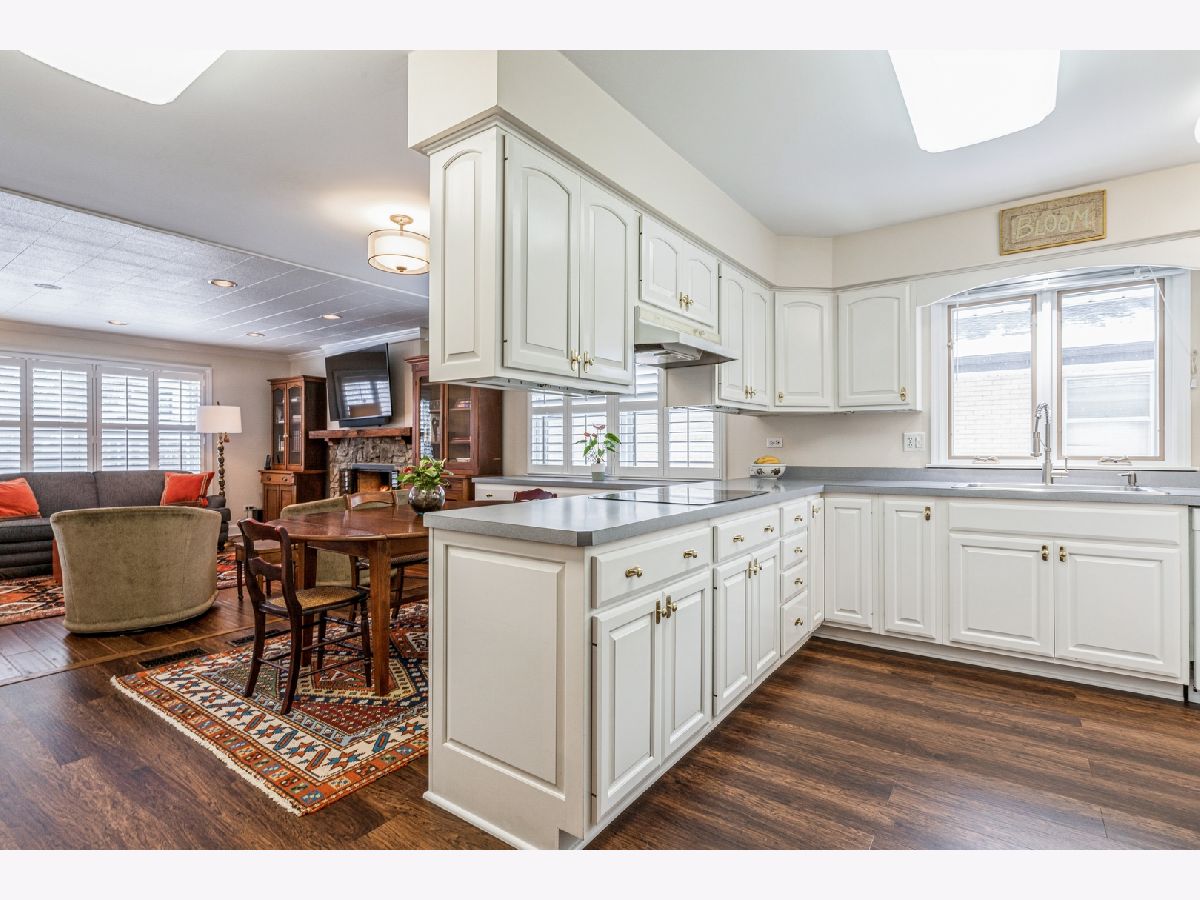 This one was worth the wait! Spectacular renovated brick ranch with a versatile floor plan for today's buyers. Prepare to be impressed from the minute you walk through the double door entry into the spacious foyer with unique hickory and slate patterned floor. Straight ahead through the arched entrance lies the living room followed by the exceptional dining room with tray and coffered ceiling and custom millwork. As you move into the family room you'll feel the warmth of the stone fireplace with antique rough sawn pine mantle. Next, you will see the breakfast room and the kitchen which are spacious and airy. The white kitchen boasts a large pantry and planning desk. For those working from home, there is an office on the main level. On the other side of the foyer is the bedroom wing. This includes a generous master suite and 3 additional large bedrooms. The newly renovated hall bath has dual sinks, tub with subway surround, and best of all, heated slate floor. The renovation also includes wide plank hickory flooring and plantation shutters. While putting in the new flooring the previous step down was eliminated. In addition, the ceiling was raised in the dining room and the master bedroom for a more spacious feel. Not to be forgotten, is a spacious mud room and laundry combo by the garage. The basement is great for entertaining with a carpeted recreation room and game room, plus phenomenal storage space including two storage rooms and a newly concreted crawl. The attention to detail make the pride of ownership show in this stunning home. Arlington Heights enjoys a fabulous downtown and great schools.