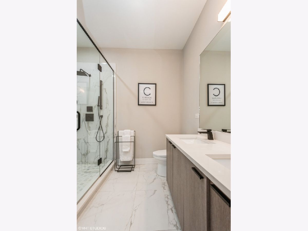 Almost brand new construction (built 2019) - light flooded 3 bed, 2 bath simplex with 2 outdoor spaces and exquisite high end finishes throughout. Solid masonry, all brick construction with front balcony & rear deck, Unit Features: 5" inch WIDE white oak floors throughout, Custom Italian Cabinetry, Designer lighting fixtures, Quartz counter tops, Stainless Steel appliances, Luxurious Baths: 12 x 24 porcelain tile, and master bath with oversized shower, heated floors and 24 x 24 tile; Black finish hardware in master with double vanity. European style windows. Oversized 8' doors with designer hardware. Nest thermostat controls and front loading washer/dryer in unit. Beautiful window treatments throughout. The third bedroom has been built out as a luxurious show stopping walk-in closet, however the sellers are willing to remove if you would prefer to use it as a bedroom or office. Garage Parking included in price. Within walking distance to Maplewood Park, 606 Bloomingdale Trail, public transportation and restaurants. If you are looking for luxurious spa-like bathrooms, a chef's kitchen, lots of outdoor space and designer finishes throughout - this is it!