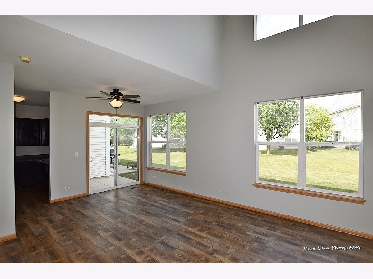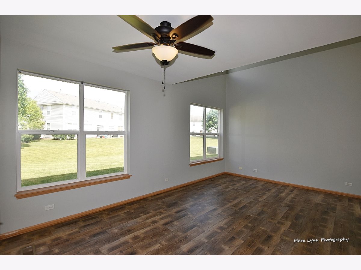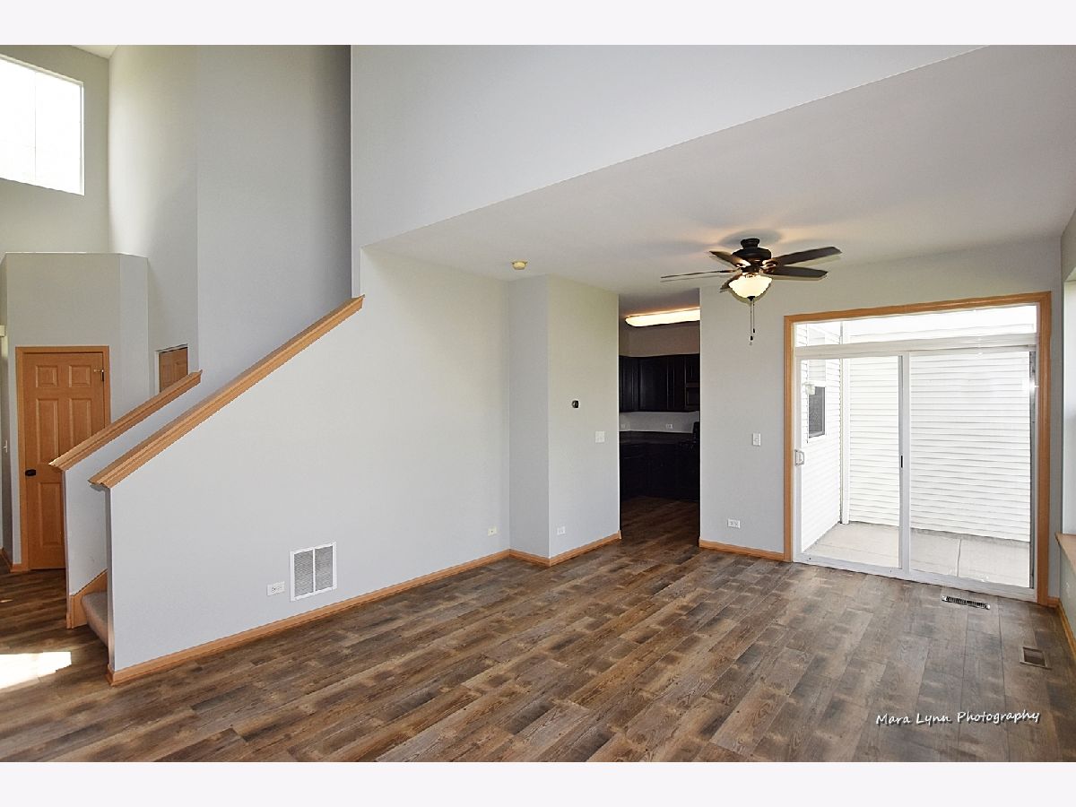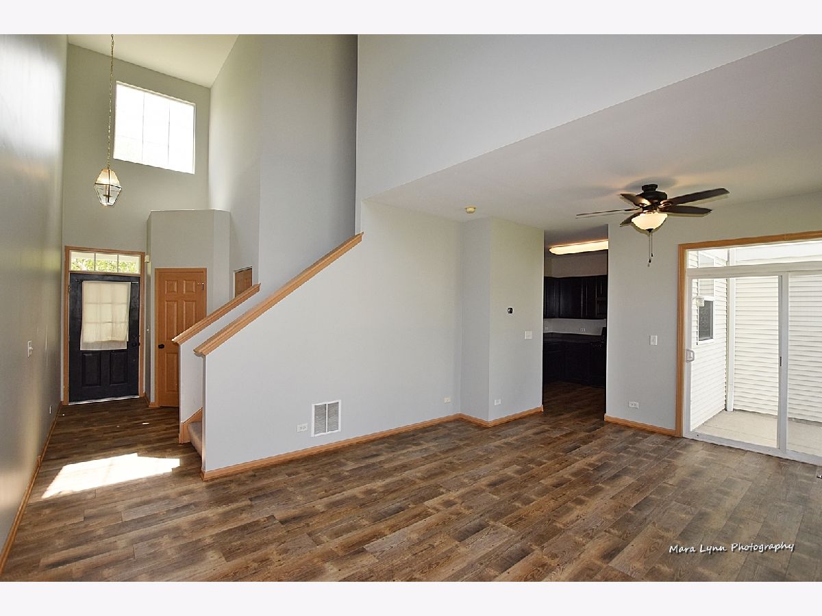 THE PRICE IS RIGHT! Move right into this spacious townhouse with a two-story entrance and living room with plenty of windows that add to the open spacious feel. There is space for a table in the living room next to the patio doors that lead to the concrete patio. New vinyl flooring in the entry way, living room and kitchen was installed spring of 2020. The kitchen features a newer microwave (2019), plenty of counter space and cabinets, and a pantry. The staircase partially open to the foyer and living room adds to the already open floor plan. The master bedroom features a walk-in closet. Double sinks can be found in the shared master bath. 2nd Bedroom also has a walk-in closet. Laundry/Utility room is located on the second floor. Ceilings fans throughout the home were installed in 2019. The AC unit was purchased in 2018 to guarantee you stay cool. A great location provides easy access to the interstate, Northern Illinois University, shopping, restaurants, movie theater, and bike path.