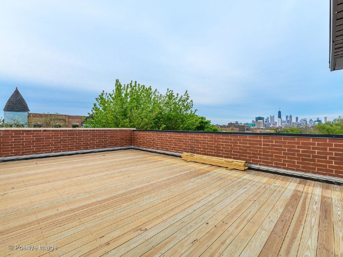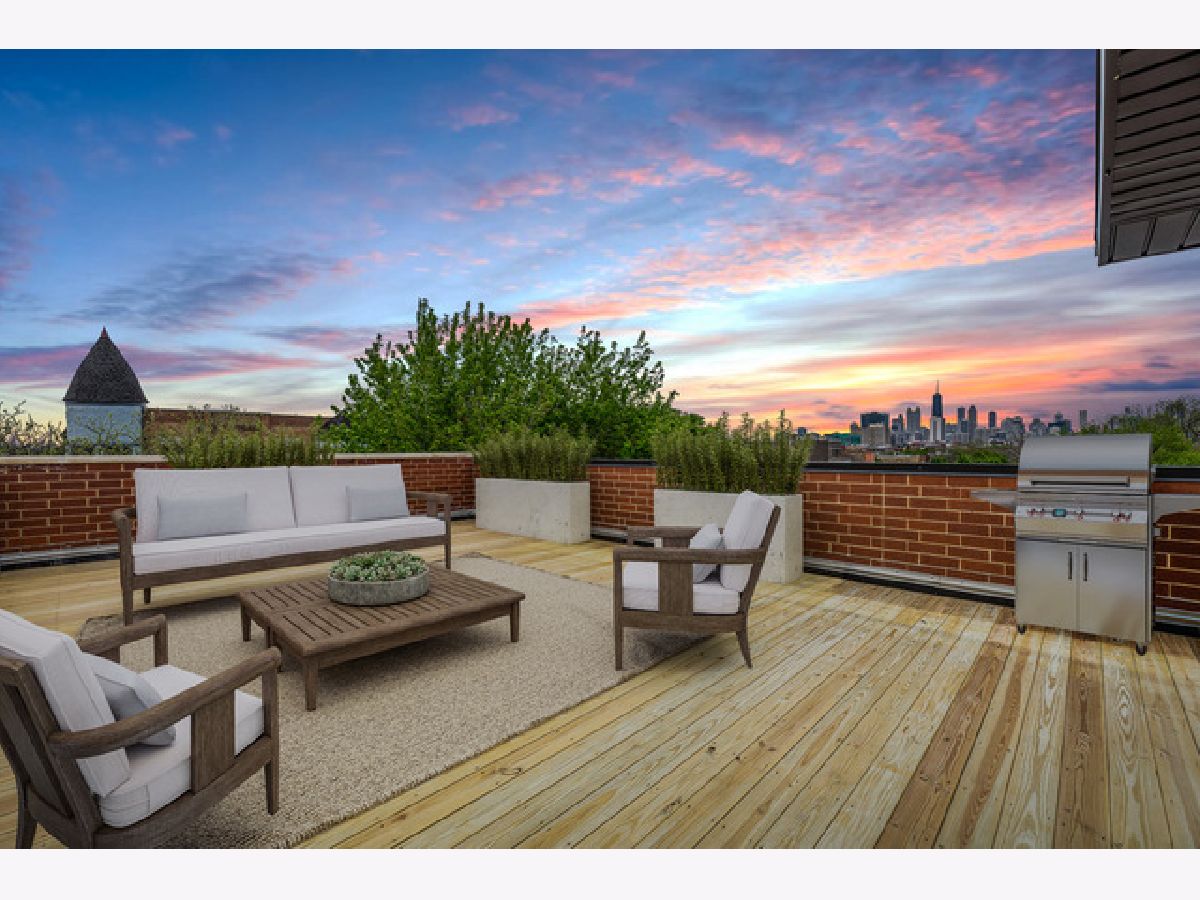 Situated in one of Chicago's most noteworthy neighborhoods and on an extra-wide lot, this stunning, all brick boutique building was expertly built with no detail spared. Perfectly located in the heart of West Town, this magazine worthy 3 bed/2 bath PENTHOUSE is finished with designer selections and custom details throughout & built-out *private rooftop deck* with unobstructed city views! Upon entering the home, you will notice floor to ceiling windows letting in all day natural light, and almost 10' ceilings. Expansive kitchen will impress any chef, equipped with 42" custom cabinetry, Quartz countertops, high-end stainless steel appliance package & island with breakfast bar seating. Eat-in kitchen is perfect for entertaining friends, or cozy up by the gas fireplace surrounded by floating shelves - the ideal spot for succulents & accessories. Large master bedroom can comfortably fit a king sized bed set, and has an en suite bathroom with two dual, floating vanities, heated floors and towel rack & shower with rain shower head. All closets including the master have been professionally organized for optimal storage. Among the best features this home offers are the stackable in-unit washer/dryer, surround sound wiring, 1 garage parking space & interior staircase leading to a private rooftop deck. The West Town neighborhood is surrounded by local finds, such as Aya Bakery & The Goose Island Tap Room, or take the Green Ashland "L" line or Grand CTA into the city. Nearby green space includes Union Park & adjacent Bickerdike Square Park, which doubles as one of the city's best dog runs!